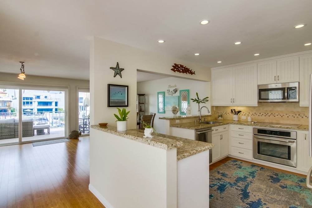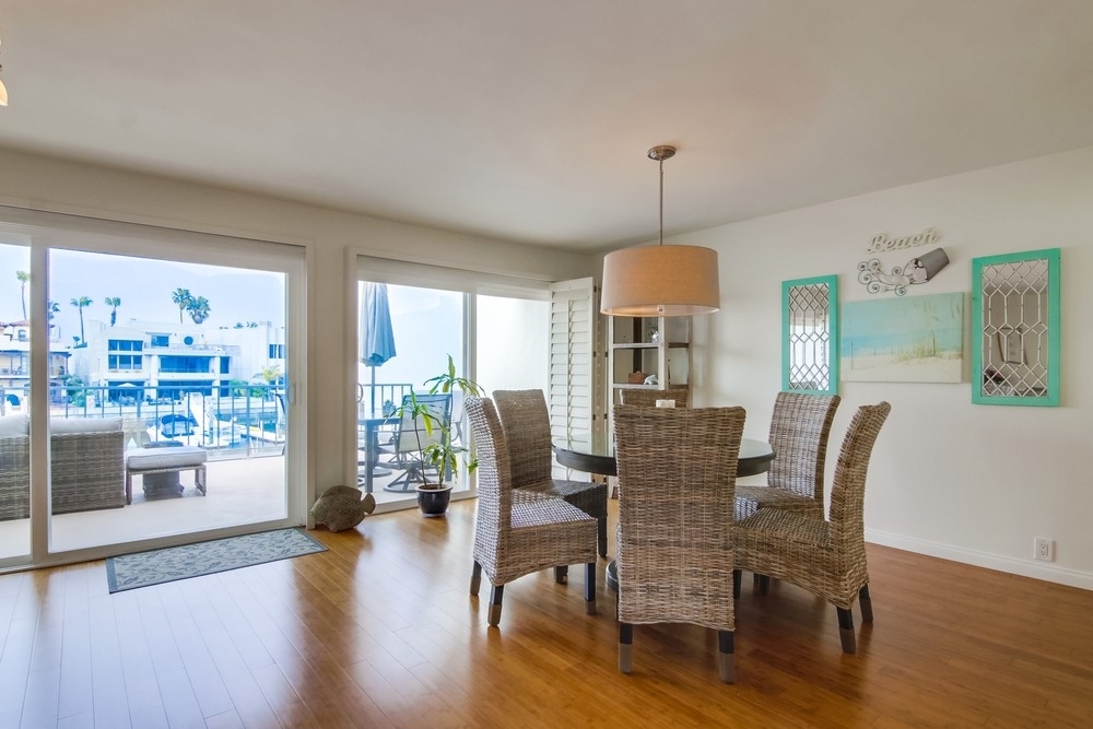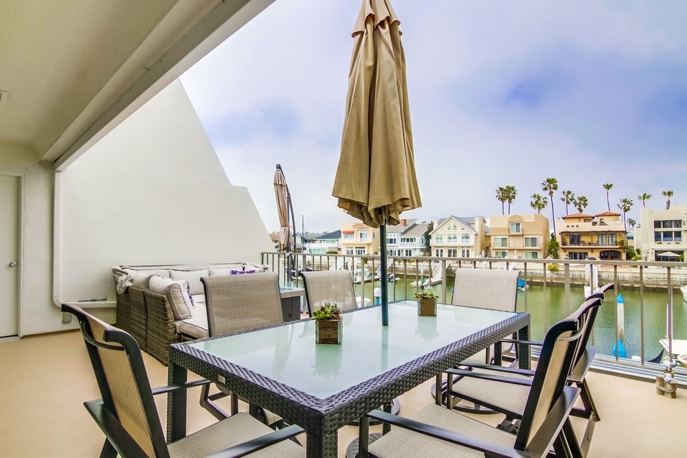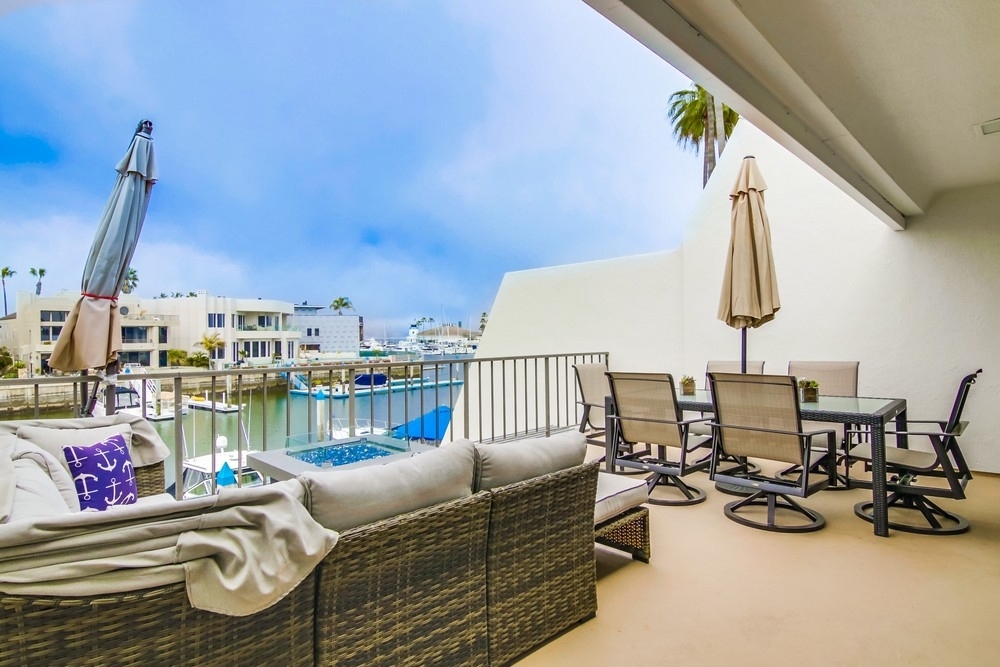 Beautiful upstairs condo with open concept. Kitchen has been opened up with lovely dining room and views of the wide water boat channel. Bamboo floors, artistic glass entry doors, plantation shutters, granite counters & stainless steel built-ins. 40' boat slip + 13 1/2 beam, natural gas & storage room on deck & detached 2 car garage with epoxy flooring. Community offers pool, clubhouse, membership yacht club, tennis, dog park, 24 hr on-site security and playground. Short walk to Silver Strand State Beach.. Neighborhoods: Antigua Village Equipment: Garage Door Opener, Washer Other Fees: 0 Sewer: Sewer Connected