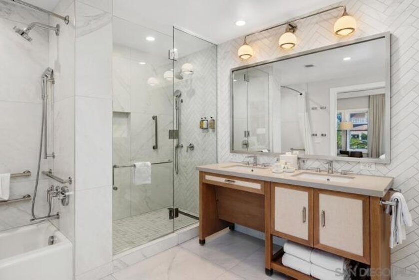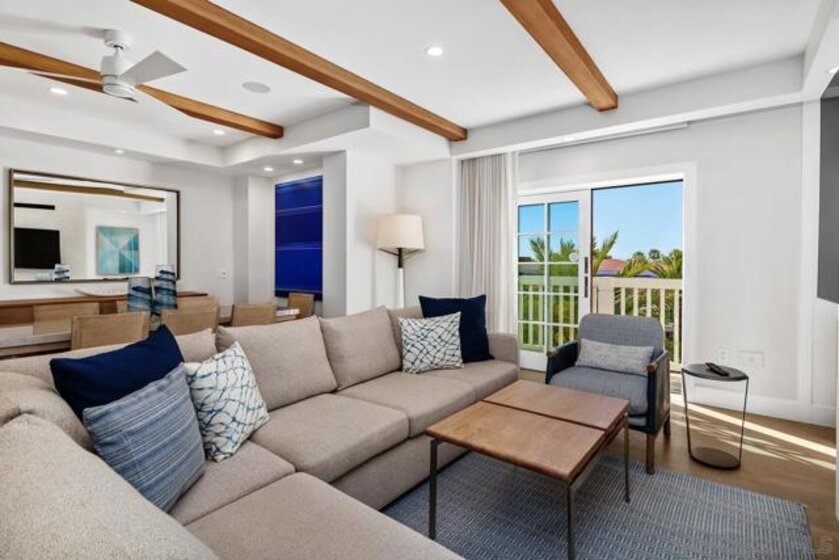 Owning a residence at Shore House is a once-in-a-lifetime opportunity to secure a piece of paradise along the Coronado coastline while gaining access to the Hotel del Coronado’s world-renowned hospitality. Residence 74 is one of only three “hospitality” layouts in the entire collection, offering an expansive 1,484 SQFT, 2BR/2.5BA sanctuary. The interior is a study in effortless coastal sophistication. At the heart of the residence is a spacious great room anchored by a fireplace & a signature L-shaped sectional, perfect for family gatherings The chef-inspired kitchen features a large center island, beverage center & a formal 8-person dining table, a rare configuration designed for entertaining .Glass doors open to a private Juliet balcony, framing panoramic, unobstructed views of the iconic Red Turret & the legendary front façade of The Del. As a Shore House owner, enjoy a "resort-within-a-resort" experience with exclusive amenities: a zero-edge infinity pool, Jacuzzi, cabanas, an open-air bar, & beachfront fire pits. Owners benefit from a dedicated arrival, private check-in & complimentary valet, along with full access to The Del’s world-class spa, fitness center & premier beach service on Coronado’s famous white sands. This full-ownership, limited-use property blends a legacy second home with a professionally managed rental program for seamless, hands-free income. The ultimate investment in lifestyle & legacy. The primary suite offers a true retreat, featuring a luxurious bathroom with a walk-in shower & double vanity sinks. With the inclusion of a queen-size pullout, an in-unit washer/dryer, the home comfortably sleeps eight. This residence also boasts intelligent "Two-Key" functionality, providing owners with maximum rental flexibility & utility