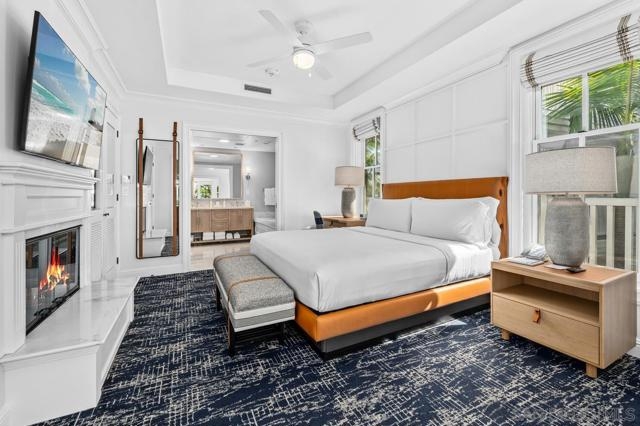 Beach Village Villa 28 at the iconic Hotel del Coronado presents a rare opportunity to own a part of this legendary beachfront resort. This beautifully appointed 2-bedroom, 2-bath villa is located on the second floor with stunning ocean views and is currently the only property available for sale in Beach Village, where opportunities to purchase are few and far between. The villa offers the perfect balance of coastal elegance and effortless luxury. The spacious open-concept living area features a gourmet kitchen with granite countertops and stainless-steel appliances, a cozy fireplace, and French doors that open to a private balcony—ideal for enjoying morning coffee or evening sunsets over the Pacific. The generous primary suite includes a spa-inspired bathroom with soaking tub, separate shower, and dual vanities, while the second full bath provides additional comfort and flexibility for guests. Every detail reflects the timeless charm and five-star experience that make Beach Village so exceptional. Owners enjoy whole ownership with limited use and exclusive access to Beach Village pools, cabanas, and concierge services, as well as the world-class amenities of the Hotel del Coronado—fine dining, spa, fitness center, and a pristine stretch of Coronado Beach. Whether envisioned as a serene private coastal retreat or a sophisticated income-producing investment, Villa 28 offers a rare opportunity to own a timeless legacy at The Del.