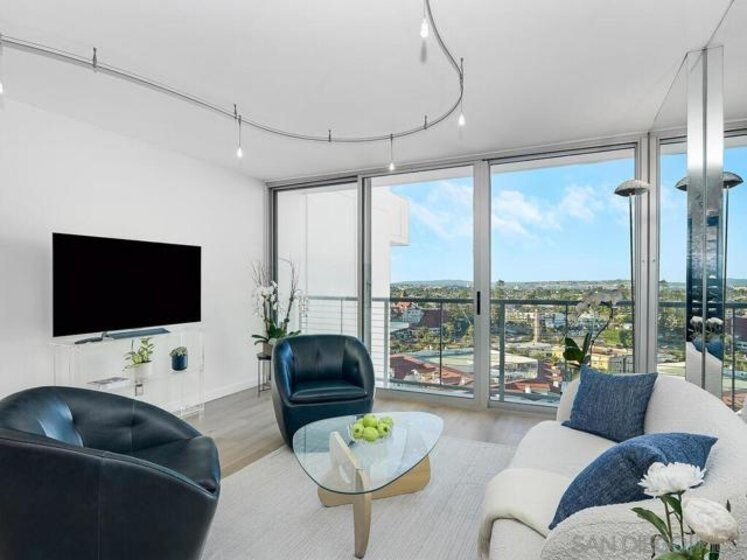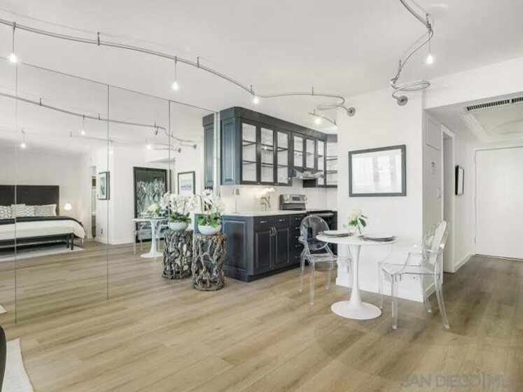 Penthouse Living with Iconic Hotel del Coronado & City Views You’ll feel like you’re on top of the world in this penthouse-level studio at Coronado Shores, perched high on the 16th floor with breathtaking views of the San Diego skyline and the world-famous Hotel del Coronado. By day, the historic red rooftops of the Del anchor your view; by night, the twinkling city skyline creates a dramatic backdrop. The residence has just been refreshed with new paint, luxury vinyl plank flooring, and updated lighting — creating a brighter, more inviting atmosphere. Completed remodel plans and a full stack analysis for washer/dryer installation are included, saving months of planning and giving the next owner a clear path to transform this space into a custom retreat. Floor-to-ceiling windows flood the home with natural light, while the open layout offers flexibility for full-time living, a second home, or an investment. As part of Coronado Shores, residents enjoy resort-style amenities: oceanfront pools, tennis, pickleball, a fitness center, and the Beach Club — featuring live music, line dancing, bingo, and a vibrant calendar of activities. All of this, just steps from the sand and a short stroll to the Del. An extraordinary opportunity to own a penthouse with postcard-perfect views of the city and the iconic Hotel del Coronado.