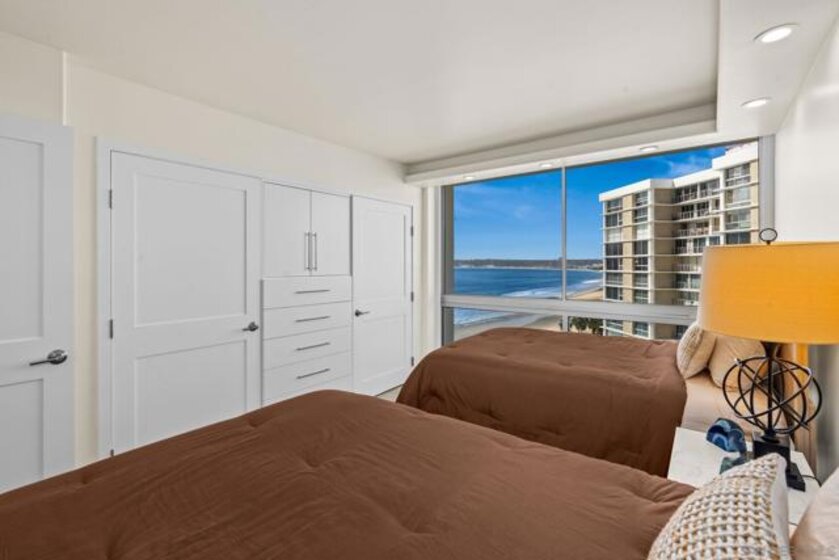 OCEANFRONT + CORNER UNIT! The ultimate combination for breathtaking views at the Coronado Shores in El Cabrillo Tower. From the moment you walk in, you’re greeted by refreshing ocean breezes and sweeping panoramas that stretch from Point Loma to Mexico. The open-concept living space is designed to maximize the scenery, with the kitchen perfectly positioned to face the ocean, making it the ideal gathering space for cooking, entertaining, and unwinding. Enjoy world-class, resort-style amenities including pools, fitness center, pickleball & tennis courts, and beautifully maintained grounds. A truly special opportunity.