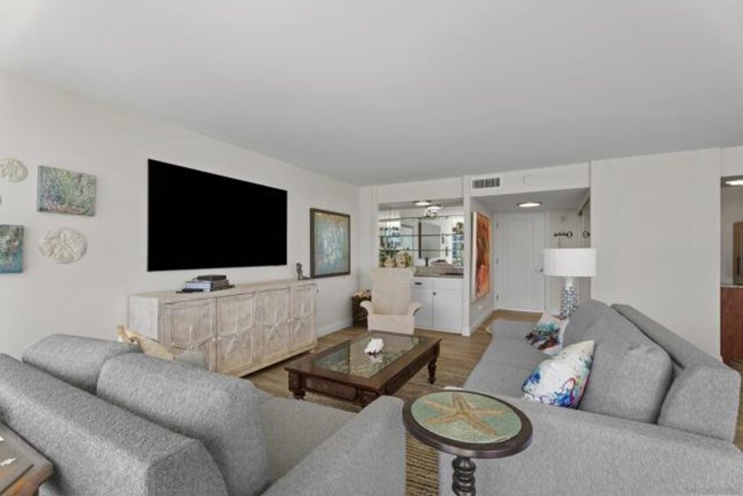 She wants bay, he wants ocean- you both win! Enjoy bay and ocean views from this comfortable and completely furnished beach house. Just installed all new plank wood grain porcelain ceramic tile in the living areas and out onto the super user friendly balcony, with all new soft carpet underfoot in the bedrooms. Too many nice upgrades to list, complete high quality furnishings are included and ready for you to enjoy right now!!