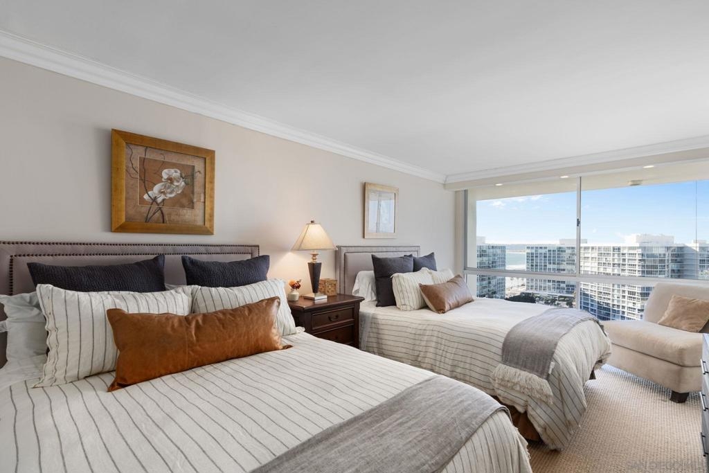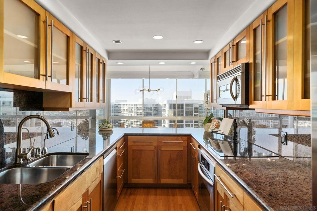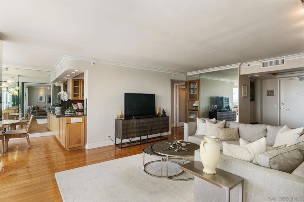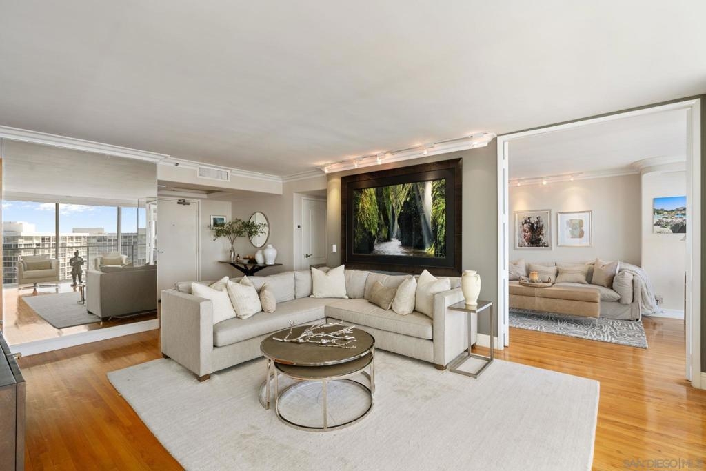 A unique opportunity to own one of the most sought-after floorplans at The Shores! Offering breathtaking views of the Pacific Ocean, Point Loma, and the San Diego skyline, this 3-bedroom Penthouse has gorgeous features like hardwood flooring, a custom maple wood kitchen with granite counters, a convenient layout with walk-in laundry room, and two parking spaces! El Encanto Tower has been recently remodeled and is situated at The Shores, next to the beach and the renowned Hotel Del! The Shores has 7 tennis courts, 2 pickleball courts, 4 oceanfront pools, a clubhouse for various events with a full bar and a fitness center with indoor jacuzzis and saunas! Come experience beach living at its finest!