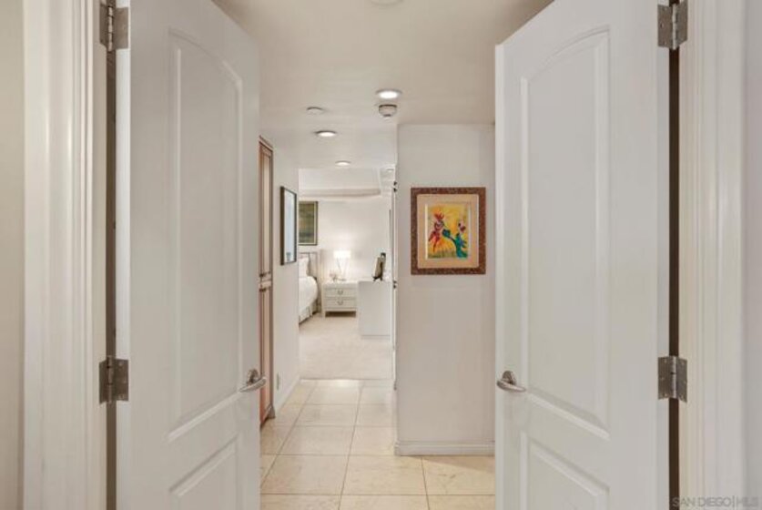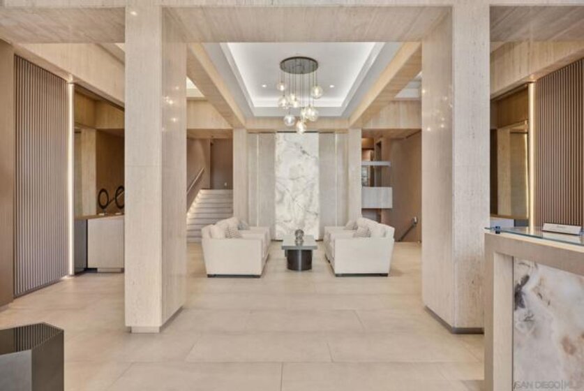 Only rarely do you come across a unit like El Encanto #703. The original floor plan included three bedrooms and three bathrooms....a corner unit located on the 7th floor with panoramic bay, bridge and city skyline views plus ocean waves. Today, the unit has been redesigned and remodeled to offer an elegant and timeless one-of-a-kind property. Double doors open to the oversized Primary Suite which includes "his and her" bathrooms plus two large walk-in closets. The Guest bedroom is designed with an ensuite bathroom. This large bedroom has stunning bay, bridge and downtown city views. The open and generous living room and dining room with built-in cabinetry is perfect for entertaining or relaxing to enjoy the views from the floor to ceiling windows. The chef's kitchen is complete with top-of-the-line appliances and European Laminate cabinetry. Satin finish travertine floors are accented with a granite center inlay. El Encanto #703 must be seen to be appreciated....call now to make an appointment.
