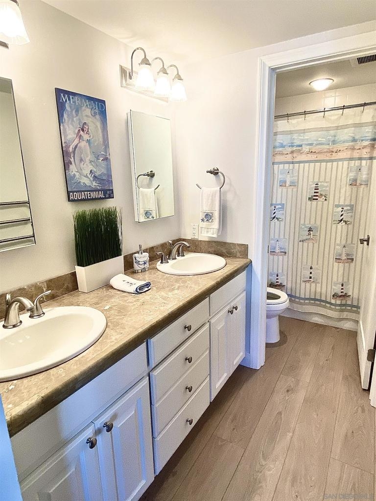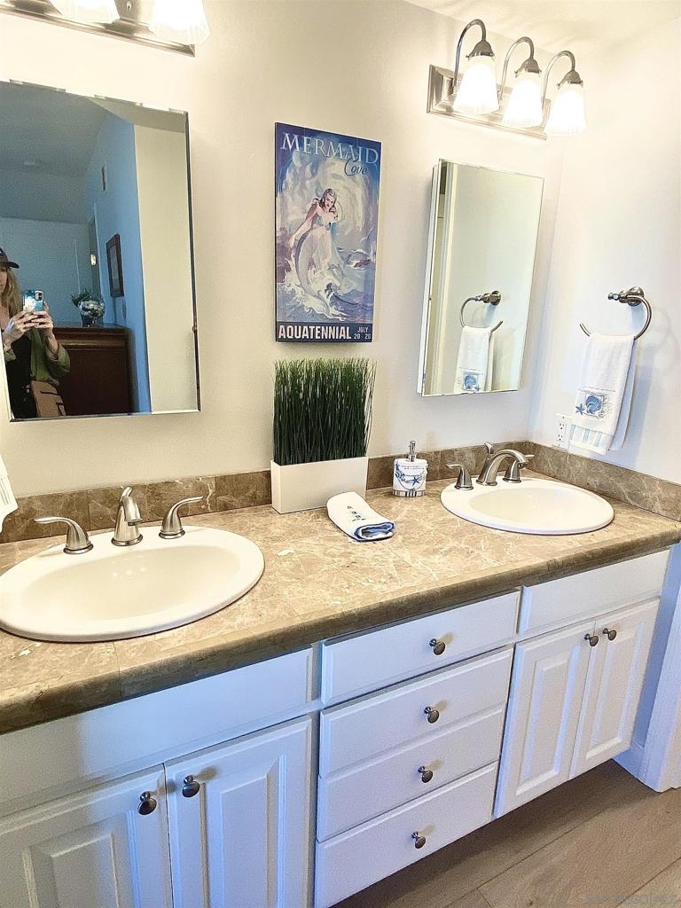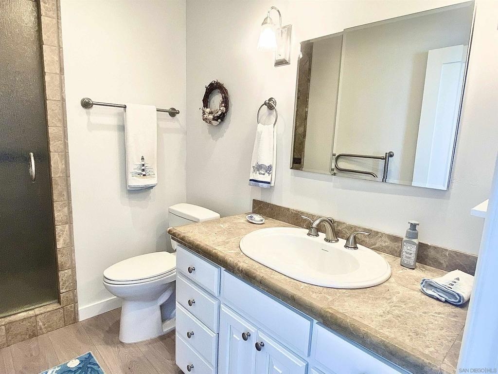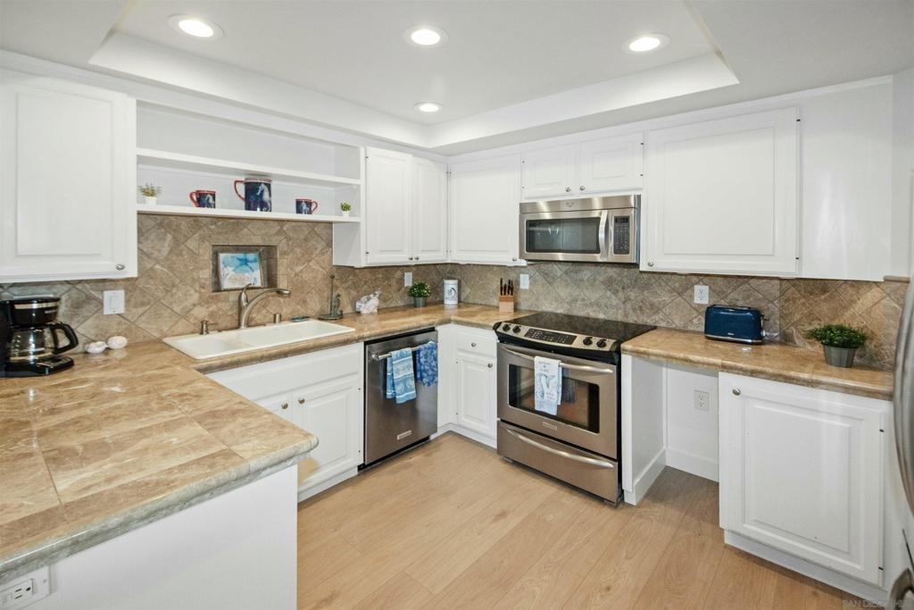 PRICE IMPROVEMENT! Stunning Upgraded Coronado Condo with Ocean, Bay & Skyline Views! Make an exciting new life in this home or take advantage of its complete furnishings to facilitate rental income. Discover light, bright coastal living in this beautifully updated 2-bed 2.5-bath, 1,492 sq ft condo adjacent to Loews Coronado Bay Resort in desirable 72-unit Montego Village. Completed Oct 2024, the renovation includes the addition of an office space with upgraded soundproofing allowing Zoom & work from home in quiet privacy. New LVP flooring, solid wood doors w/ modern hardware, dimmable LED lighting and a fresh coat of quality paint. Spacious living areas feature cozy gas fireplace, large half bath, storage and private balcony perfect for taking in CA sunsets. Updated kitchen is equipped with modern stainless-steel appliances and new Kitchen Aid dishwasher. Generously sized bedrooms each include ensuite bathroom and max closet & storage space. Main bedroom balcony has unobstructed west-facing ocean, bay & bridge views. Residents enjoy lush landscaping, access to Montego Village swimming pool, spa, clubhouse/rec room, and the security of a gated community. This unit includes a brand new 2-car carport upgraded with cabinetry offering secure storage of CA lifestyle accessories like beach chairs and coolers. Easy access to multiple military bases and both the bike & the walking paths along San Diego Bay & Pacific Ocean, plus green spaces, playground, dog park, pickleball, tennis & basketball courts, café, boat docks & Yacht Club. Included within the Coronado Cays Community is a massive green space, soccer fields, playground, dog park, pickleball, tennis and basketball courts, restaurant, and Coronado Cays Yacht Club. Boat docks are available for rent or lease within the Coronado cays. Residents of the Coronado Cays Community enjoy dining and lodging discounts with the adjacent Loews Coronado Bay Resort. 16 Montego comes fully furnished and ready to move in or rent out!