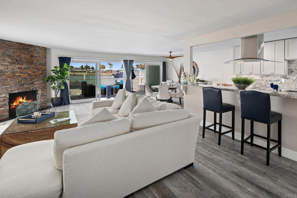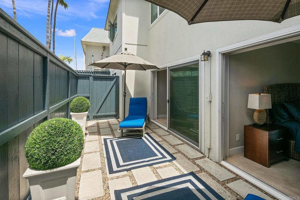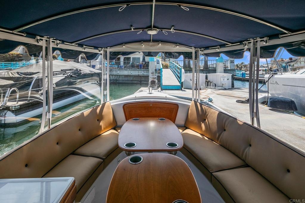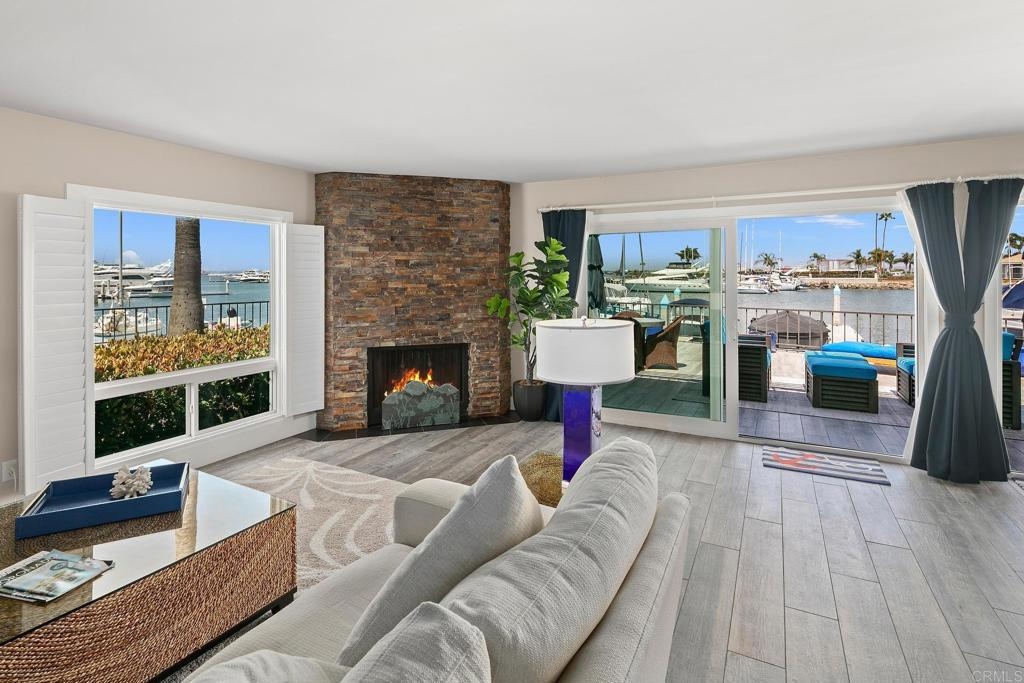 For the first time in nearly four decades, the premier condo of the Coronado Cays is being offered for sale! 43 Antigua Court, positioned at the very tip of the Antigua key, boasts north and easterly bay views from its oversized patio and adjacent great room. This trophy unit, fully remodeled by Mark Garcia of MG Lifetime Construction, is being offered fully furnished and includes a nearly new 2023 Duffy harbor cruiser. This package deal is as rare as it is desirable! This waterfront home is a boater’s dream. With a 51’ slip just outside your back patio, the bay and ocean beyond awaits. Affording the new owner a dock size not often found outside of the $4m+ custom homes, this slip makes room for all of your water toys. Residents enjoy all types of watercraft and related sports including fishing, skiing, or kayaking. The opportunities are limited only by your sense of adventure. The coastal themed professional interior design and luxury finishes make this single-level end unit condominium stand out. Upon entering the largest floor plan in the development, you are greeted by an open and airy great room. An expansive kitchen features high-end stainless-steel appliances, sleek granite countertops and backsplash, and ample shaker style cabinetry with soft close hinges. A stacked stone veneer fireplace adds a touch of warmth to the spacious living area while a round dining table and raised bar provide ample seating for guests, all with views to the outdoor living area further emphasizing the home’s connection to its stunning waterfront surroundings. The wood-grain porcelain tile is kept cozy with radiant floor heating throughout the living areas and lush carpet in both bedrooms. Each bedroom, complete with California closets, opens onto a private patio, offering guests freedom to come and go as they please. The open den serves as an ideal space for peacefully enjoying a movie or letting children play away from the adults. Opportunities like this come up once in a generation, don’t miss this rare chance to own this extraordinary waterfront sanctuary at 43 Antigua Court.