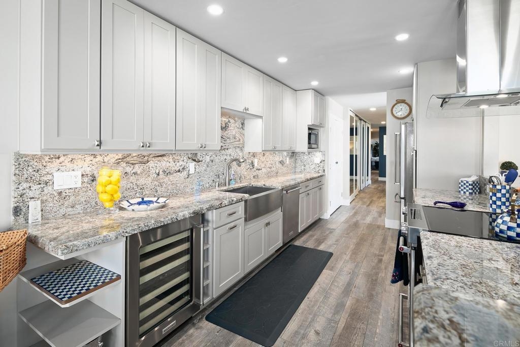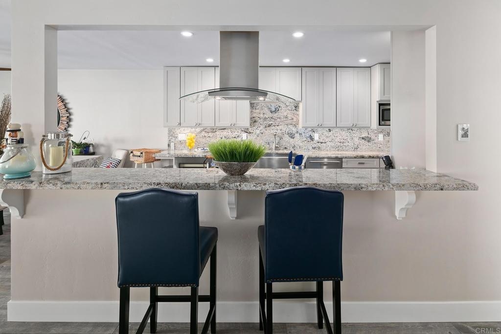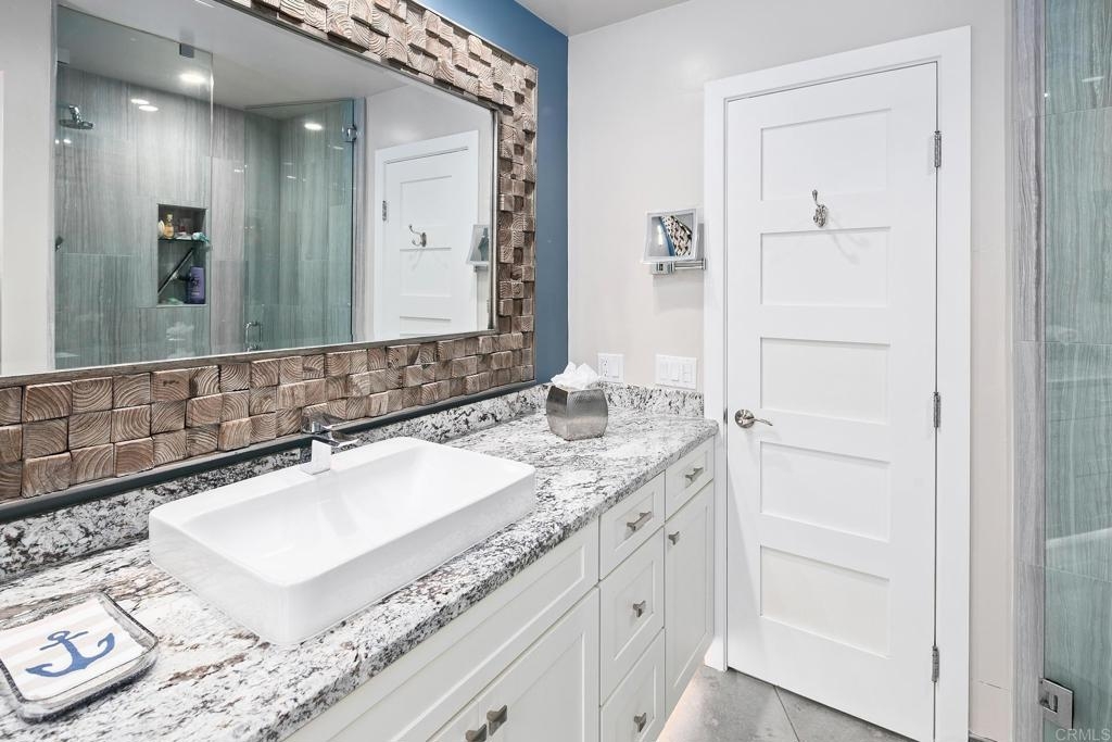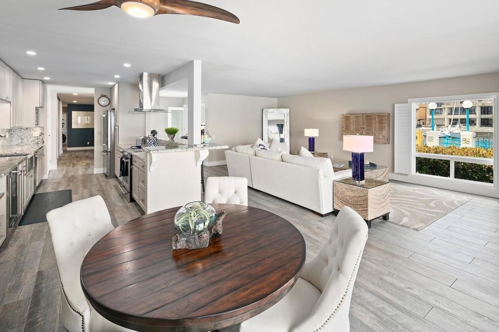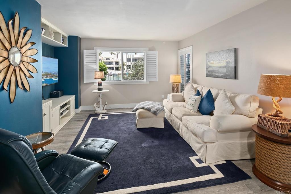 For the first time in nearly four decades, the premier condo of the Coronado Cays is being offered for sale! 43 Antigua Court, positioned at the very tip of the Antigua key, boasts north and easterly bay views from its oversized patio and adjacent great room. This trophy unit, fully remodeled by Mark Garcia of MG Lifetime Construction, is being offered fully furnished and includes a nearly new 2023 Duffy harbor cruiser. This package deal is as rare as it is desirable! This waterfront home is a boater’s dream. With a 51’ slip just outside your back patio, the bay and ocean beyond awaits. Affording the new owner a dock size not often found outside of the $4m+ custom homes, this slip makes room for all of your water toys. Residents enjoy all types of watercraft and related sports including fishing, skiing, or kayaking. The opportunities are limited only by your sense of adventure. The coastal themed professional interior design and luxury finishes make this single-level end unit condominium stand out. Upon entering the largest floor plan in the development, you are greeted by an open and airy great room. An expansive kitchen features high-end stainless-steel appliances, sleek granite countertops and backsplash, and ample shaker style cabinetry with soft close hinges. A stacked stone veneer fireplace adds a touch of warmth to the spacious living area while a round dining table and raised bar provide ample seating for guests, all with views to the outdoor living area further emphasizing the home’s connection to its stunning waterfront surroundings. The wood-grain porcelain tile is kept cozy with radiant floor heating throughout the living areas and lush carpet in both bedrooms. Each bedroom, complete with California closets, opens onto a private patio, offering guests freedom to come and go as they please. The open den serves as an ideal space for peacefully enjoying a movie or letting children play away from the adults. Opportunities like this come up once in a generation, don’t miss this rare chance to own this extraordinary waterfront sanctuary at 43 Antigua Court.