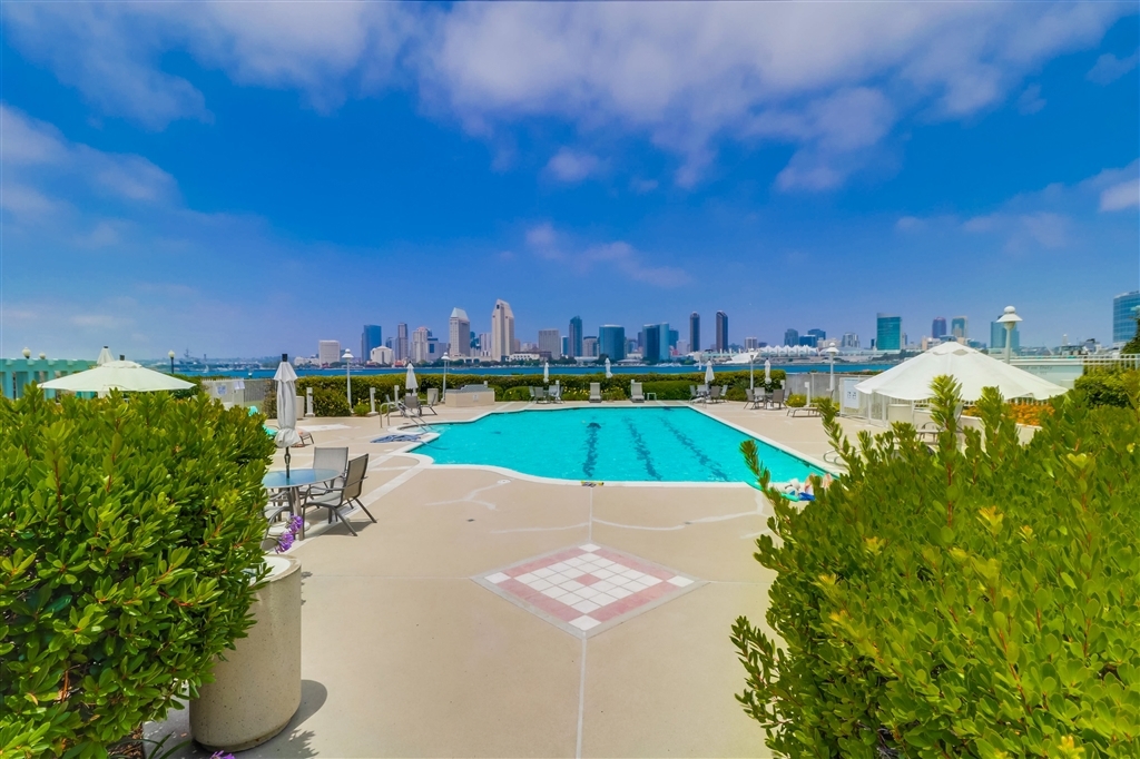 Resort living at its finest in the highly coveted Coronado Point. Everything you need in this 3 bed/3 bath, fully appointed condo with picture-perfect views of the downtown San Diego skyline and harbor. The unit boasts one of the premier views in the complex and in The Village. Limestone floors, Sub Zero fridge/freezer, built-ins throughout, and an expansive covered balcony, 2 under ground parking spaces + storage room. The Point amenities include, lush landscaping, pool, hot tub, fitness center + more. This luxury unit is stunning inside with an excellent location in The Point. Featuring a large balcony to savor the panoramic water and city skyline views. Click on the 3D URL and Virtual Tour to view the interior and surrounding area. Property is adjacent to shopping, restaurants, farmer's market, fitness path, water sport activities, Ferry Landing, beach, and supermarkets.. Neighborhoods: Coronado Village Complex Features: ,,,,, Other Fees: 0 Sewer: Sewer Connected Topography: LL
