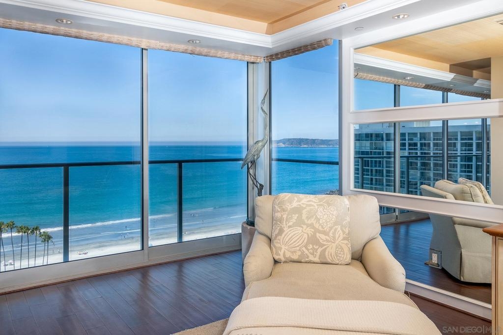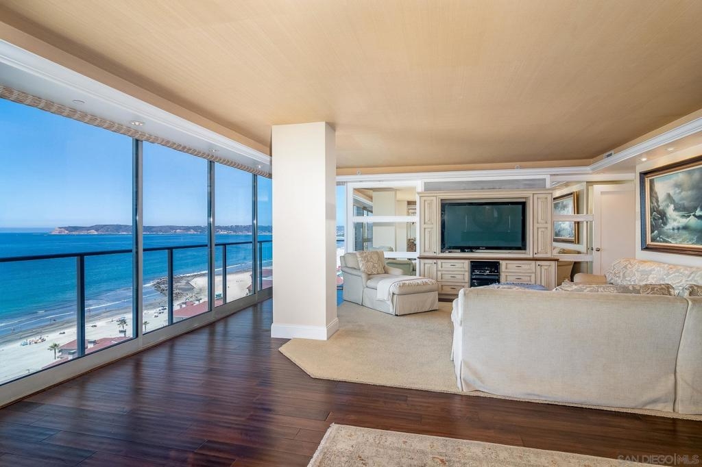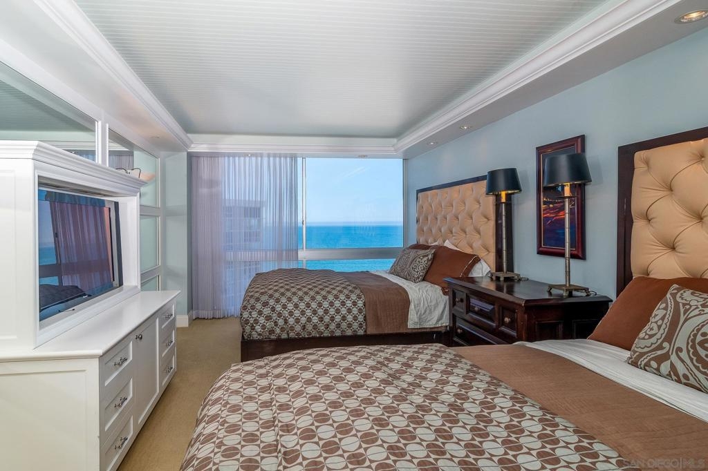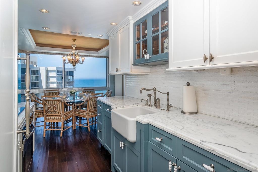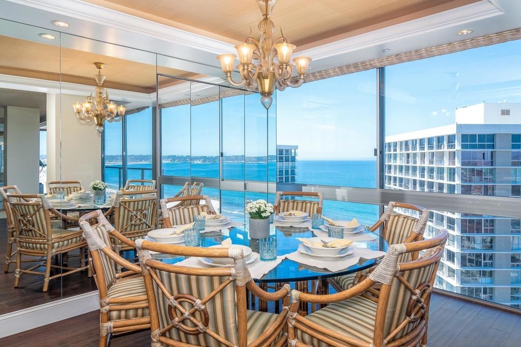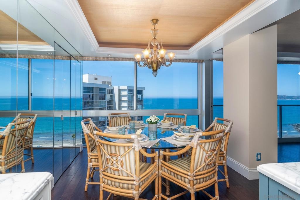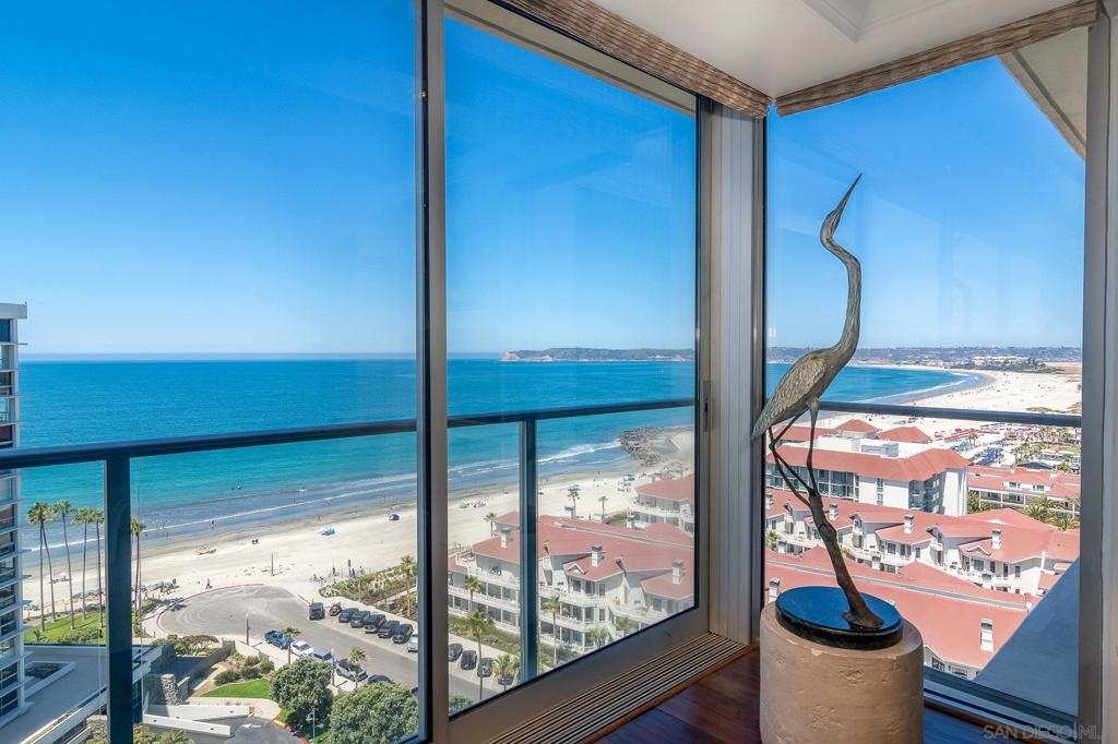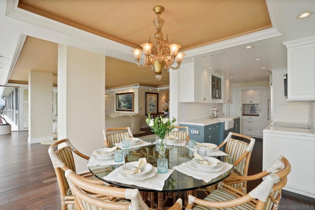 Welcome to this timeless and exquisitely designed Michael Roy condominium that evokes the Coronado Beach vibe with a nod to the Hamptons! The original 3 bedroom floor plan has been remodeled to provide generous living spaces of approximately 1900 sf that take full advantage of the panoramic ocean views. The preferred split bedroom floor plan offers privacy for the oversized Primary and Guest bedrooms. Elegant finishes include marble and granite counters, Murano glass light fixtures, custom Waterworks tile and hardware. The sliding glass doors in the living room open wide to bring the ocean and beach views to your doorstep!