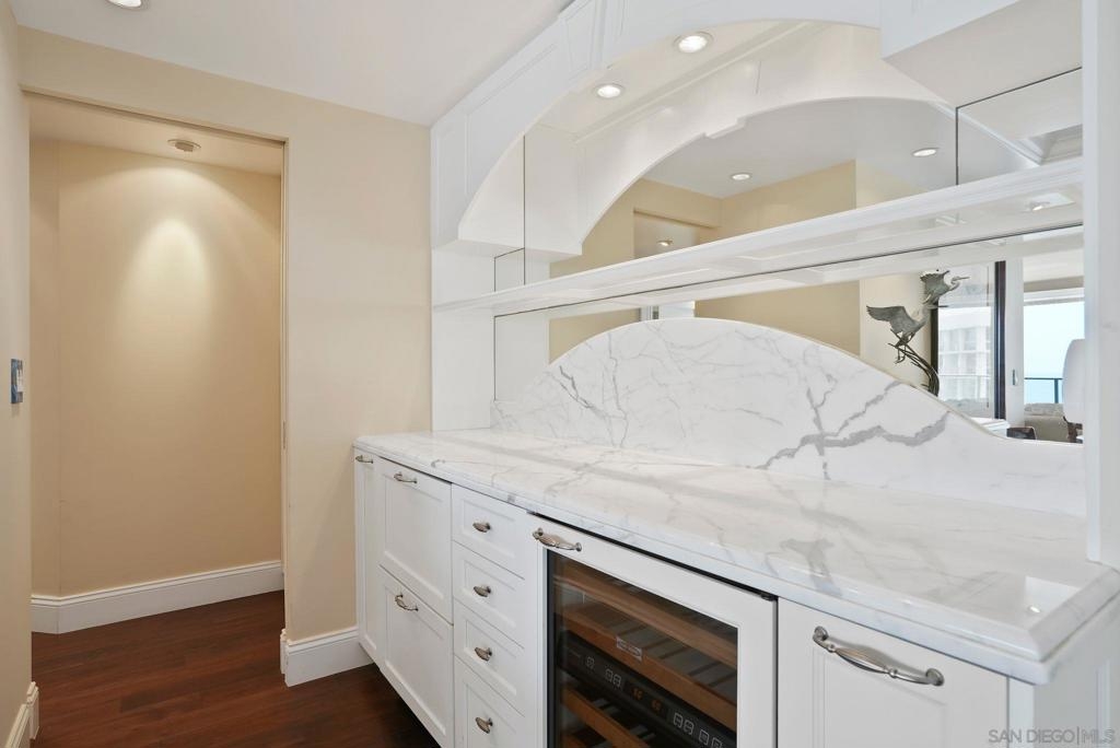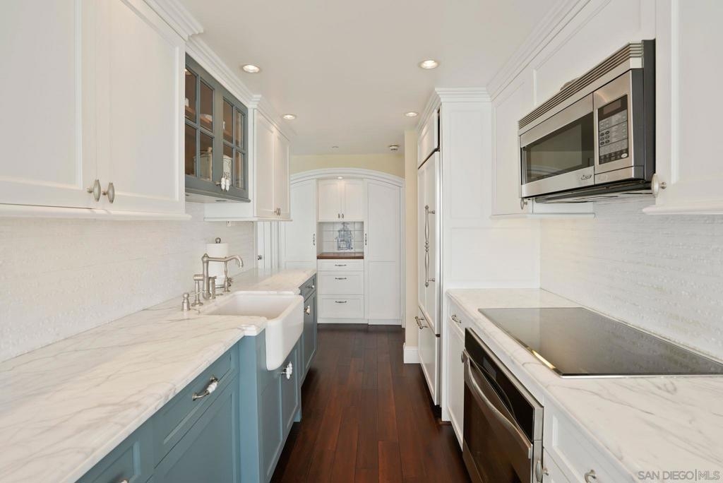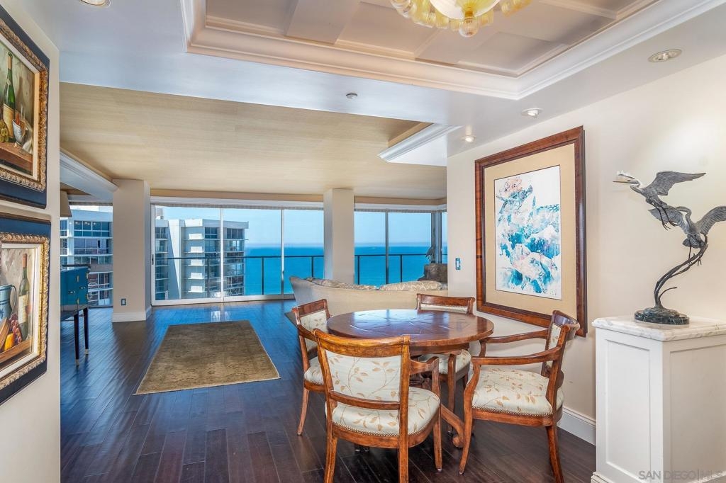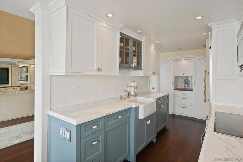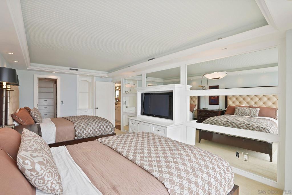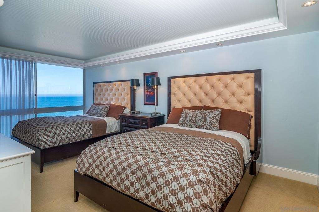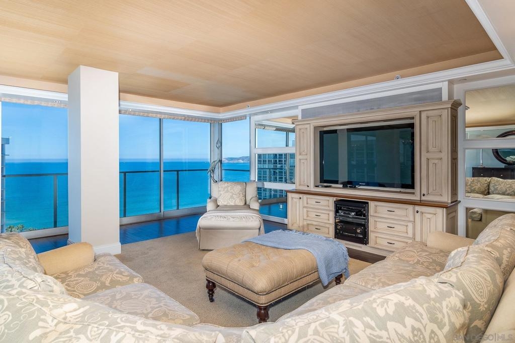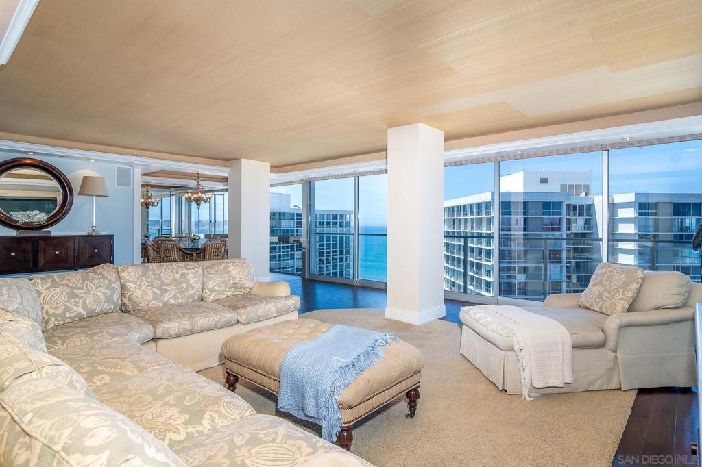 Welcome to this timeless and exquisitely designed Michael Roy condominium that evokes the Coronado Beach vibe with a nod to the Hamptons! The original 3 bedroom floor plan has been remodeled to provide generous living spaces of approximately 1900 sf that take full advantage of the panoramic ocean views. The preferred split bedroom floor plan offers privacy for the oversized Primary and Guest bedrooms. Elegant finishes include marble and granite counters, Murano glass light fixtures, custom Waterworks tile and hardware. The sliding glass doors in the living room open wide to bring the ocean and beach views to your doorstep!