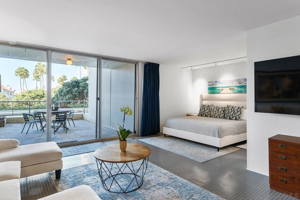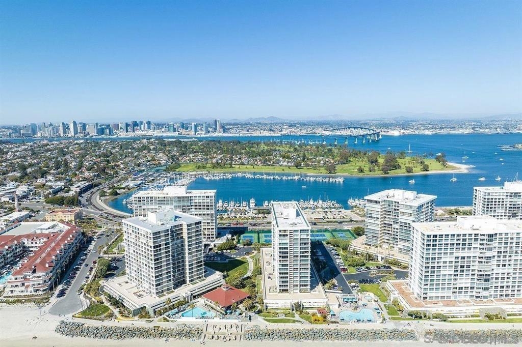 This exceptional unit offers a private and large terrace, breathtaking views of the iconic Hotel Del Coronado and a charming glimpse of the ocean! Spacious studio comes with an incredible opportunity to expand—the balcony can be pushed out, adding extra square footage and creating an even more open and versatile living space. Enjoy coastal living at its finest while still having the option to customize and maximize the potential of this prime location. Shores complex features security and 24-hr doorman service, 4 pools, fitness center plus spa, beach clubhouse, pickle ball & tennis courts. Just steps away to the ocean, a short walk to restaurants, shopping and more!