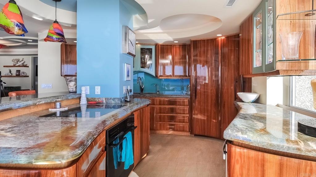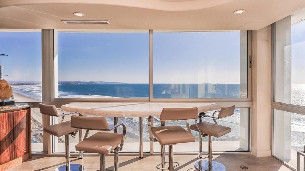Welcome to the best Oceanfront corner unit at The Shores. This top Luxury condo in La Sierra has breathtaking views of the ocean Point Loma and the new Hotel Del. This 2 bedroom + den is custom made and includes a combination of Rosewood, Quilted Maple, Green Lacewood and Fiddle Ash. You'll also find Exotic Blue Louise, Vitoria Regia Satin, Capolavoro granite throughout. Automatic blinds and a state of the art media systems throughout.