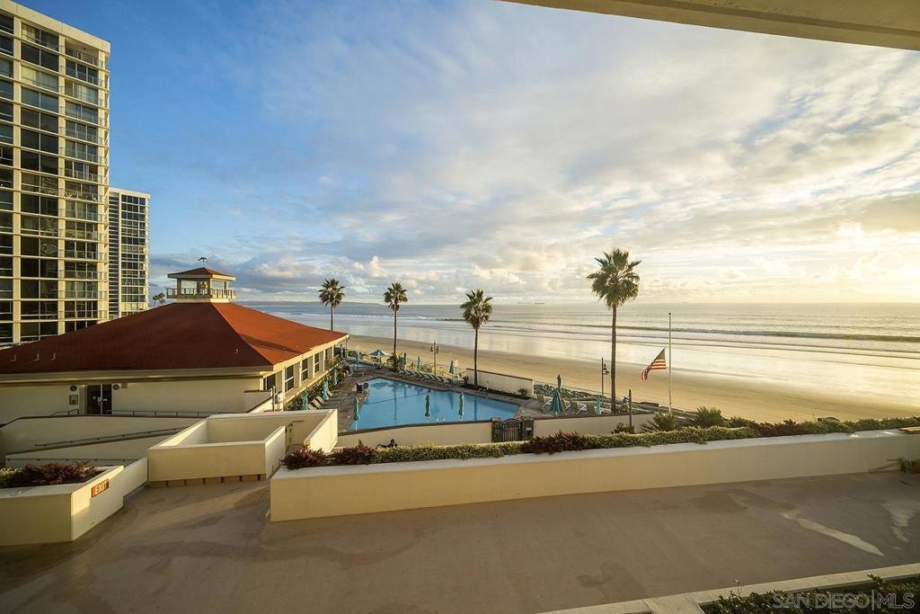 Welcome to this coveted second-floor corner unit with stunning, unobstructed ocean views from every room, including a picturesque sight of Point Loma. This spacious 3-BR, 2-BA rarely available, features 2 pkg spaces, updated plumbing-offering the potential to add an extra bathroom and a washer & dryer. This well-maintained unit boasts a roomy living area that flows seamlessly onto a private balcony, providing a comfortable coastal living experience. Additionally, residents can enjoy community amenities and easy beach access. Explore the possibilities of exceptional coastal living with this unique property! Nestled within the prestigious Coronado Shores community, this unit offers access to an array of exclusive amenities, including multiple pools, tennis and pickleball courts, a state-of-the-art fitness center, and a charming beach club, with the convenience of direct access to the beach. Experience the epitome of coastal living - call today to schedule your private viewing.