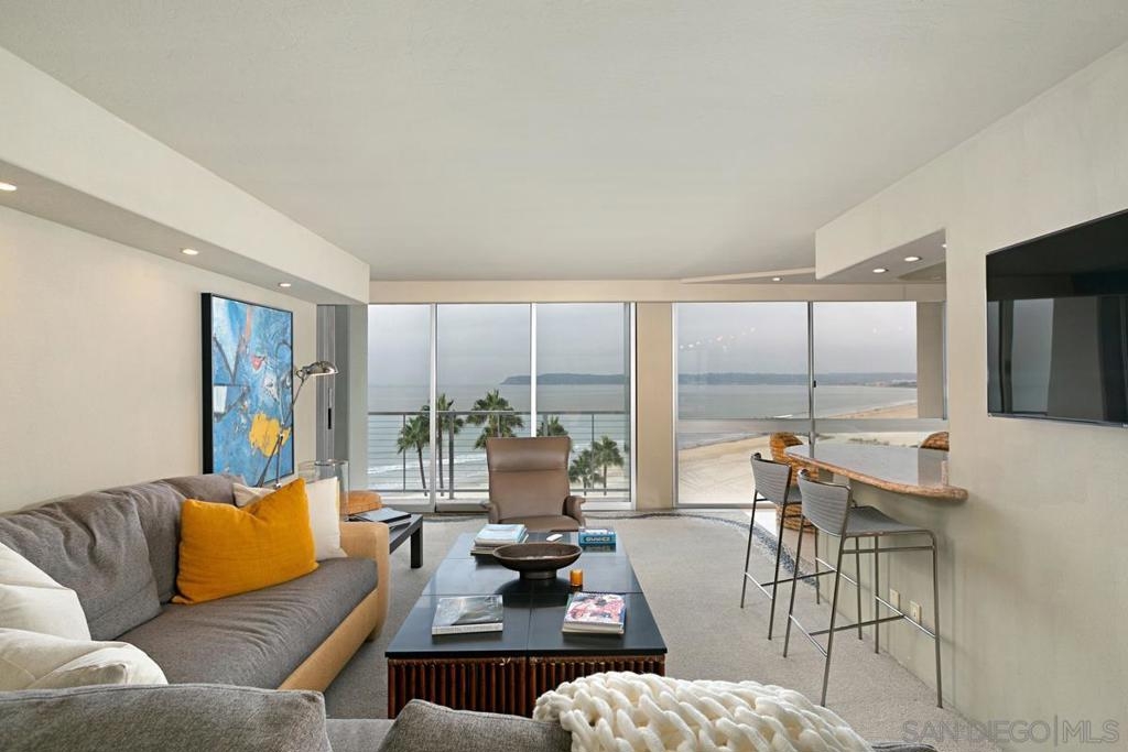 Picture perfect oceanfront views spanning from Point Loma to the Hotel Del and beyond. This is one of the most sought after rarely available one bedroom locations at The Shores. This turnkey beautifully remodeled oceanfront one bedroom one bathroom unit is very tastefully decorated and offered partially furnished. Unit has L76 Tandem for parking (Two spaces). Enjoy postcard sunsets from this unique unit. Artwork does not convey. Complex Features: ,,,,,,,, Sewer: Sewer Connected Topography: LL Frontage: Ocean/Sand