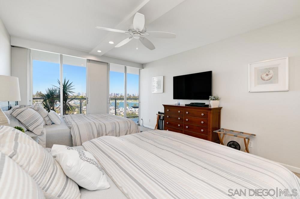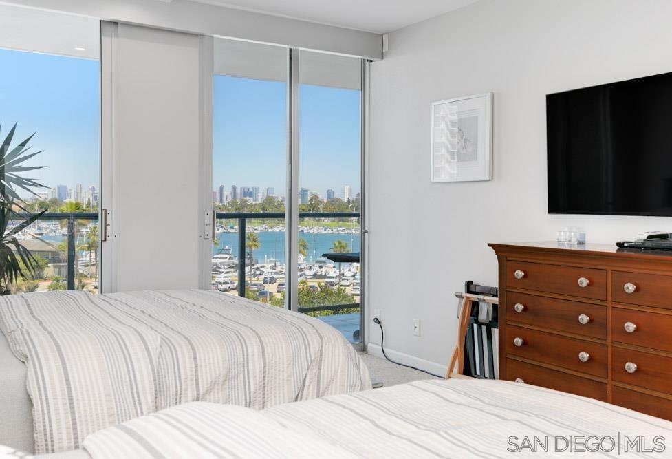 Turnkey rental unit in really nice shape with everything included down to the knives and forks. HUGE 480 square foot balcony that can become indoor space too. Split floor plan offers nice Bay views from every room. Clean unit, move in condition, with recessed lighting, updated kitchen, auto shades throughout and new washer and dryer in the unit. Lowest priced 2 bedroom on the market in this very desirable and well managed building. This one will go quickly.