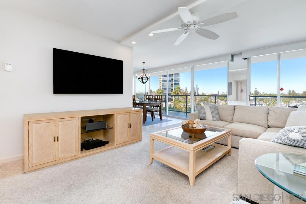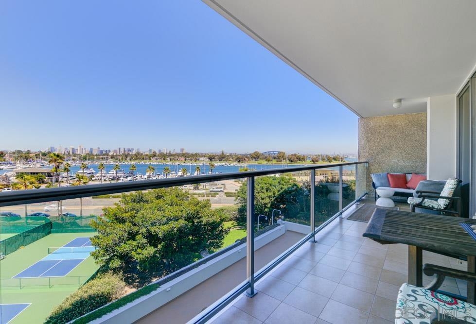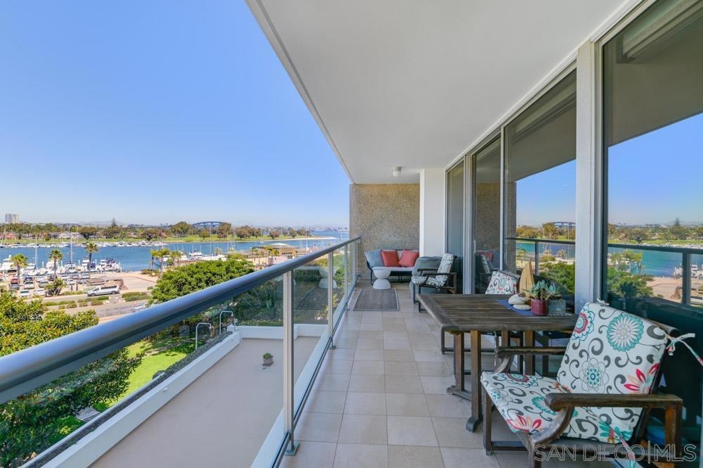 Turnkey rental unit in really nice shape with everything included down to the knives and forks. HUGE 480 square foot balcony that can become indoor space too. Split floor plan offers nice Bay views from every room. Clean unit, move in condition, with recessed lighting, updated kitchen, auto shades throughout and new washer and dryer in the unit. Lowest priced 2 bedroom on the market in this very desirable and well managed building. This one will go quickly.