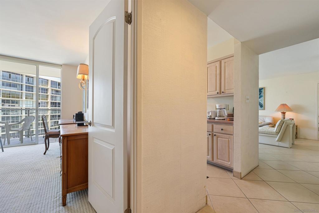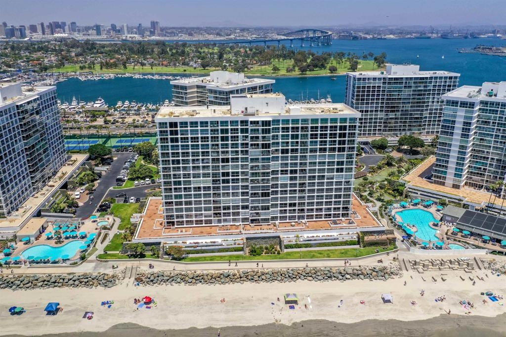 Welcome to the luxurious 11th floor condo of the las Palmas tower bay-view unit on Coronado Island. This stunning unit boasts 2 bedrooms, 2 bathrooms and spans 1215 square feet. Step into a world of breathtaking views as you are greeted by a panoramic scene of the majestic Coronado Bridge, Florietta marina, sparkling ocean, and the mesmerizing city lights. One of the highlights is the balcony inviting you to indulge in the ever-changing scenery. Whether it is sipping coffee or hosting a dinner party, this balcony provides the perfect backdrop for every occasion. Las Palmas offers an array of amenities including a beach club, pools, spa, tennis courts, work out facility and much more. Experience the epitome of coastal living that combines comfort, style and picturesque vistas.