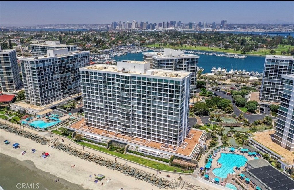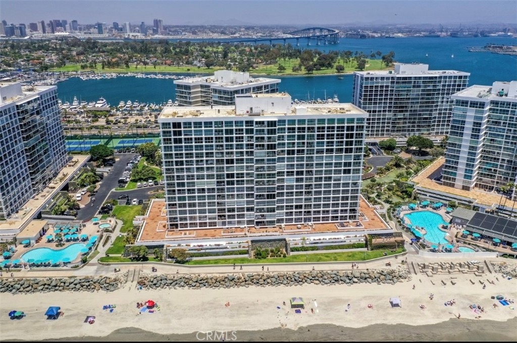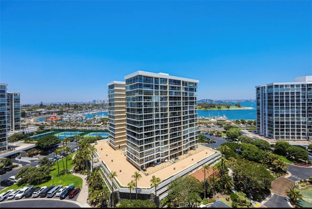 Welcome to the luxurious 11th floor condo of the Las Palmas tower bay-view unit on Coronado Island. This stunning unit boasts 2 bedrooms, 2 bathrooms and spans 1215 square feet. Step into a world of breathtaking views as you are greeted by a panoramic scene of the majestic Coronado bridge, Glorietta marina, sparkling ocean, and the mesmerizing city lights. One of the highlights is the continuous balcony inviting you to indulge in the ever-changing scenery. Whether it is sipping coffee or hosting a dinner party, this balcony provides the perfect backdrop for every occasion. Las Palmas offers an array of amenities including a beach club, pool, spa, tennis courts, work out facility and much more. Experience the epitome of coastal living that combines comfort, style and picturesque vistas.