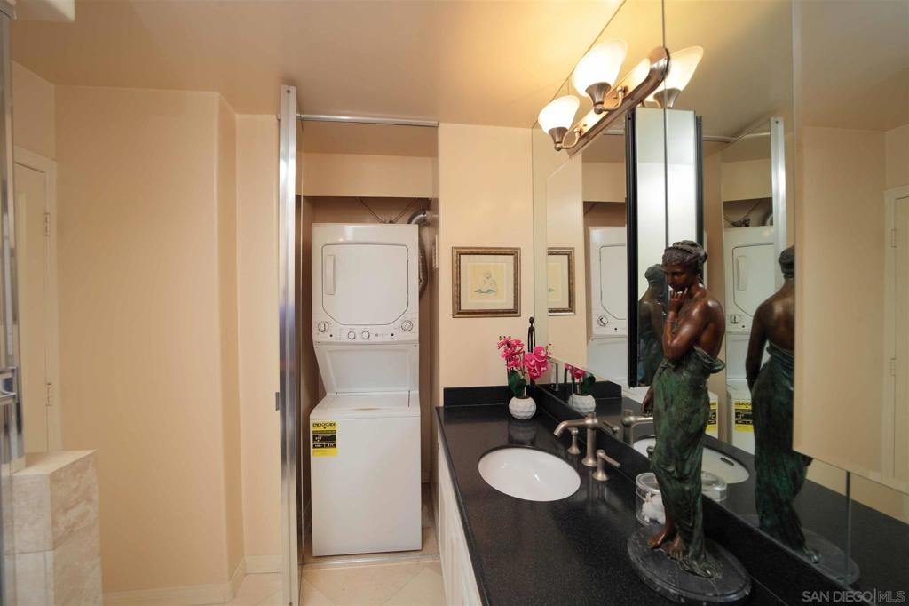 Shores-Las Flores 3BR 3 full BA, Approx 1669 sqft. Elusive corner unit. Gorgeous beach and bay skyline views of yacht club and downtown. Hotel Del view from living room and den. Custom built in 10x7 ft. Dresser in master bedroom. Master bedroom walk in closet and 4 additional spacious closets in unit. Peaceful setting with automatic blackout shades in each bedroom. Automatic sunscreen shades throughout the unit. Upper level tandem 2 car parking with 2 storage cabinets in upper garage level. Stackable washer and dryer in the unit. Enjoy your vacation beach and bayside home with easy walk to shopping, Hotel Del, theater and restaurants. 24 hour doorman, private gated community, enjoy 4 heated pools, clubhouse, renovated gym and tennis courts. Each day feels like a vacation at Unit 309, Las Flores, Coronado Shores! Equipment: Dryer,Garage Door Opener, Washer, Water Filtration Sewer: Sewer Connected Topography: LL Guest House Est. SQFT: 0