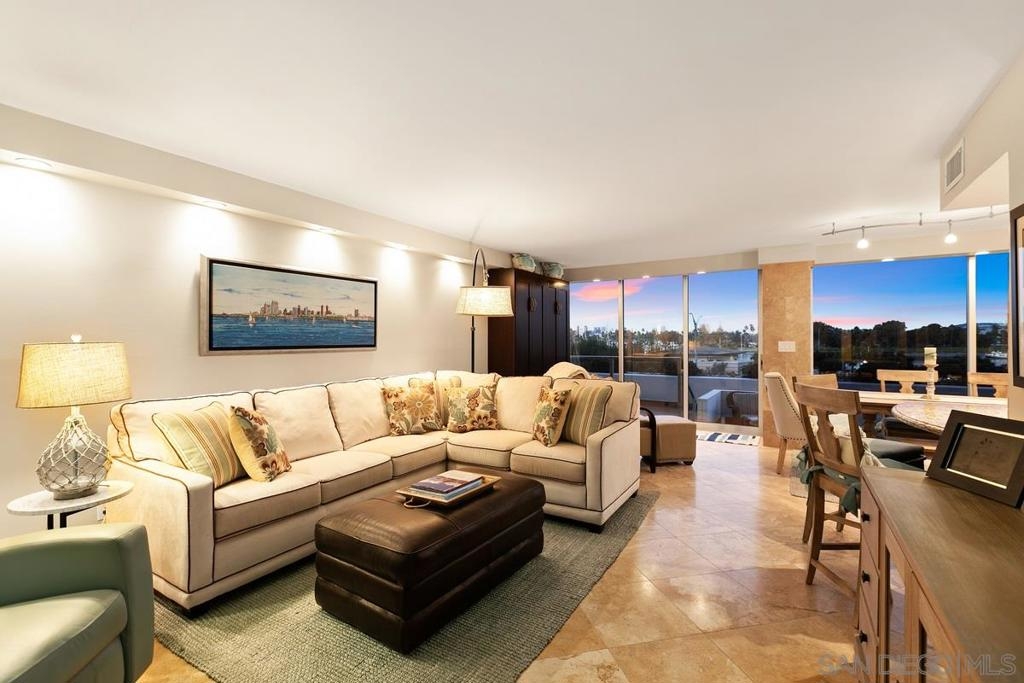 This beautiful 1br TERRACE in Las Flores Tower is the ultimate Coronado beach escape & entertainers dream. Enjoy sweeping BAY views of the Glorietta marina, downtown skyline & bridge. Patio offers indoor/outdoor living & is perfect for BBQ’s & watching sunsets. Offered furnished & equipped, this Lock & Leave unit comfortably sleeps 6 & comes w BIKES & beach chairs. Boasting an open kitchen w shaker cabinets, granite, SS appliances, murphy bed, dual pane windows. Shores features 24hr security/pools/spa + VIEWS, VIEWS, Views. This beautiful TERRACE condo is the ultimate luxurious beach retreat. Located in the prestigious Coronado Shores complex, Las Flores #107 is a spacious, MOVE-IN READY 1br/1ba condo with large terrace patio. It contains travertine floors, shaker cabinets, granite, built in murphy bed, wet/bar, dual pane windows, mall doors that open up from the living room, custom motorized blinds, spacious bedroom with built-in closet, & beautiful bath w walk-in shower, double sinks. Large private patio offers additional living space with the most spectacular sunsets. Parallel to the bay, you can see the downtown skyline, city lights, bridge and marina. Stunning condo makes for the perfect 2nd home or primary residence. Offered fully furnished with Lazy Boy Furniture, you can move right in and comfortably sleep 6. Bikes and beach chairs are included. The Coronado Shores amenities include: beach club, 4 pools spa, BBQ's, tennis courts, fitness center, 24 hours security, gated entrance, doorperson. Complex Features: ,,,,,,, Equipment: Dryer, Range/Oven, Washer Other Fees: 0 Sewer: Public Sewer Topography: LL Frontage: Bay