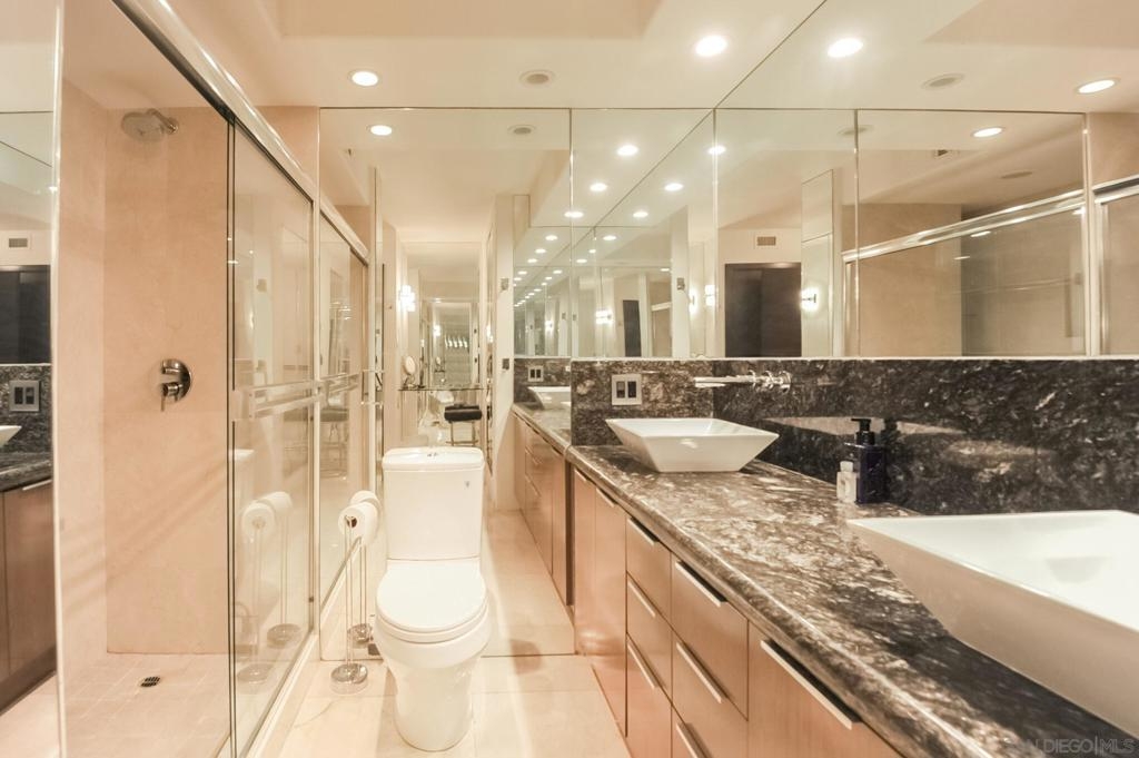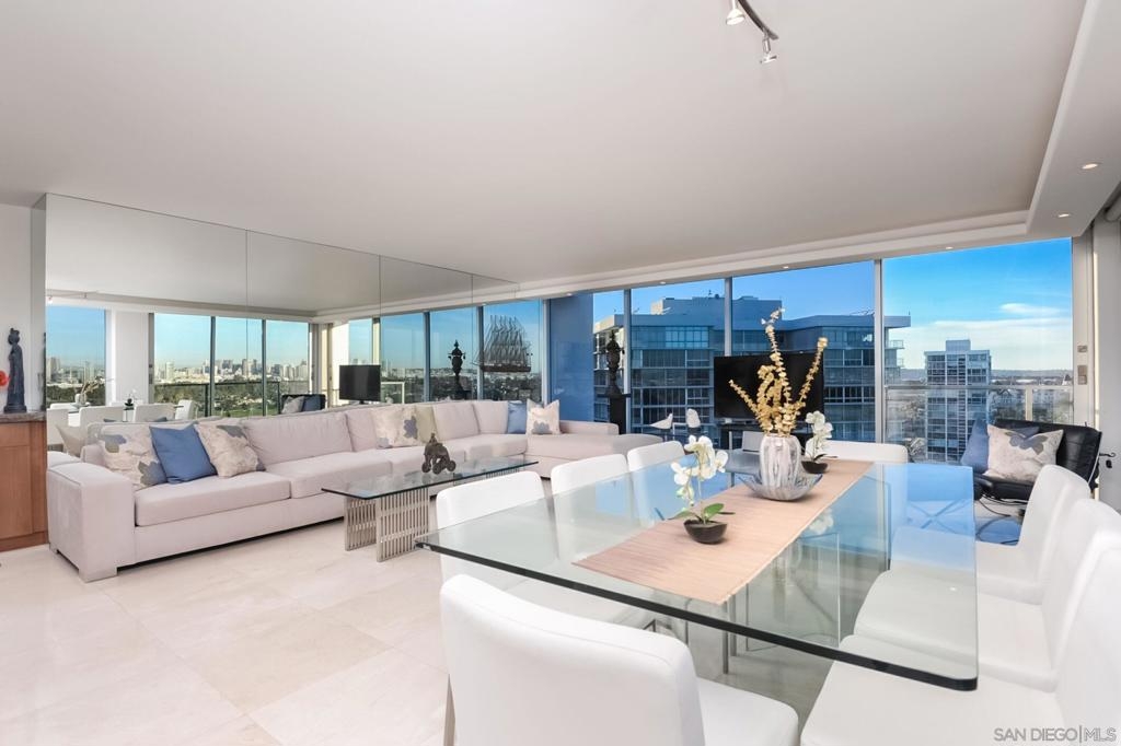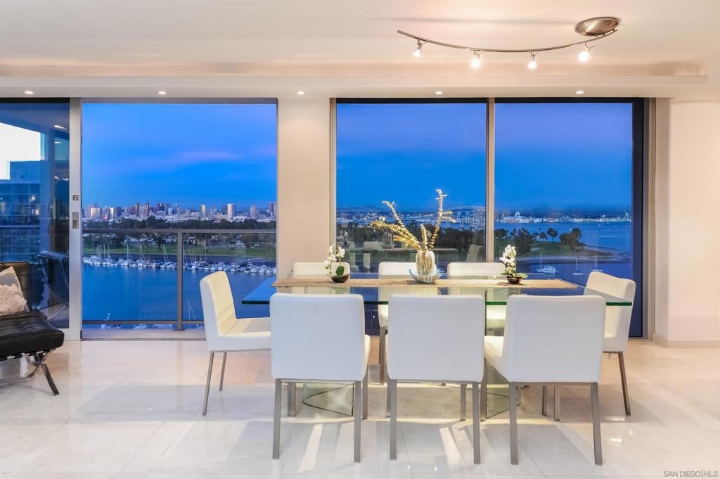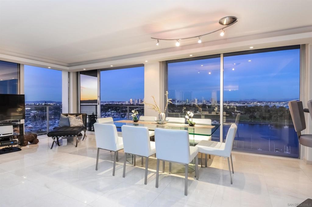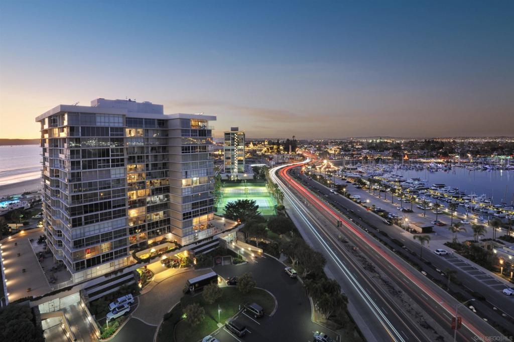 Spectacular condo, one of the best at The Shores. With more than 2300 sq. feet, and a great location, this corner unit is the perfect home with 3 bedrooms plus a bonus room and 3 parking spaces. Enjoy the sunrise and views of the San Diego Skyline and the Coronado Bridge from every room as well as the San Diego Bay, the Hotel Del and a peek of the ocean. These two units combined feature, new windows, open floor plan, gorgeous granite countertops, tile throughout, 2 laundry centers, gourmet kitchen, and 2 storage cages. Offered furnished. Complex Features: ,,,,,,, Equipment: Dryer,Garage Door Opener, Washer Sewer: Sewer Connected Topography: LL Frontage: Bay, Golf Course, Open Space