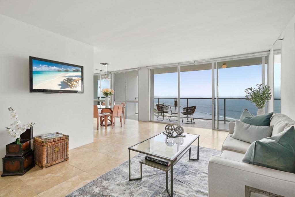 This stunning unit, situated in the highly coveted La Perla Tower, has panoramic views of the Pacific Ocean and Coronado Islands. Featuring a highly desired split bedroom floor plan, this 2-bedroom, 2-bathroom space is ready for new owners. Relax and enjoy the view on your spacious balcony! Freshly painted, it’s move in ready and the perfect blank canvas. The Shores has 7 tennis courts, 2 pickleball courts, 4 oceanfront pools, a clubhouse for various events with a full bar and a fitness center with indoor jacuzzis and saunas! Come experience beach living at its finest!