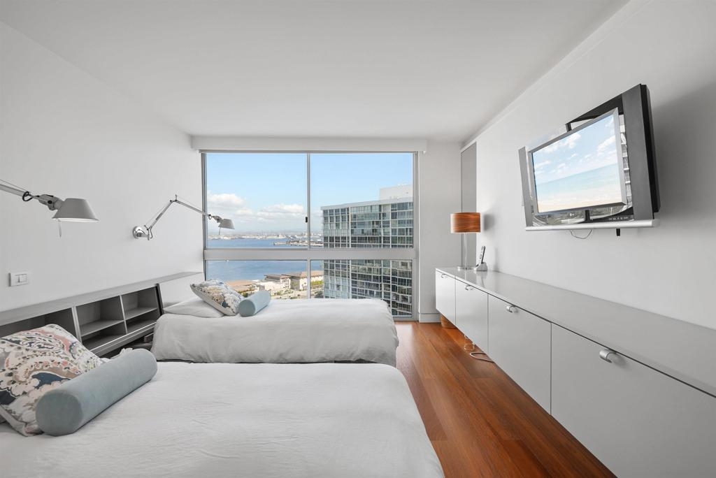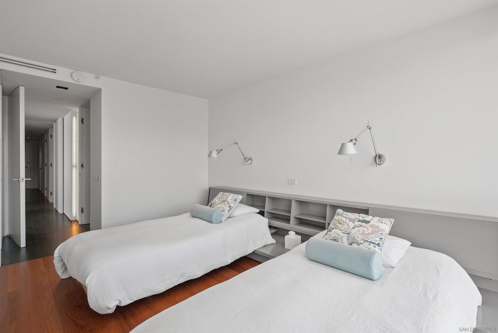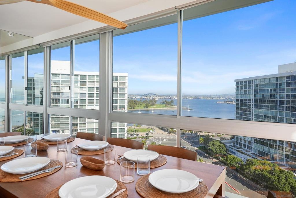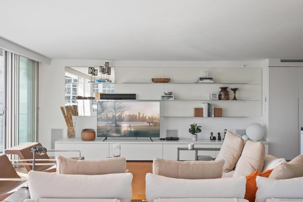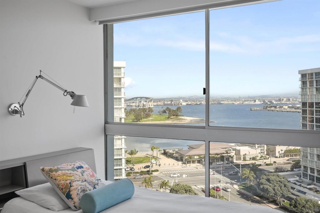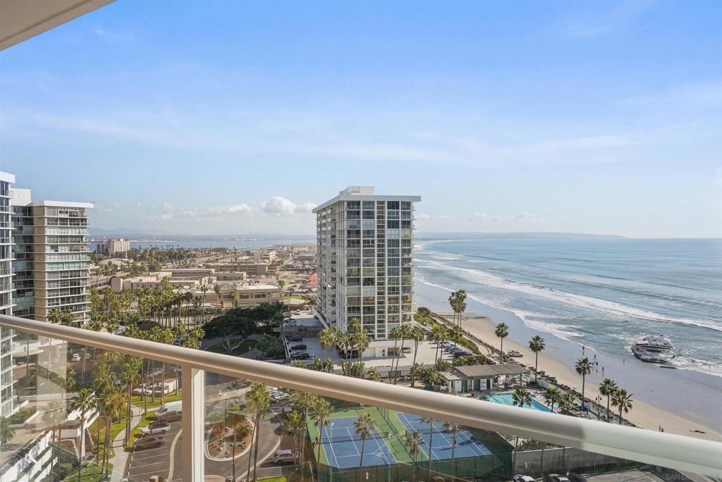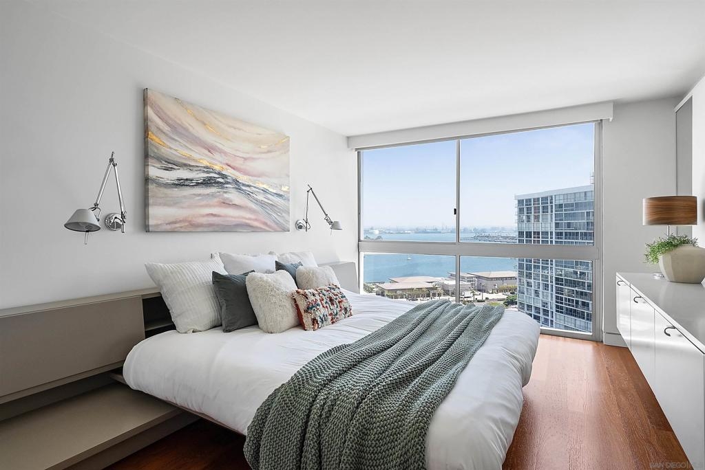 Price Improvement! Luxury living atop La Perla Tower with breathtaking views of the Pacific Ocean, Coronado Bridge, Bay, and Mountains. This premier corner unit, designed by architect Mauricio Gomez de Tuddo, offers a unique layout with a spacious master bedroom, 3 ensuite bathrooms, guest bathroom, and large laundry room. The exquisite interior features a blend of granite and hardwood flooring, a European-inspired kitchen with Boffi cabinets and top-of-the-line Gaggenau appliances. Floor-to-ceiling doors and double-paned windows create a bright and open atmosphere. Italian furniture enhances the upscale design, and two parking spaces are included. Enjoy community amenities like tennis and pickleball courts, oceanfront pools, a spa, fitness center, Beach Club, and 24/7 security.