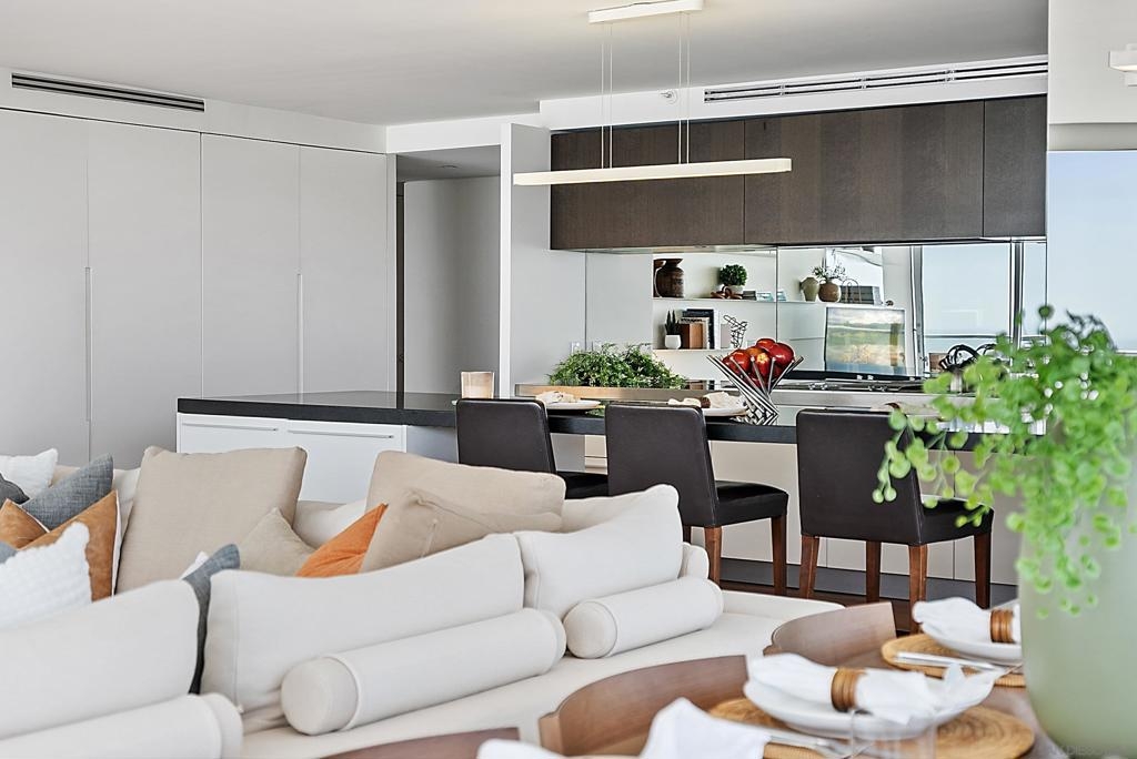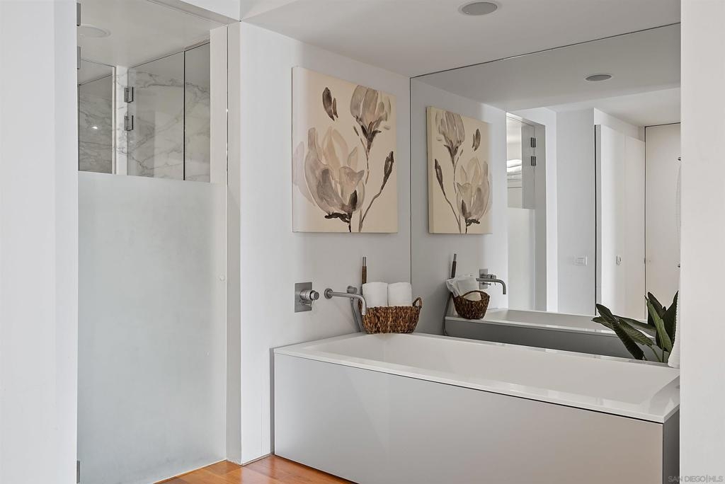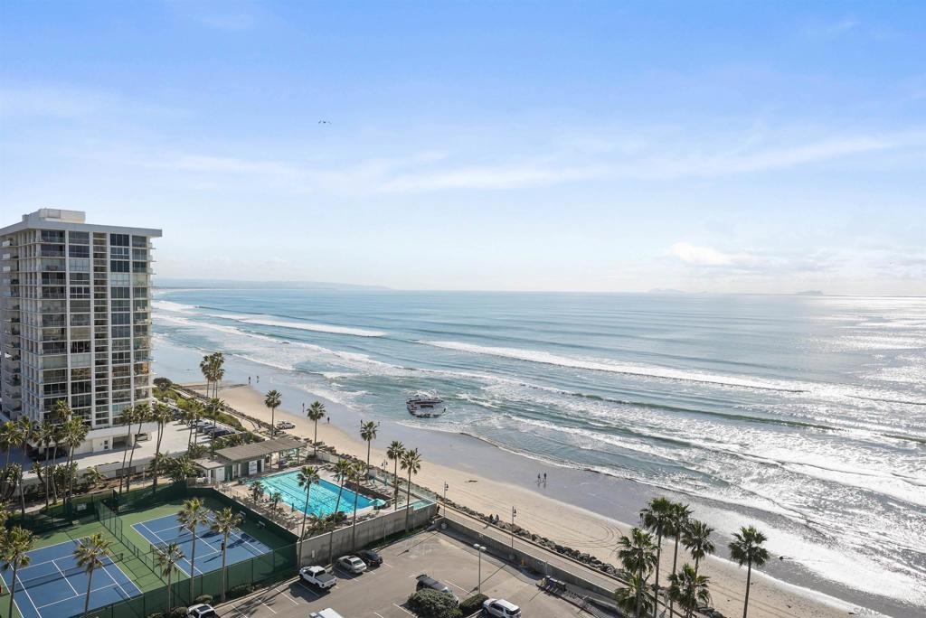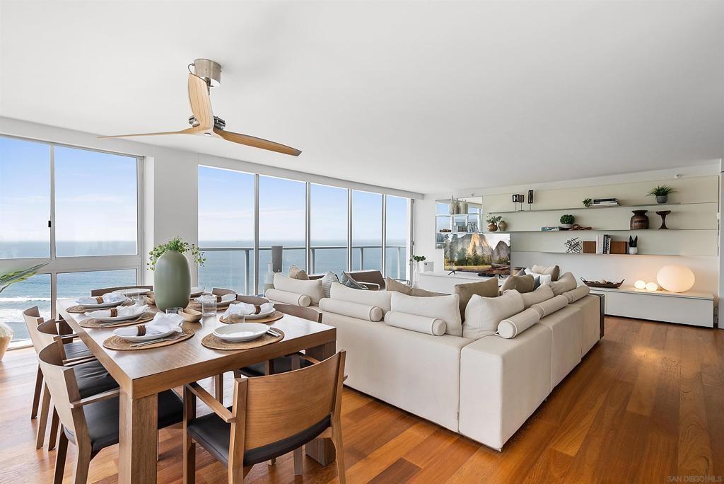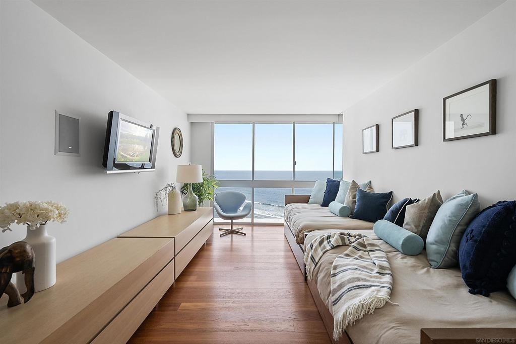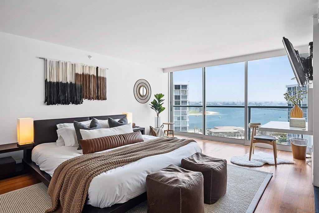 Price Improvement! Luxury living atop La Perla Tower with breathtaking views of the Pacific Ocean, Coronado Bridge, Bay, and Mountains. This premier corner unit, designed by architect Mauricio Gomez de Tuddo, offers a unique layout with a spacious master bedroom, 3 ensuite bathrooms, guest bathroom, and large laundry room. The exquisite interior features a blend of granite and hardwood flooring, a European-inspired kitchen with Boffi cabinets and top-of-the-line Gaggenau appliances. Floor-to-ceiling doors and double-paned windows create a bright and open atmosphere. Italian furniture enhances the upscale design, and two parking spaces are included. Enjoy community amenities like tennis and pickleball courts, oceanfront pools, a spa, fitness center, Beach Club, and 24/7 security.