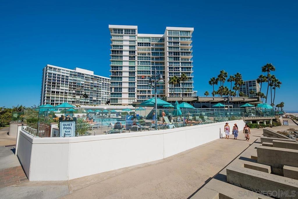 Truly spectacular, completely unobstructed oceanfront, whitewater views can be yours from this oversized 1-bedroom condo at the highly sought-after Coronado Shores, “La Perla” tower. This spacious residence features over 1,000 sq ft of living space with views to beach, ocean, and even Point Loma from the living room, kitchen, and bedroom. Top notch community amenities including swimming pools, tennis courts, beachfront clubhouse, health club, and on-site security and management. Don’t miss this exceptional opportunity for customization, priced approximately $400,000 LESS than a model-match that recently sold directly above. Located just south of the world-famous Hotel del Coronado, Coronado Shores comprises ten 15-story towers, each with incredible panoramic views of San Diego Bay, the Pacific Ocean, and Point Loma. The La Perla Tower has always stood out from the others for the true beachfront location and elegant common areas. The island community of Coronado is located across the bay from Downtown San Diego and connected by both a 10-mile-long isthmus called “Silver Strand” and the iconic Coronado Bridge. This luxurious neighborhood still retains a warm charm with a multitude of restaurants, boutiques, and high-end shops. Coronado’s beaches are regularly ranked as some of the best in the world and serve as a bastion for surfers, paddle boarders, and furry friends alike. Equipment: Dryer, Range/Oven, Washer Sewer: Sewer Connected Topography: LL Frontage: Ocean/Sand