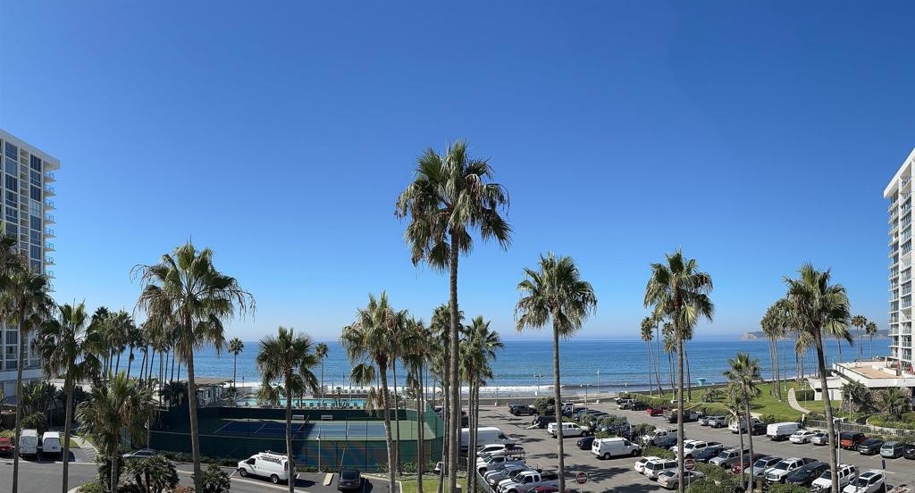 This one of a kind unit in El Encanto Tower has unobstructed, unparalleled panoramic views of Pacific Ocean, Point Loma, Glorietta Bay and San Diego Skyline. This corner offers 2 bedrooms & 2 bathrooms, providing a blank canvas for your complete remodel. Easily extend the balcony to gain more than 90 sq. ft. of living space. Opportunity awaits, unlock the potential of this beachside gem and create your dream coastal retreat. El Encanto Tower provides easy access to the beach and tennis courts.