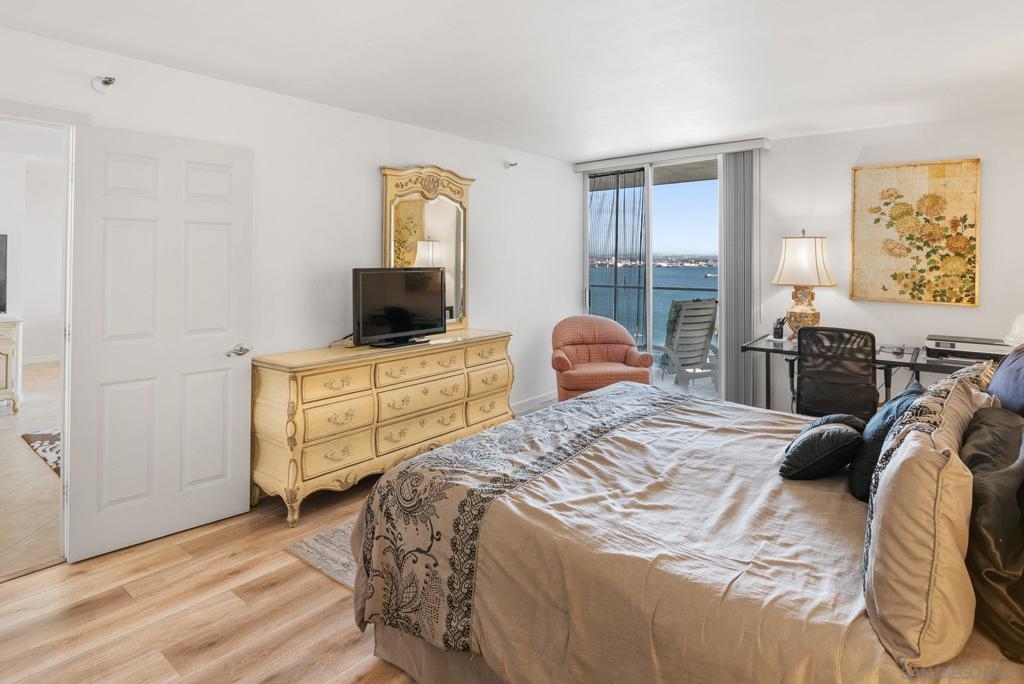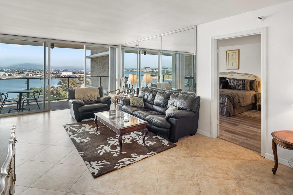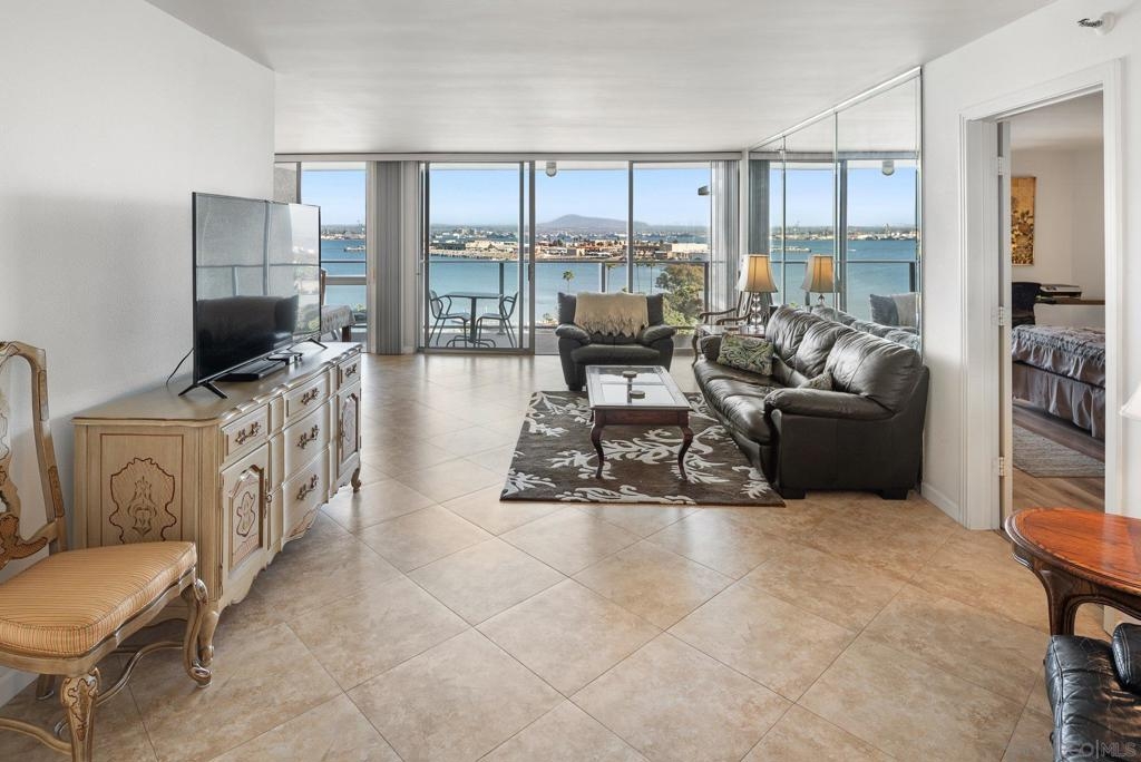 Nice, large and comfortable one bedroom, TWO bathroom with joyous views of the graceful arch of the Coronado Bridge, San Diego Bay, sparkling city lights and so much more! Sit out on your fabulous 150 square foot plus balcony with nice morning sun and no hot afternoon sun or enclose the balcony to make your interior living space larger. The spaciousness and gracious proportions of every room exceeds the space in most two bedroom condos being built today. The adjacent similarly sized unit 906 is also available to purchase and combine with unit 905 for well over 2200 sq. ft. of interior living space configured to your specifications. And talk about location...there are no better locations than Coronado Shores. Walk out of your impressive grand lobby greeted by your 24 hour doorperson and take a two minute stroll to the white sand beach, 3/4 Olympic sized pool, hot tub and two of eight championship tennis/ pickleball courts. Hit the well equipped gym or have a drink with your neighbors and friends at your private oceanfront Beach Club. A ten minute level walk along the beach brings you to the glamorously restored Hotel Del Coronado. Five more minutes, and you're in the heart of The Village, where you can choose from dozens of restaurants, attend live theater or the movies and pick up groceries without ever setting foot into a car. You deserve the super high quality of life that comes with living at prestigious Coronado Shores. Start living it today!
