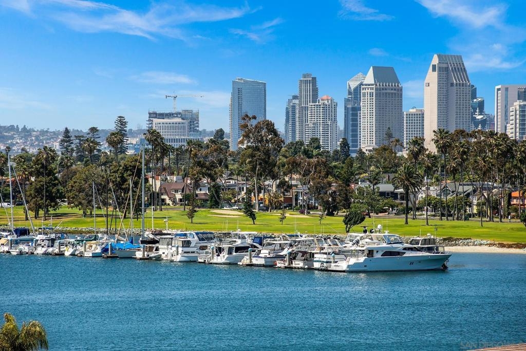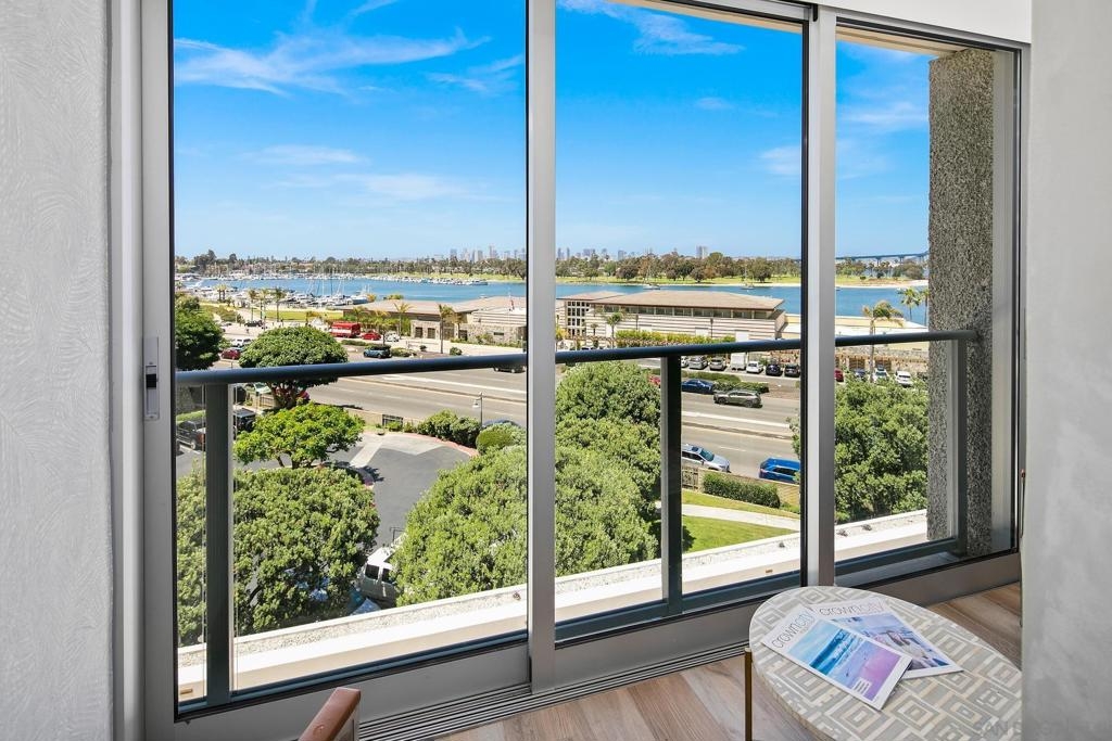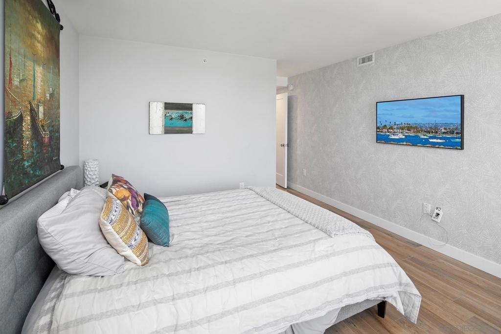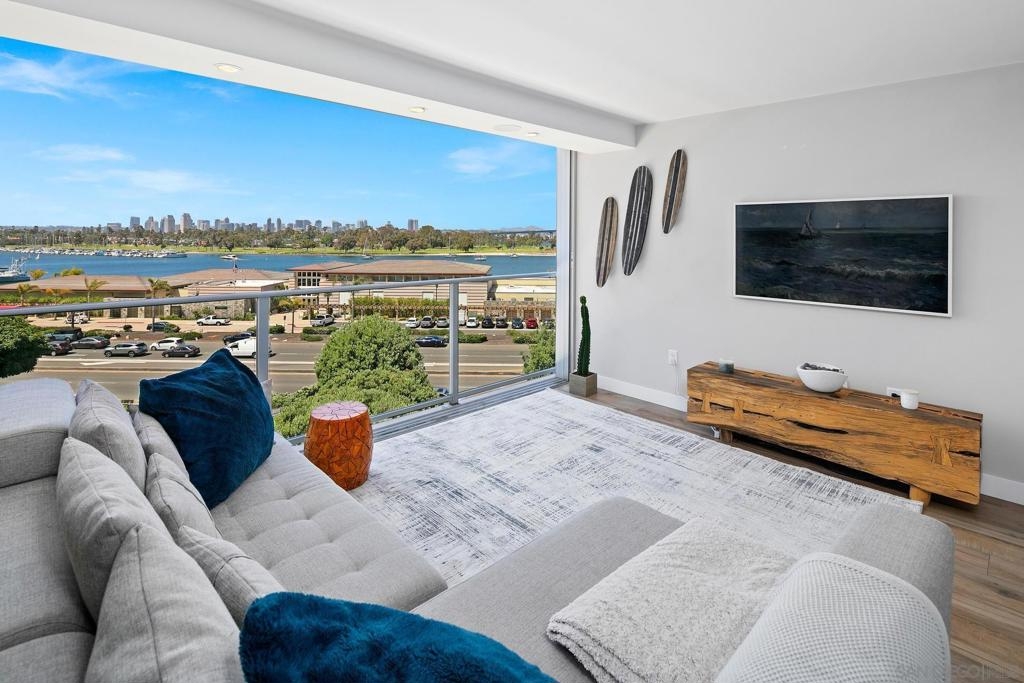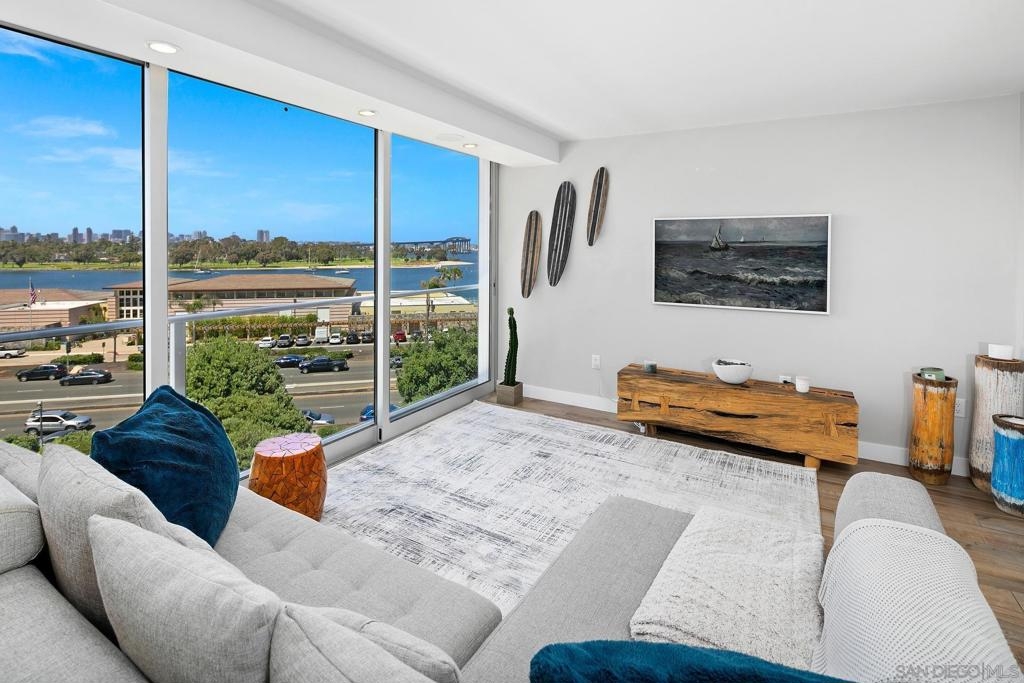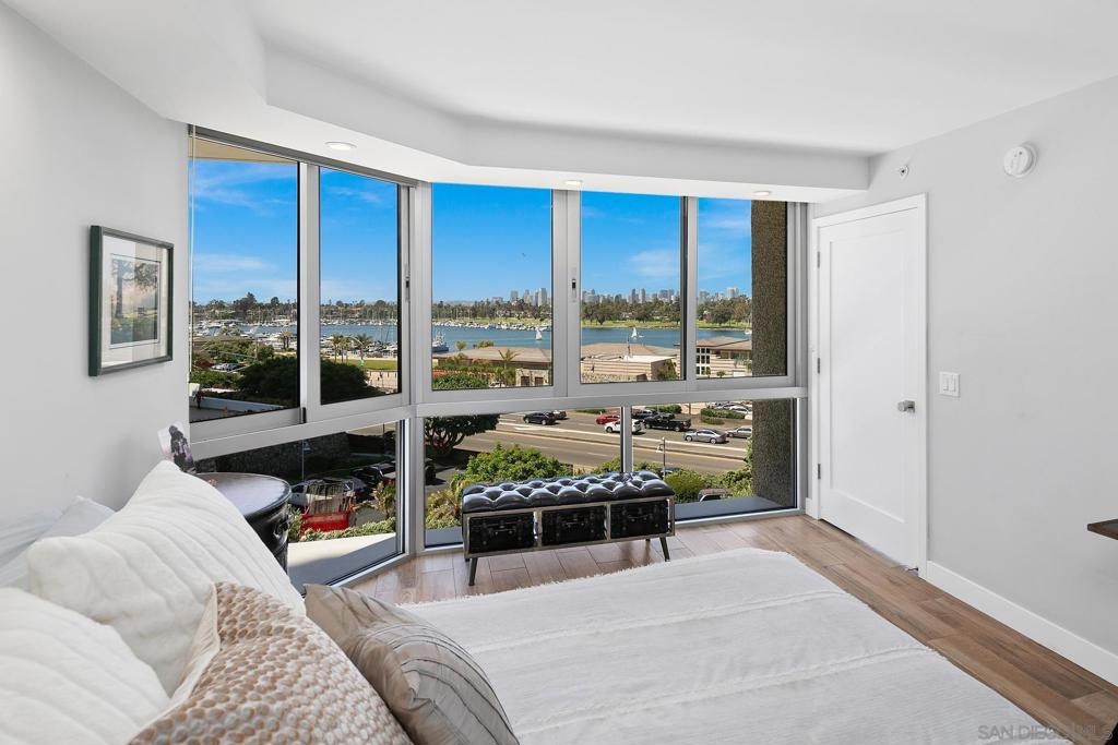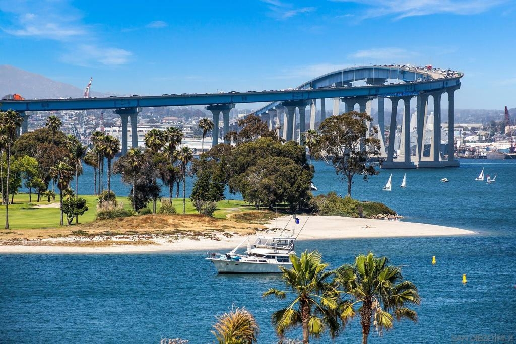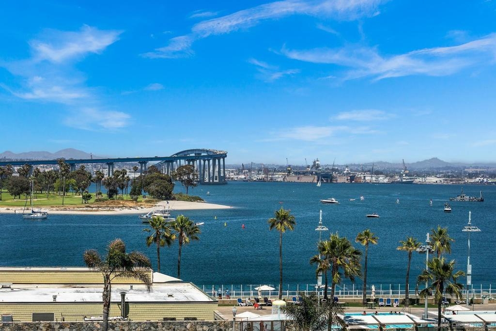 Enjoy gorgeous, unobstructed, panoramic forever views from every room in this turn key, El Mirador stunner! Take in the sights & activities of Glorietta Bay, San Diego downtown skyline, Coronado Bridge, San Diego Bay, Coronado golf course, 4th of July fireworks & an ocean peek from the master bedroom. Unit includes double pane windows/slider, beautiful tile floors throughout, Sonos sound system, brand new Samsung bespoke-line fridge & dishwasher, Samsung frame Tvs in every room, (see supplemental remarks) Nest wall system, electric privacy/blackout screens in living room and guest bedroom, custom made tamarind wood dining table w/ light edge, full massaging bed in master, CAT-5 coaxes in every room, Google fiber, dish TV, full size LG smart washer/dryer, & all of the resort-style amenities of the Coronado Shores community (pools, tennis courts, pickle ball, club houses, BBQs).