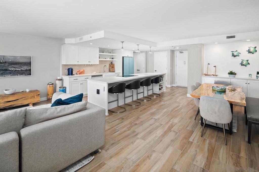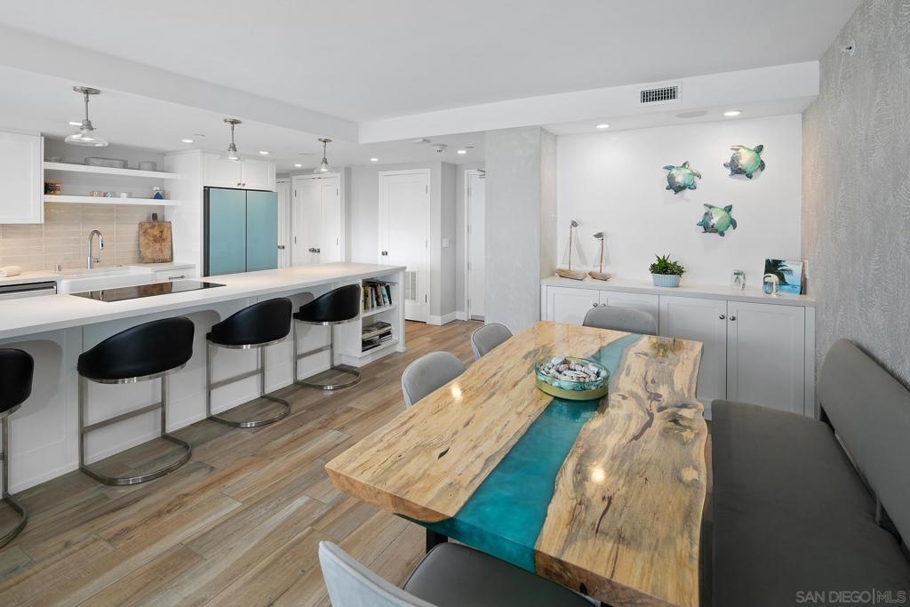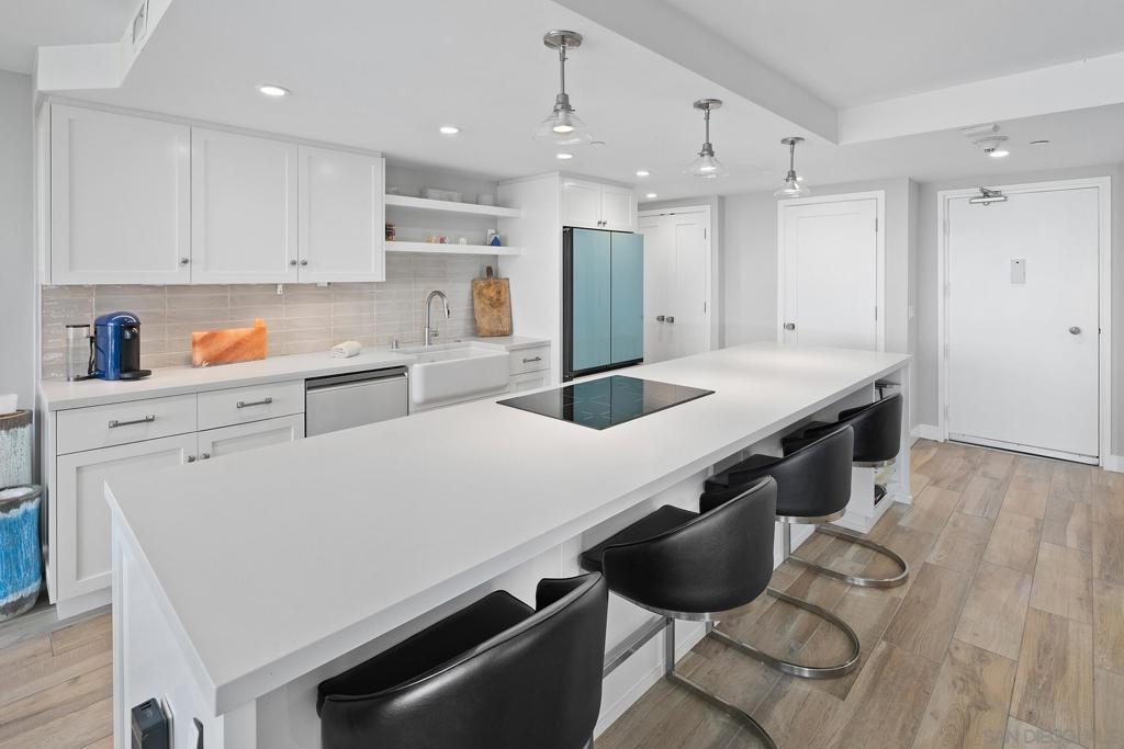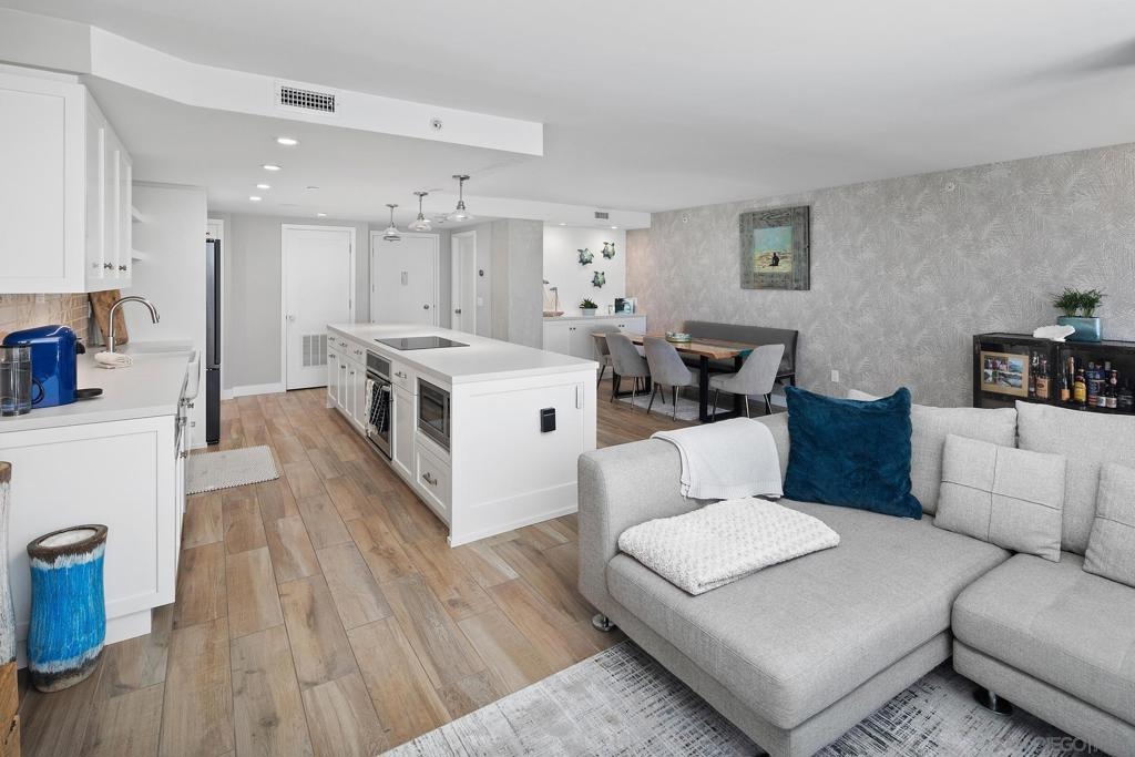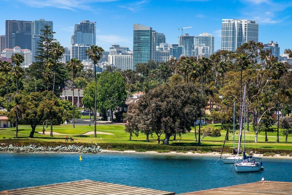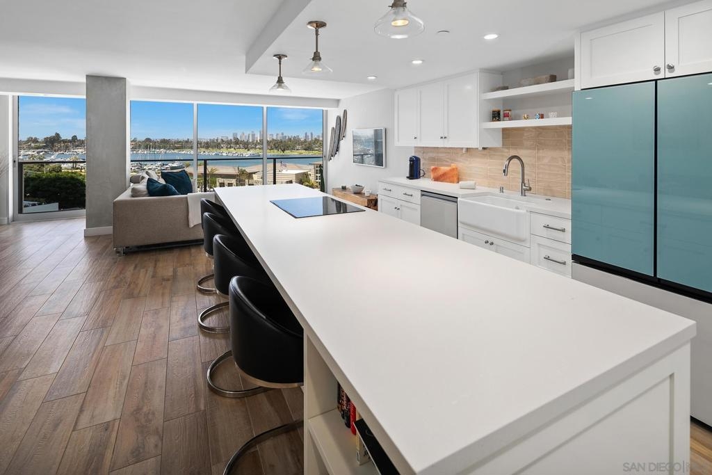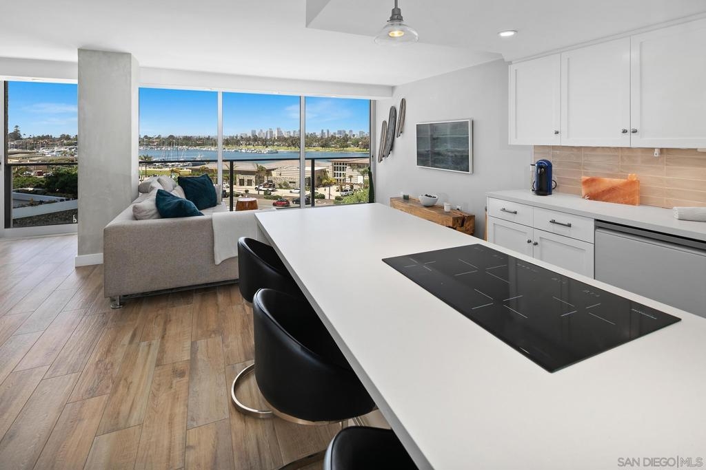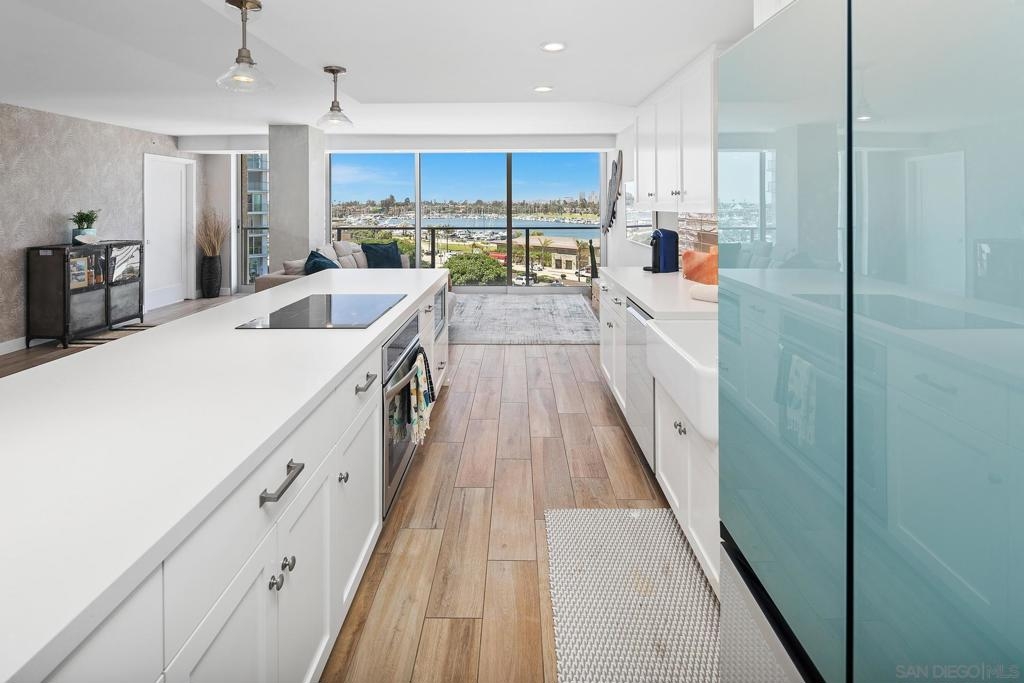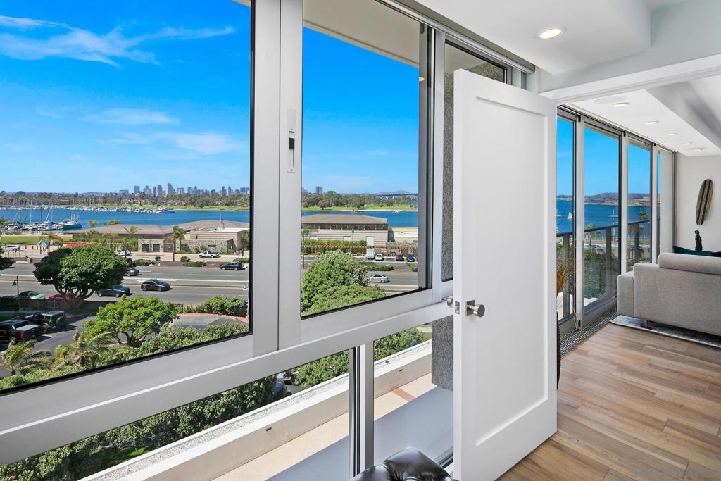 Enjoy gorgeous, unobstructed, panoramic forever views from every room in this turn key, El Mirador stunner! Take in the sights & activities of Glorietta Bay, San Diego downtown skyline, Coronado Bridge, San Diego Bay, Coronado golf course, 4th of July fireworks & an ocean peek from the master bedroom. Unit includes double pane windows/slider, beautiful tile floors throughout, Sonos sound system, brand new Samsung bespoke-line fridge & dishwasher, Samsung frame Tvs in every room, (see supplemental remarks) Nest wall system, electric privacy/blackout screens in living room and guest bedroom, custom made tamarind wood dining table w/ light edge, full massaging bed in master, CAT-5 coaxes in every room, Google fiber, dish TV, full size LG smart washer/dryer, & all of the resort-style amenities of the Coronado Shores community (pools, tennis courts, pickle ball, club houses, BBQs).