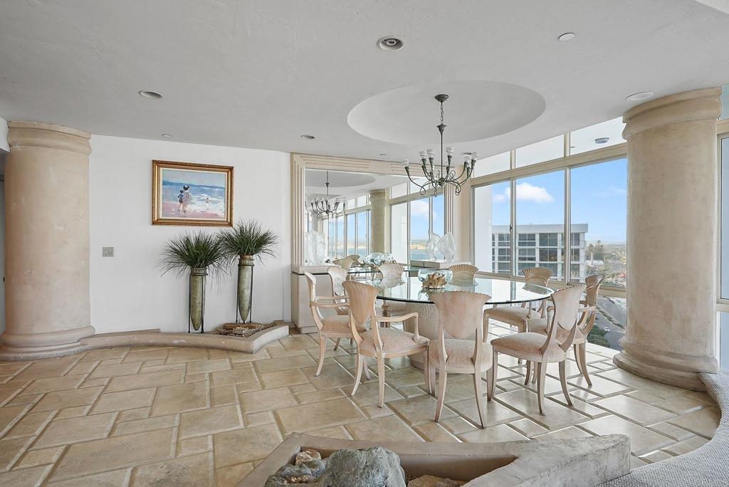 Lowest priced unit per sq.ft. at The Shores!! One of the only available PH with 10 ft ceilings at The Shores, absolutely stunning unobstructed views, this one of a kind location is one of the largest units with 3Bd+den/3Ba, approx. 3,115 sq/ft of indoor livable space and unparalleled panoramic views that encompass the picturesque Bay, the iconic San Diego skyline, and the majestic Coronado Bridge. Experience the epitome of coastal living and seize the opportunity to completely remodel your dream beach home, identical unit in 12th floor was fully remodeled to include 4Bd and 4.5Ba. This penthouse at El Mirador Tower is a rare opportunity to own a piece of paradise with unparalleled views of the bay, San Diego skyline, and Coronado Bridge. It combines the best of coastal living with luxury amenities, making it the ideal place to call home.