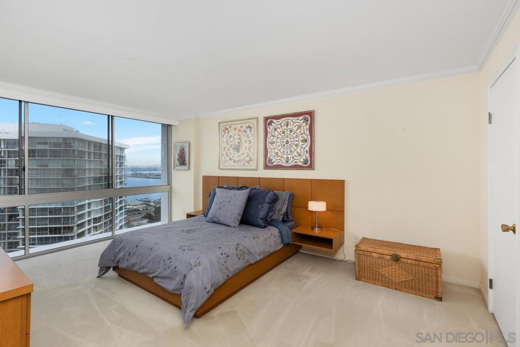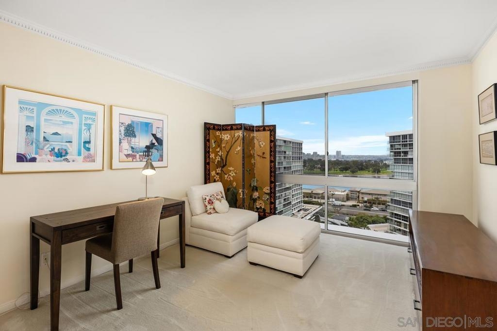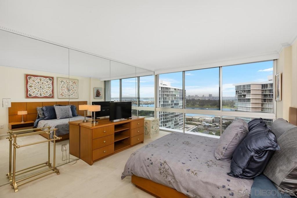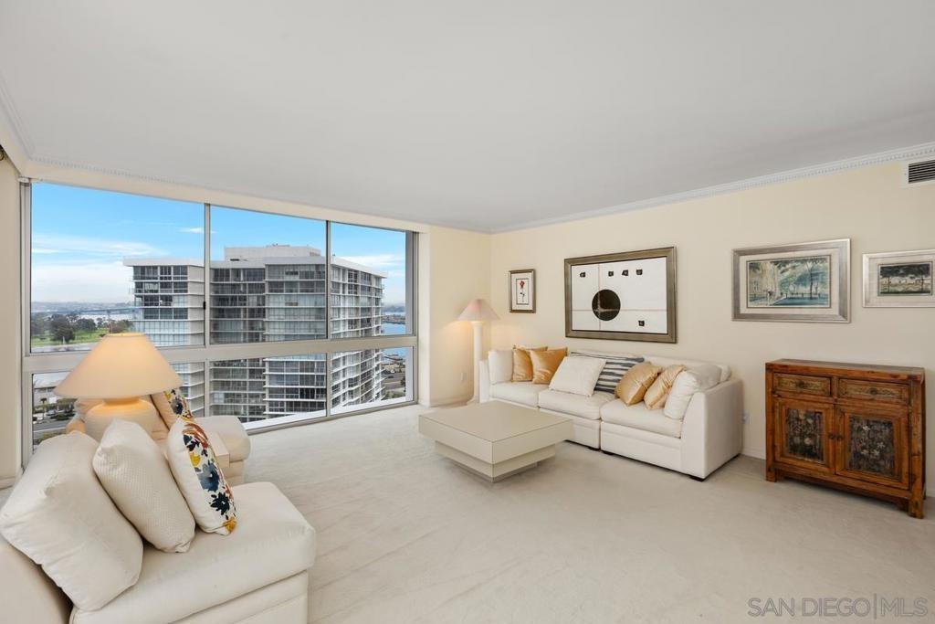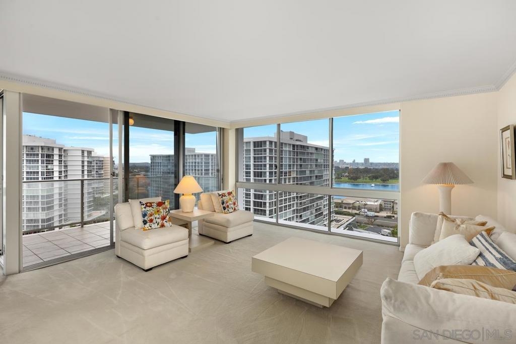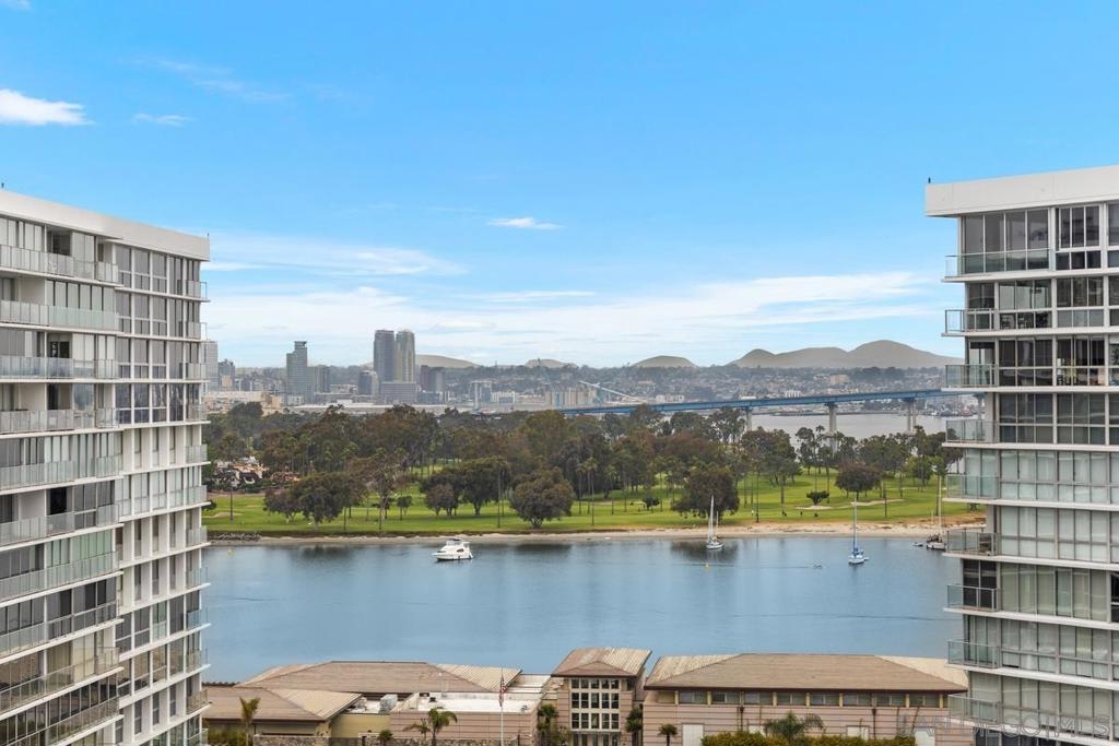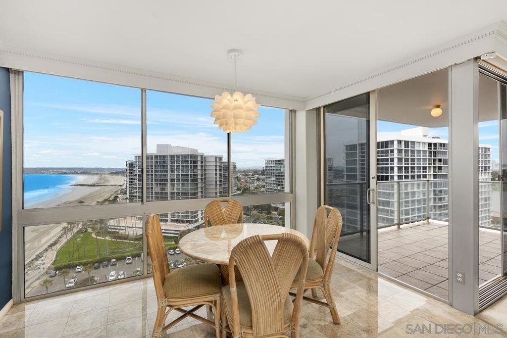 Enjoy stunning postcard views from this desirable high floor two bedroom two bath corner unit located on the 15th floor of El Camino tower. From breathtaking whitewater ocean views to panoramic bay views of the San Diego skyline, this corner unit is all about the captivating views from the Shores. This property features two parking spaces (tandem) an in unit stackable Bosch washer and dryer, and Fleetwood windows. Amenities at The Coronado Shores include 4 swimming pools, tennis courts, pickleball courts, workout facilities and more.