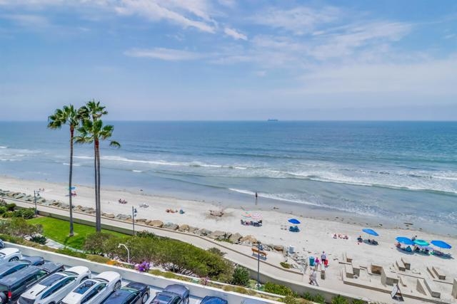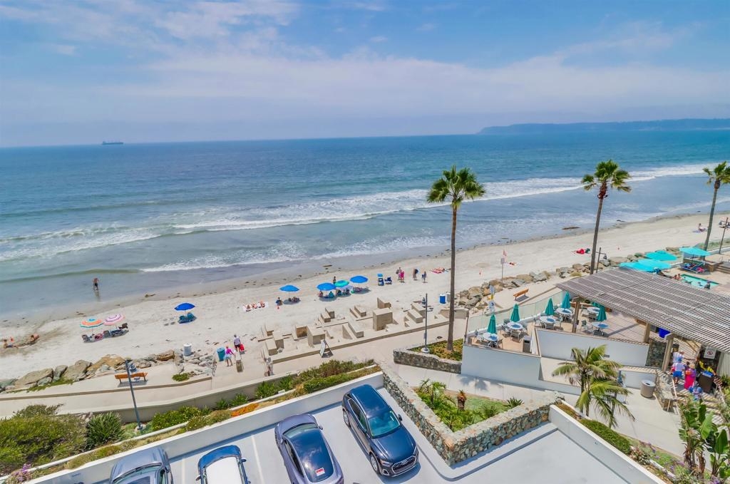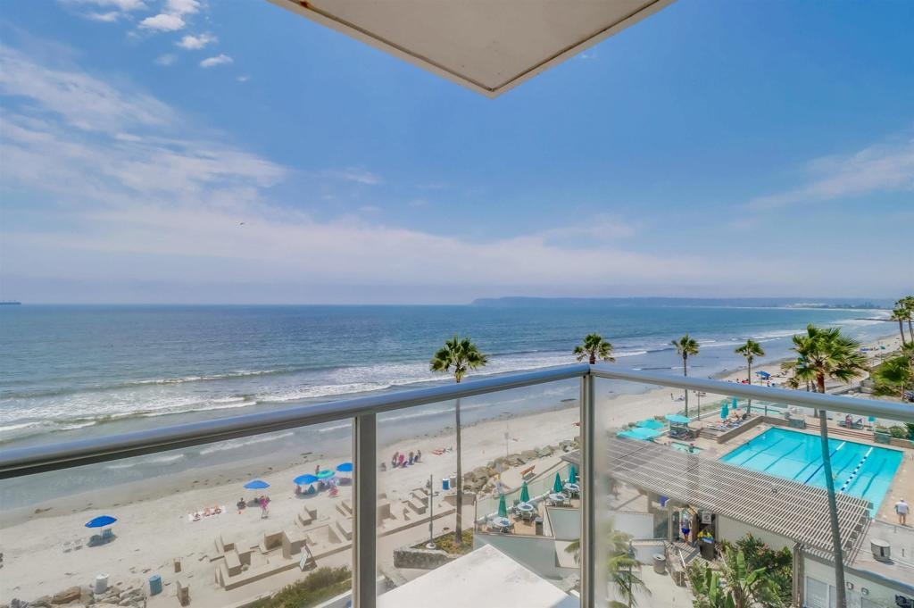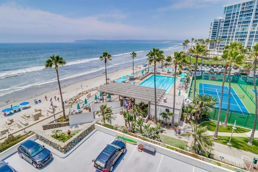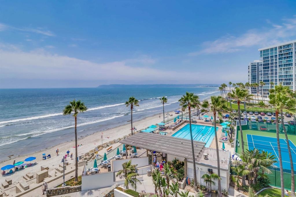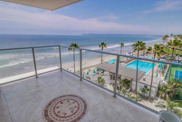 Ocean Views! Premier corner unit overlooking the beach! 2BD, 2BA, 2 Parking Spaces (Tandem) Large covered balcony with tile flooring. Views of the ocean and Point Loma. Every window captures the Pacific Ocean view! The Coronado Shores Amenities include oceanfront pools and spas, healthclub, tennis and pickleball courts, security kiosk, concierge and more. Coronado Luxury Living At The Beach!