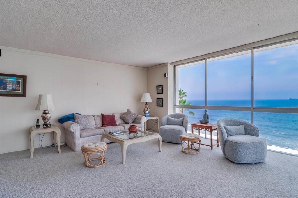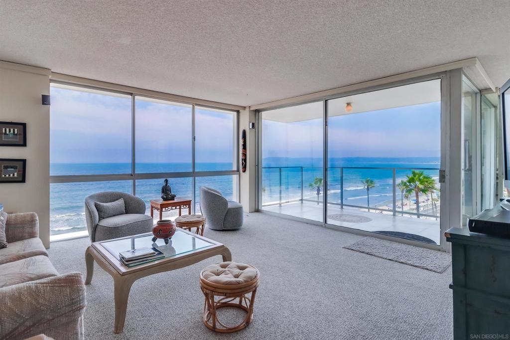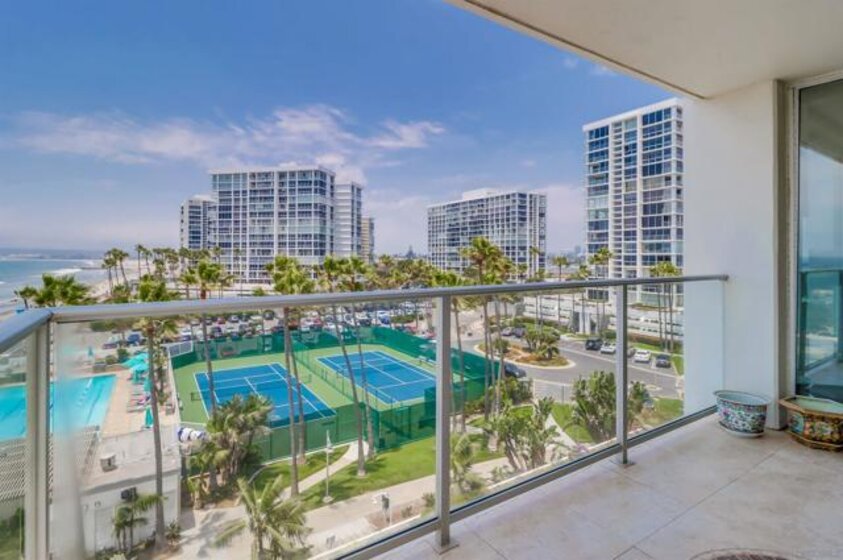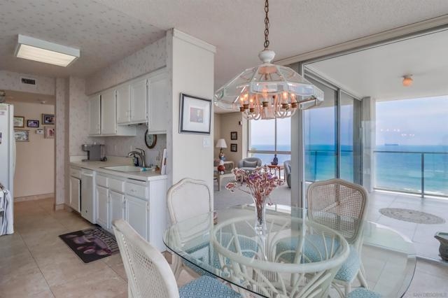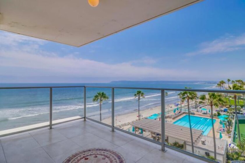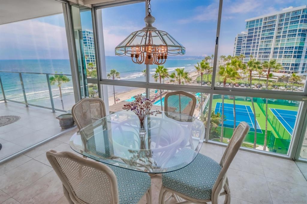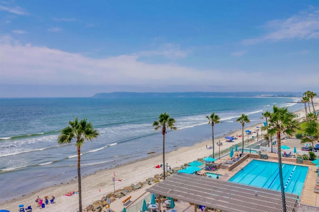Ocean Views! Premier corner unit overlooking the beach! 2BD, 2BA, 2 Parking Spaces (Tandem) Large covered balcony with tile flooring. Views of the ocean and Point Loma. Every window captures the Pacific Ocean view! The Coronado Shores Amenities include oceanfront pools and spas, healthclub, tennis and pickleball courts, security kiosk, concierge and more. Coronado Luxury Living At The Beach!