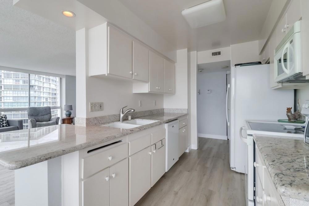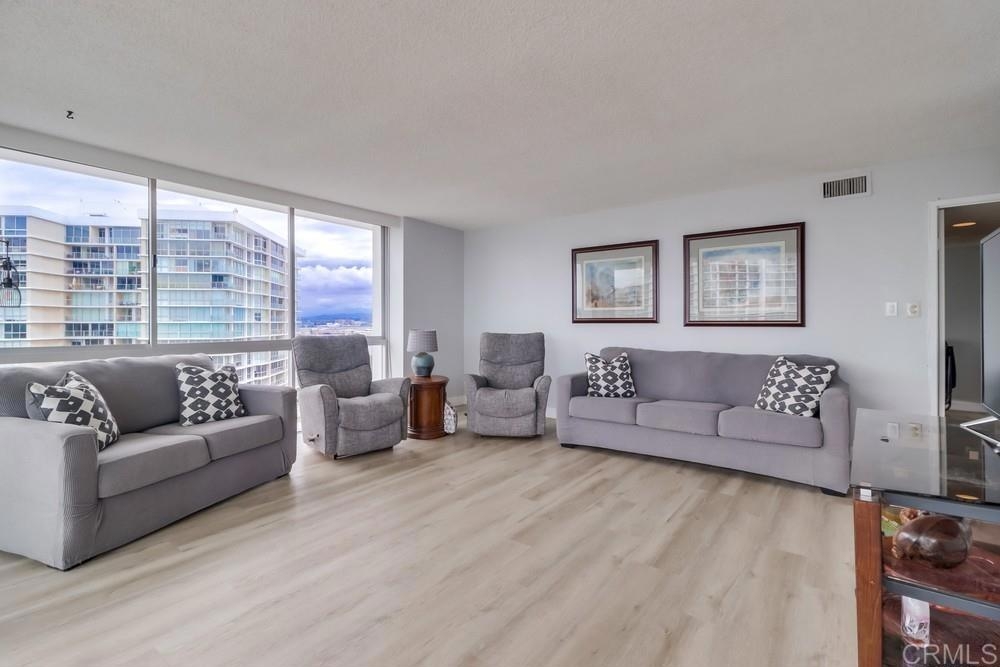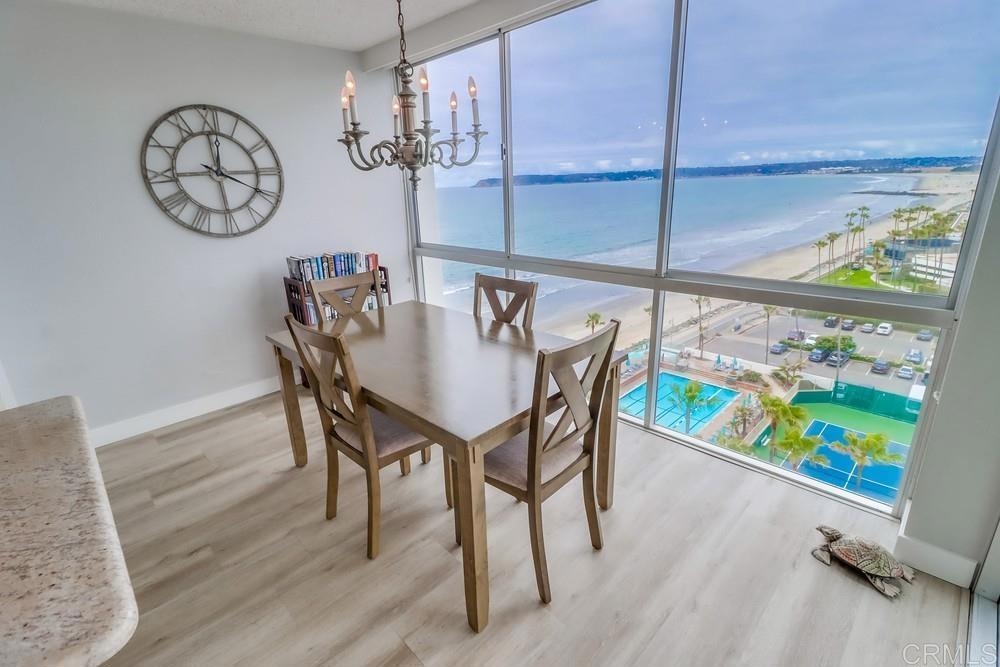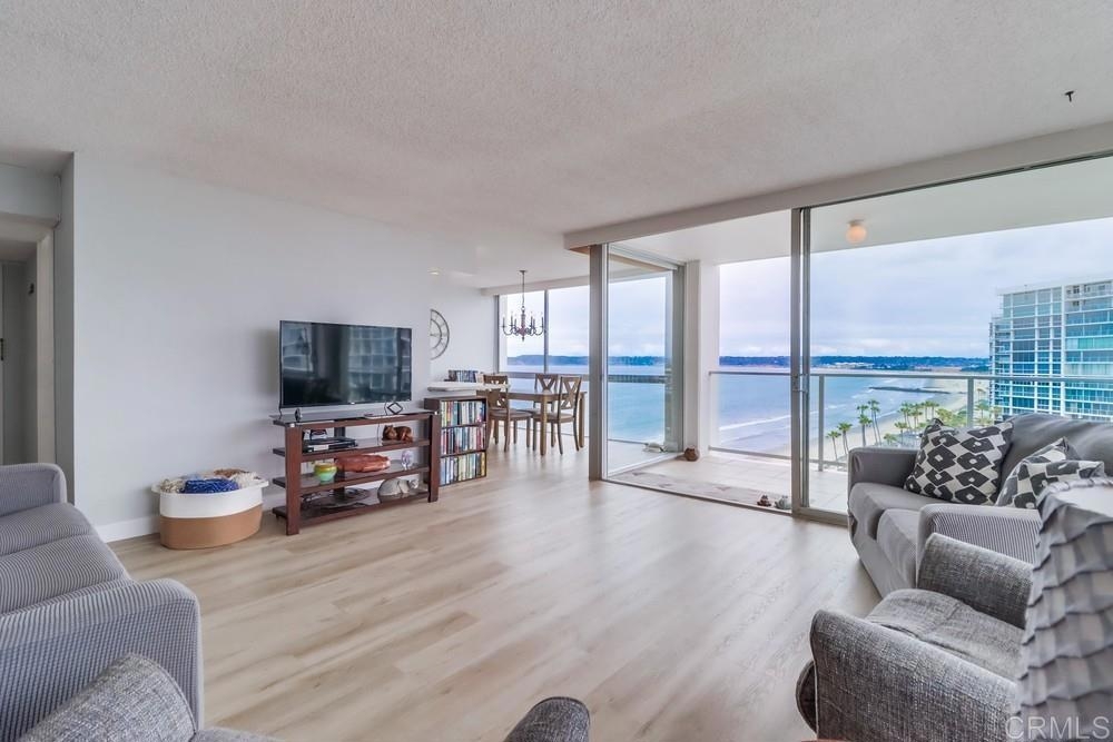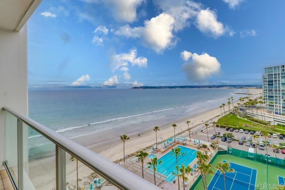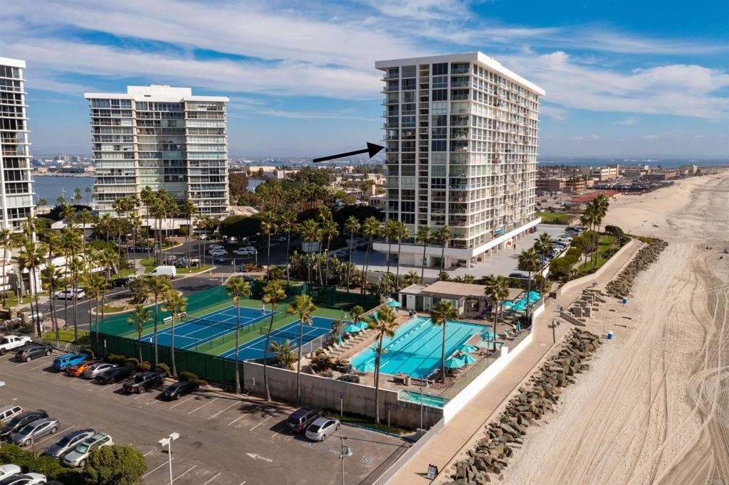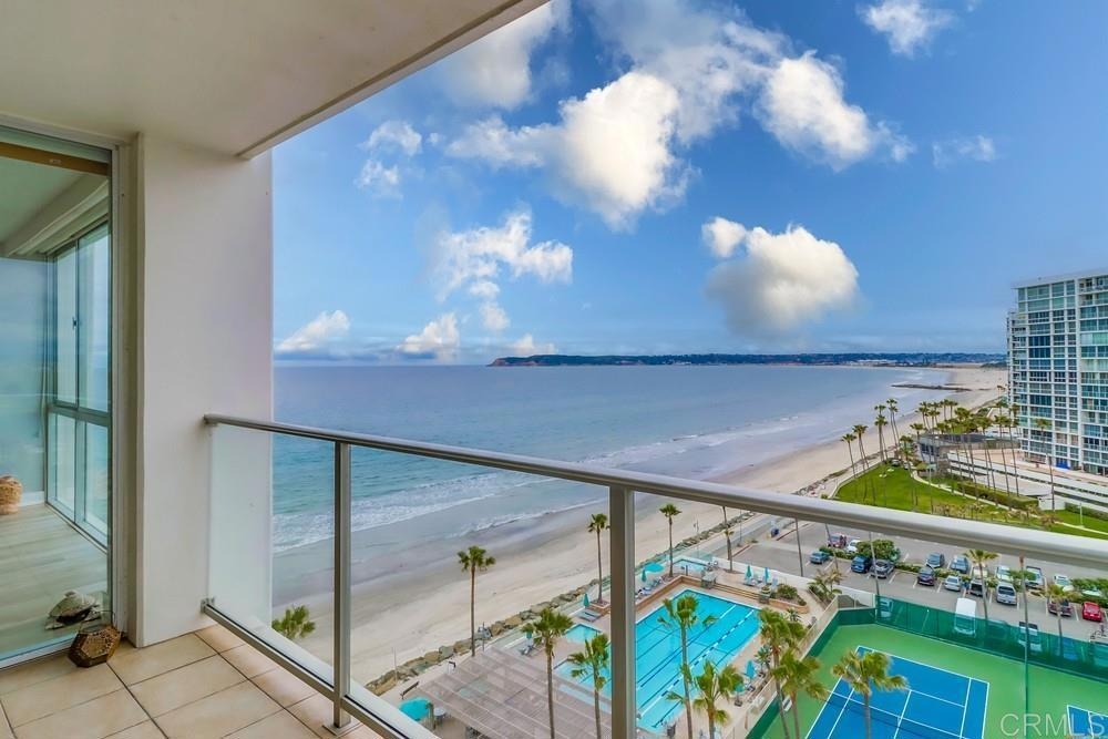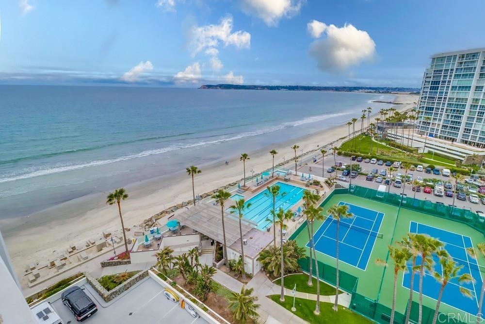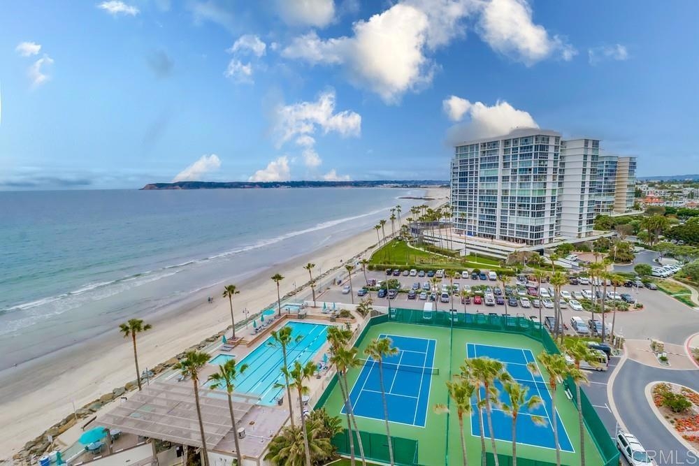 Introducing a captivating unit with breathtaking ocean and bay views. Situated in the coveted Community of Coronado Shores, this stunning residence offers an exquisite living experience. This corner unit offers unobstructed views of the ocean, and Point Loma. The open-concept layout seamlessly connects the living, dining, and kitchen areas, creating an inviting and spacious atmosphere. Bathed in an abundance of natural light, every corner of this home boasts a warm and welcoming ambiance. Imagine waking up to the gentle sound of waves crashing and being greeted by an awe-inspiring vista each morning. The spacious windows and private balcony provide the perfect vantage points to immerse yourself in the beauty of the seascape and enjoy mesmerizing sunsets. Residents of this exclusive community, enjoy access to a range of top-notch amenities, four swimming-pools, and tennis courts and can unwind in the well-appointed lounge areas, or maintain an active lifestyle in the fitness center. The building also provides 24-hour security and a dedicated parking space for your convenience. Beyond the condo's walls, the location is simply unbeatable. Nestled in a vibrant neighborhood, you'll find a myriad of dining, shopping, and entertainment options just steps away. Enjoy a leisurely stroll along the Coronado beach, explore local attractions, or indulge in the lively atmosphere of the surrounding area. This unit is a true gem that encapsulates the essence of coastal living. With its remarkable ocean views, and prime location, it presents an extraordinary opportunity for anyone seeking a sophisticated and serene lifestyle. Don't miss your chance to own this corner unit that could be adjoined to unit next door which is also for sale.