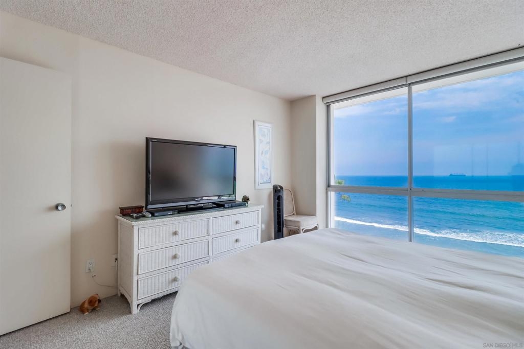 Ocean Views! Premier corner unit overlooking the beach! 2BD, 2BA, 2 Parking Spaces (Tandem) Large covered balcony with tile flooring. Views of the ocean and Point Loma. Every window captures the Pacific Ocean view! The Coronado Shores Amenities include oceanfront pools and spas, healthclub, tennis and pickleball courts, security kiosk, concierge and more. Coronado Luxury Living At The Beach!