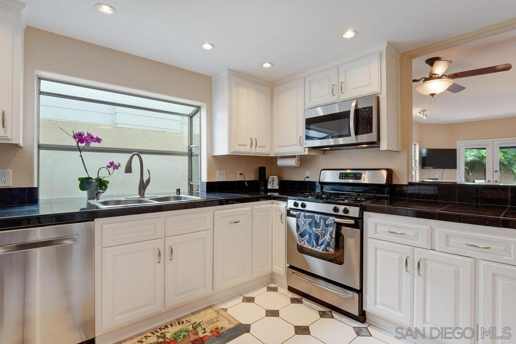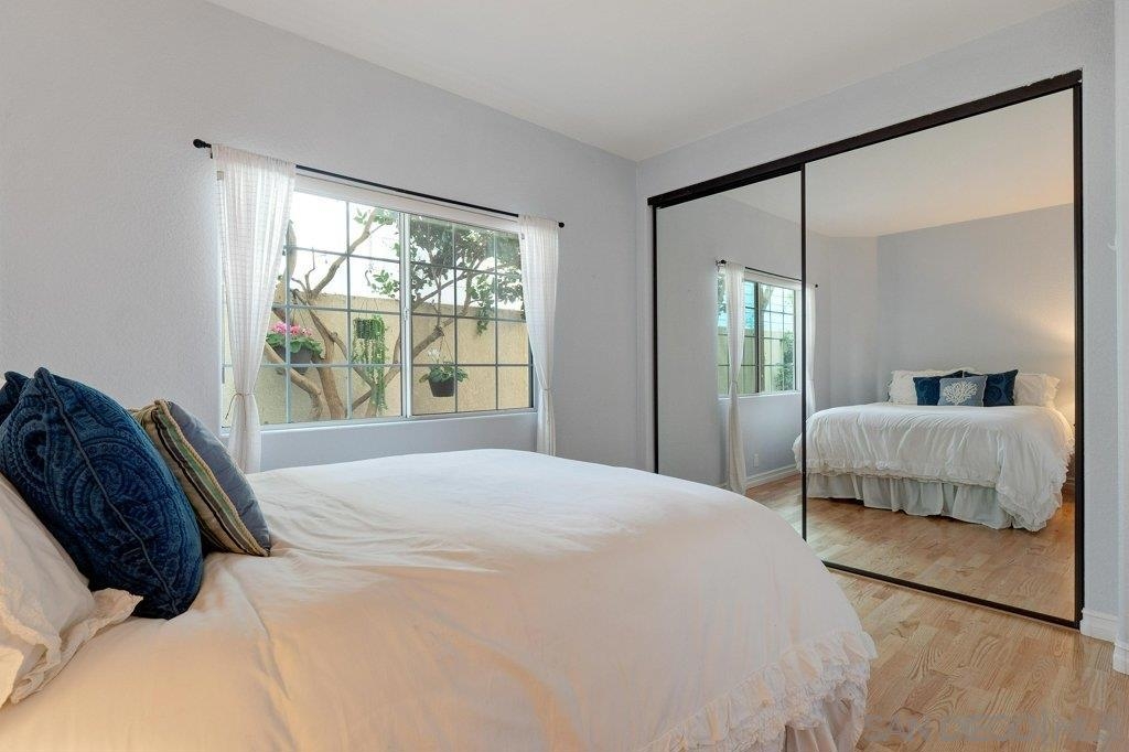 Charming and rarely available condo nestled in Coronado Village! Natural light & an open layout compliment this nicely updated & move-in ready ground floor home. Inviting living room features a beautiful fireplace, double French doors opening to private patio & dining area. The kitchen overlooks living room with newer stainless-steel appliances, cabinets, & plenty of storage. Master bedroom w/ two closets, updated bath, & access to private yard. Wood floors, indoor laundry room, & 1 car garage! See supp. Updates include: Water Heater (2015); Dishwasher and Microwave (2019); Kitchen Cabinets - new fronts/doors and drawers (2019); Air Conditioning in Master bedroom (2018); Screen Doors (roll up) on dining room and master bedroom double doors (2015); Mfg wood floors in both bedrooms (2019); Vanity in Master bathroom (2019); Screen Doors (roll up) on dining room and master bedroom double doors (2015); Blinds in Living Room front windows (2020); New lights in hallway (2020); Remote control fireplace starter (2015); Water osmosis system in kitchen. Other Fees: 0 Sewer: Sewer Connected Topography: LL