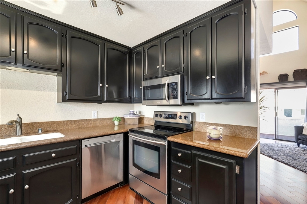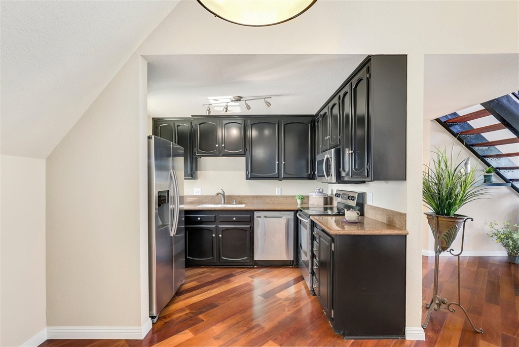 AWESOME PRICE!!! Located in Island Village you are in an ideal Coronado location with the best dining, shopping, & beach at your fingertips! Split level with two master suites on separate floors, both very spacious. Light-filled, open floorplan with enlarged windows and vaulted ceilings! Beautiful hardwood floors throughout & newer paint. Kitchen is updated with Stainless Steel appliances, refinished cabinets, & granite counters. You will love the enlarged patio to enjoy our SD weather.. In unit full size stackable laundry for convenience. Garage parking with 1 assigned spot.. Neighborhoods: Coronado Village Equipment: Dryer, Washer Other Fees: 0 Sewer: Sewer Connected Topography: LL