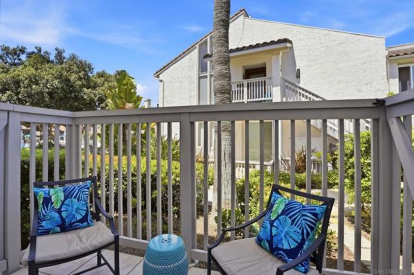 PREMIER END UNIT IN KINGSTON VILLAGE! Experience coastal living at its finest in this stunning 2- bedroom, 2 bath condo in Kingston Village offering approximately 1600 square feet of light-filled, modern space. Perfectly positioned as a coveted end unit, the home is bathed in natural light, creating an airy open ambiance throughout. Step inside to discover spacious living areas designed for both relaxing and entertaining complimented by three private patios- ideal for morning coffee, sunset unwinding, or hosting guests in the ocean-kissed breeze. The thoughtfully designed layout includes two large bedrooms and bathrooms, delivering both comfort and privacy. Expanded front water patio. Patios on three sides. Floor to ceiling windows. Garage with sink, extra storage loft and door entry into unit. Marble entry way and gas fireplace with mini wet bar. Expanded his and her closets in primary bedroom. Custom stain glass front door of the Coronado Bridge. Boating enthusiasts will love the 32' private dock, offering seamless access to the water and the ultimate southern California lifestyle. Beyond your front door, enjoy the active and vibrant community. A short walk to the beach, dog park, tennis and pickleball courts, or grab a bite nearby at the beloved Calypso Cafe or the Coronado Cays Yacht Club. This is a rare opportunity to own a first floor end unit waterfront condo in one of Coronado's most sought after communities- where every day feels like a vacation. Your dream home awaits!