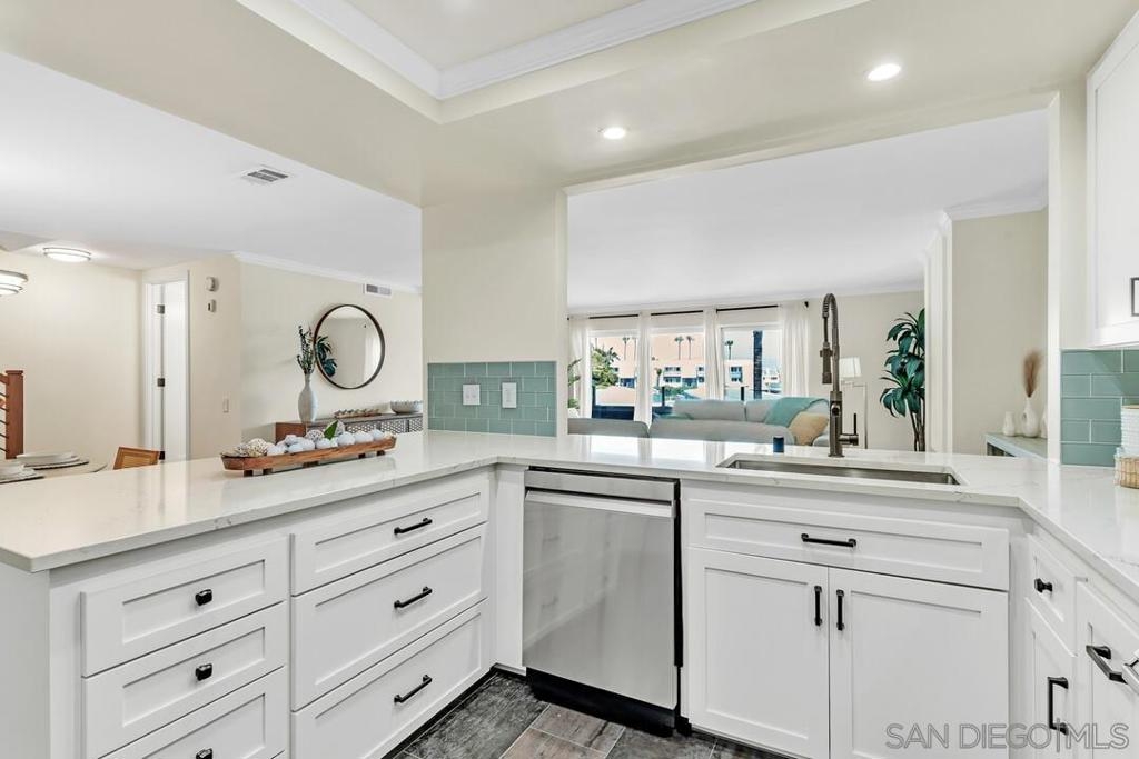 Wake up to lovely views of the Pacific Ocean, San Diego Bay, and city lights from the primary bedroom in this beautifully remodeled Coronado Cays townhome. Located in the gated Montego Village community, this 2BR/2.5BA home features an open-concept kitchen with custom cabinetry, quartz countertops, new appliances, and bamboo flooring throughout. Enjoy a cozy fireplace, crown molding, and two private walk-out decks. All bathrooms have been tastefully updated with modern tile, vanities, and finishes. Detached 2-car garage. The gated community of Montego boasts a private, lovely clubhouse and pool. Coronado Cays offers resort-style amenities including pickleball and tennis courts, beaches, parks, and scenic waterfront walkways. Coastal living at its finest!