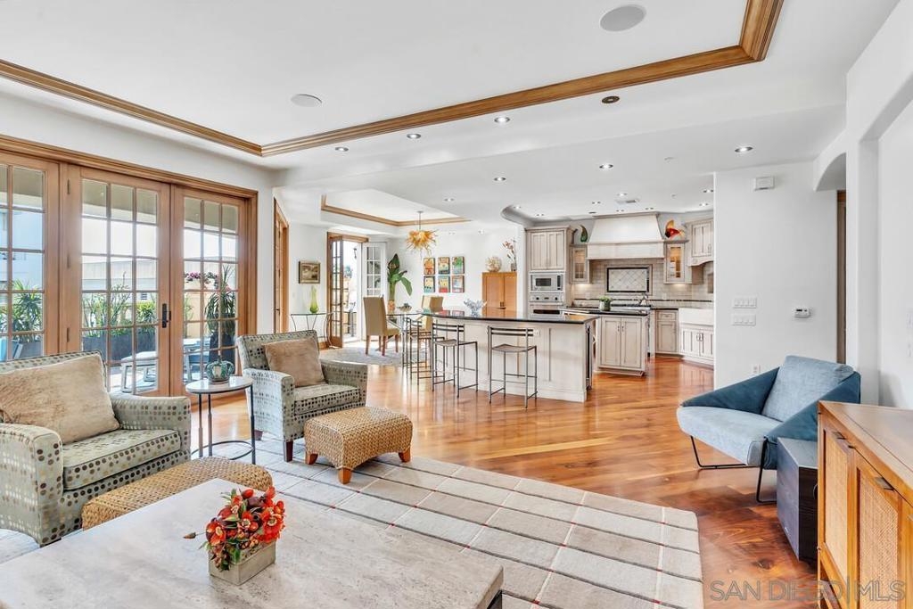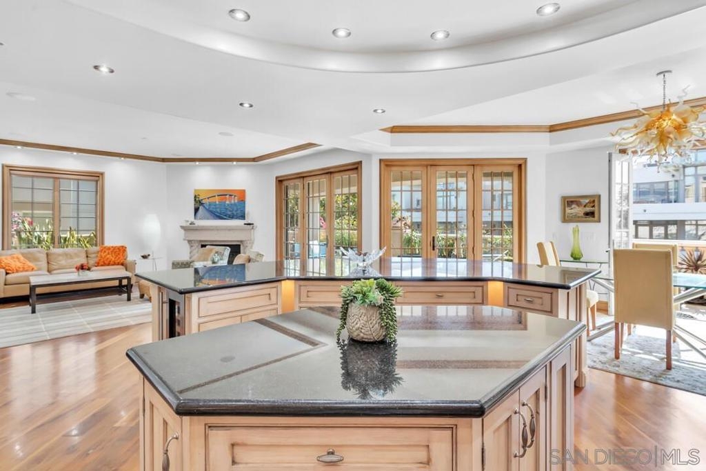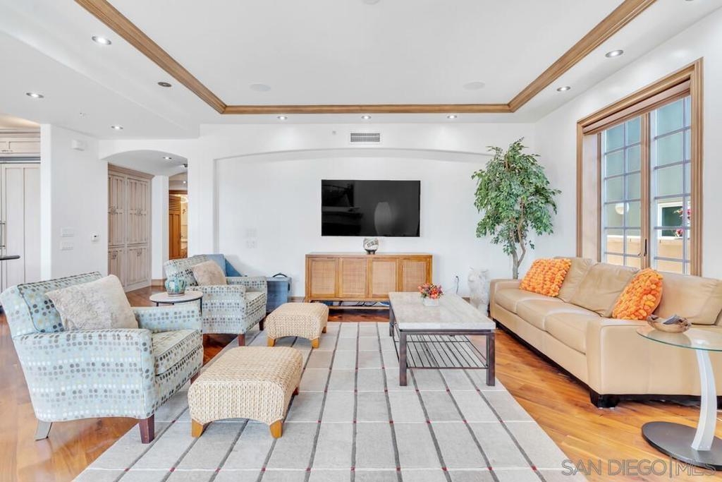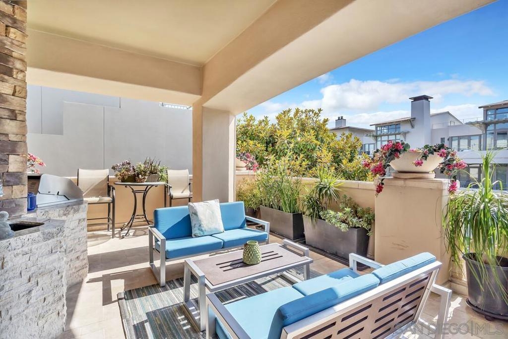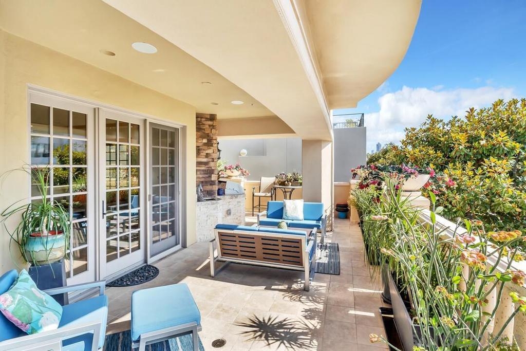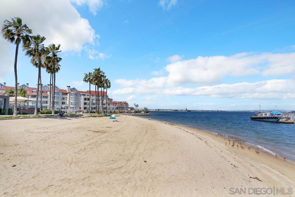 Welcome to resort-style living in this luxurious single-level condo, nestled in the prestigious Regatta Bay and just steps away from Coronado Bay, the Ferry Landing, and a variety of shops and restaurants. This bright and airy 2-bedroom, 2-bathroom home is located on the front corner of the building and enjoys extra windows and abundant sunshine. The gourmet kitchen is a chef's dream, featuring high-end Viking appliances, a large center island that overlooks both the living and dining areas. You'll be impressed with the stunning hickory hardwood flooring, elegant stone and tile work, custom-built cabinets with exceptional craftsmanship and attention to detail. Perfect for entertaining, the open floor plan extends seamlessly to the 795 sq. ft. patio, which includes upgraded travertine flooring and a wraparound terrace with a built-in BBQ bar and sink.The spacious master bedroom offers balcony access and a spa-like bathroom with a large walk-in shower and a Jacuzzi tub. The guest room is also generously sized, featuring a walk-in closet and terrace access. Additional highlights include a separate laundry room, two assigned underground parking spaces, bike rack access, and a storage closet. Experience the perfect blend of luxury and coastal charm in your new home!
