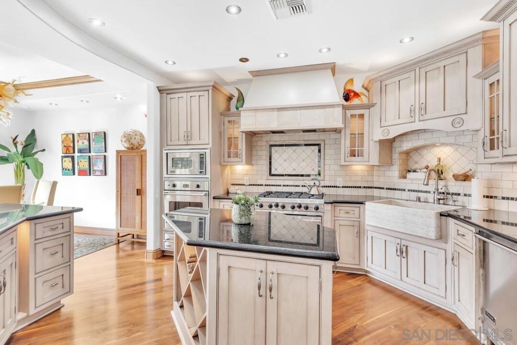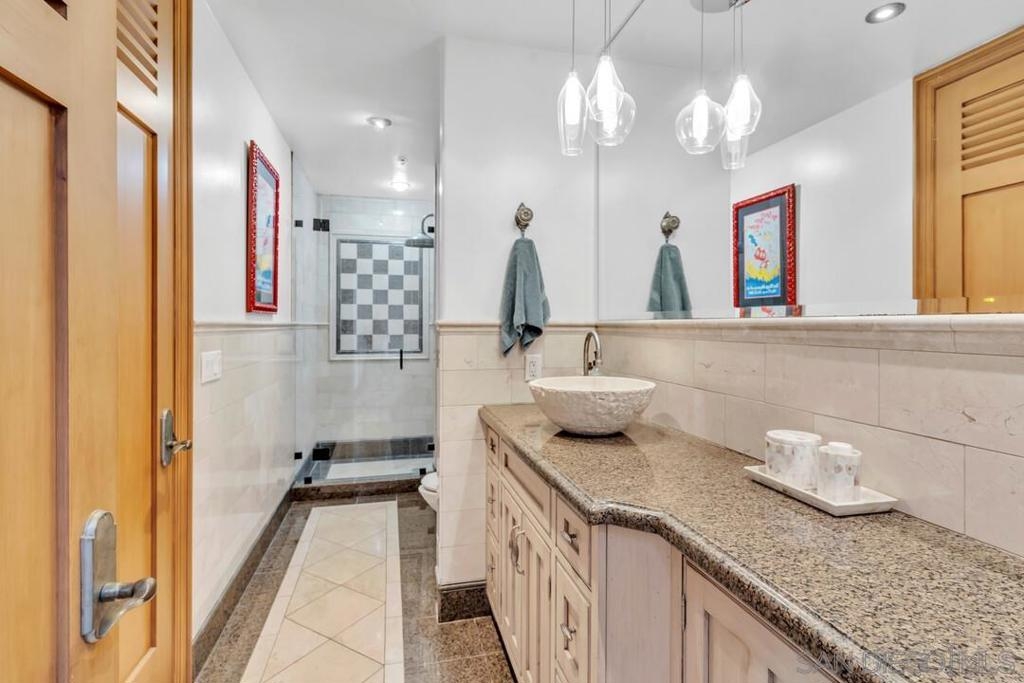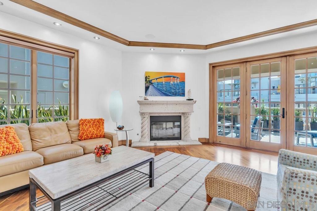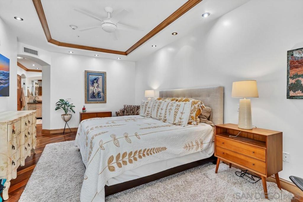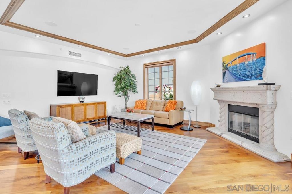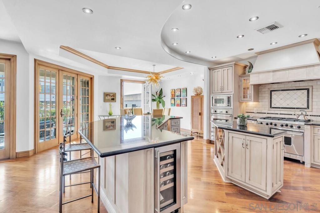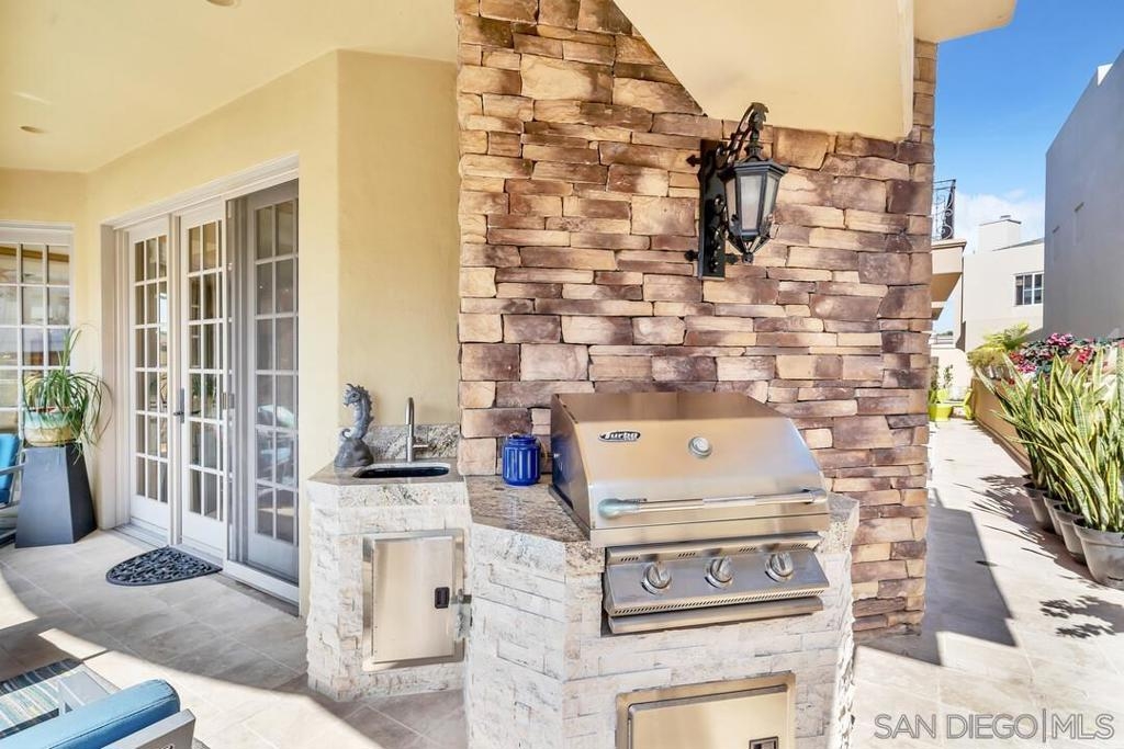 Welcome to resort-style living in this luxurious single-level condo, nestled in the prestigious Regatta Bay and just steps away from Coronado Bay, the Ferry Landing, and a variety of shops and restaurants. This bright and airy 2-bedroom, 2-bathroom home is located on the front corner of the building and enjoys extra windows and abundant sunshine. The gourmet kitchen is a chef's dream, featuring high-end Viking appliances, a large center island that overlooks both the living and dining areas. You'll be impressed with the stunning hickory hardwood flooring, elegant stone and tile work, custom-built cabinets with exceptional craftsmanship and attention to detail. Perfect for entertaining, the open floor plan extends seamlessly to the 795 sq. ft. patio, which includes upgraded travertine flooring and a wraparound terrace with a built-in BBQ bar and sink.The spacious master bedroom offers balcony access and a spa-like bathroom with a large walk-in shower and a Jacuzzi tub. The guest room is also generously sized, featuring a walk-in closet and terrace access. Additional highlights include a separate laundry room, two assigned underground parking spaces, bike rack access, and a storage closet. Experience the perfect blend of luxury and coastal charm in your new home!