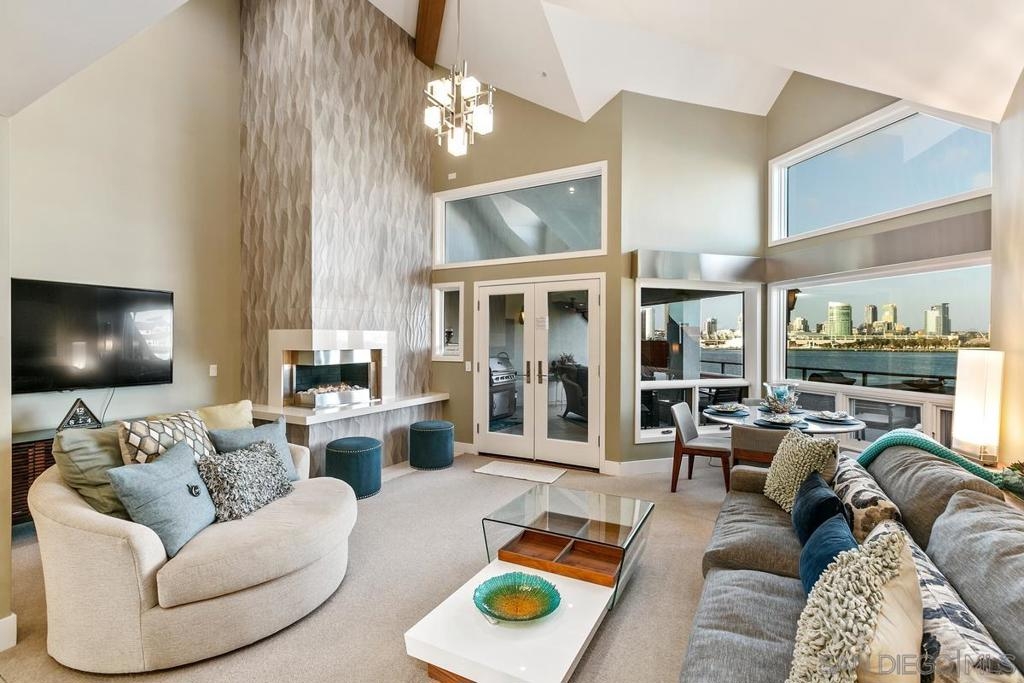 Rare opportunity to make this stunning PENTHOUSE at The Landing your own. Offered furnished & equipped, this pristine seaside retreat exemplifies the idyllic Coronado indoor-outdoor lifestyle w 2 beds/ 2.5 baths, plus LOFT an entertaining patio overlooking the San Diego harbor, downtown skyline & Coronado bridge. The moment you open the door you are mesmerized w dynamic views & coastal elegance. Every detail was captured, no expense spared- exquisite chef's kitchen w quartz, self-closing cabinets w lighting, subzero, wolf appliances, wine refrigerator/drawers, high ceilings, natural light, designer furniture. Primary Br w cozy fireplace, en-suite spa shower & soaking tub, walk in closet. Begin your day w coffee on the patio & unwind by the firepit w magical sunsets. A rare opportunity to own a coastal Penthouse at the Ferry Landing. This luxurious seaside retreat exemplifies the idyllic Coronado indoor-outdoor lifestyle with 2 beds and 2.5 baths, plus LOFT an outdoor kitchen overlooking the San Diego marina, downtown skyline and Coronado bridge. The moment you open the door, you are allured by the magnificent views yet surrounded by a serene luxurious oasis. Every detail was captured, and no expense spared- exquisite chef's kitchen with quartz entertaining island, self-closing cabinets with under cabinet lighting, chick backsplash, subzero, wolf appliances, wine refrigerator and drawers. Primary bedroom equipped with cozy fireplace en-suite bath with dual sinks, spa like shower and soaking tub with jet, walk in closets. That’s not all the bonus loft has walk-in storage, skylight and even a view. Begin your day sipping coffee on the patio and unwind by the firepit with a glass of wine for magical sunsets. Offered furnished and equipped. Just bring a suitcase & move in! Complex Features: ,,,, Equipment: Garage Door Opener, Range/Oven Sewer: Sewer Connected