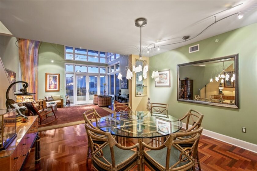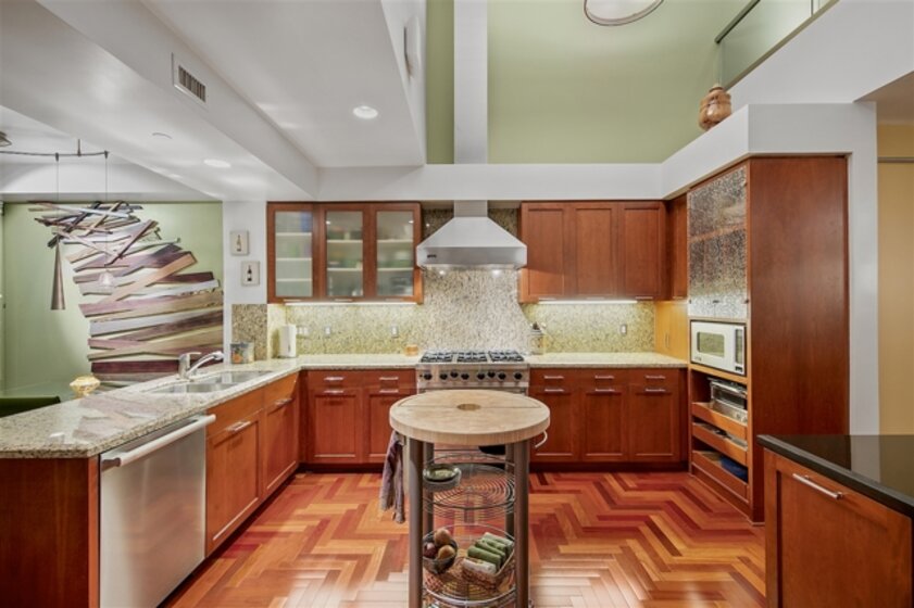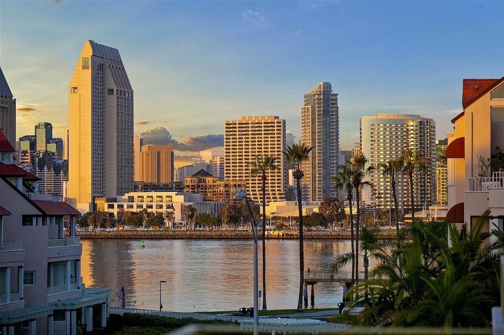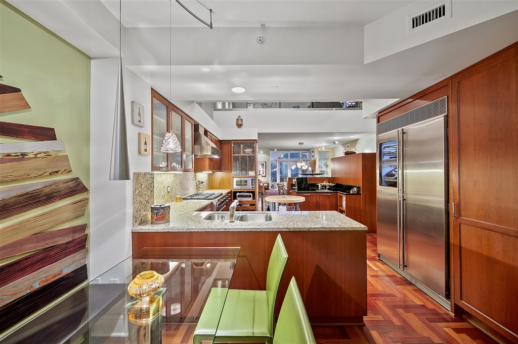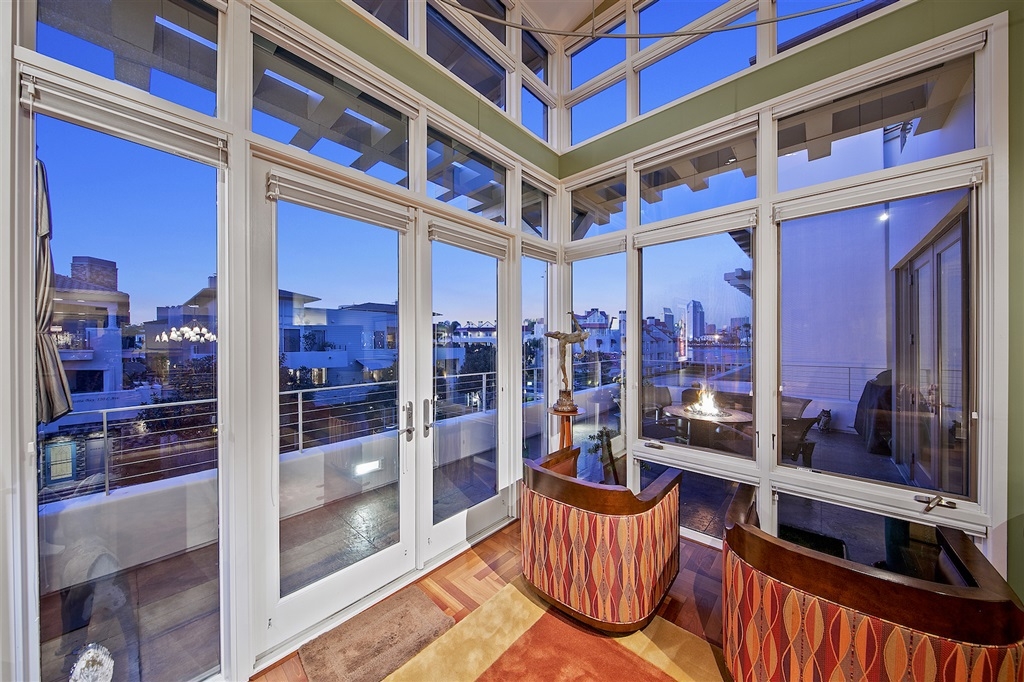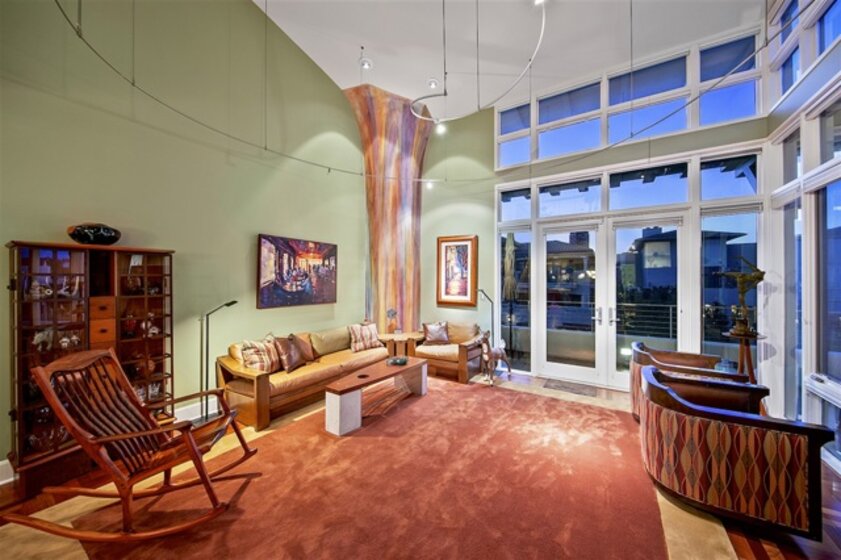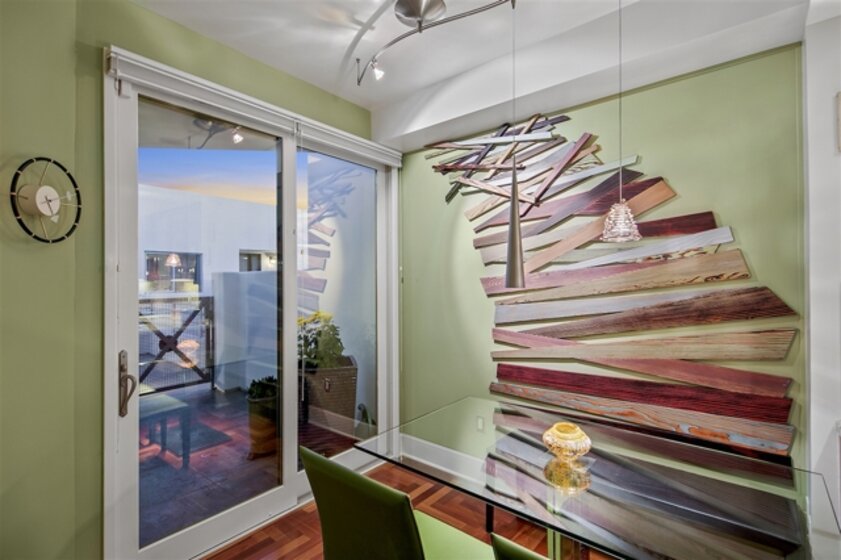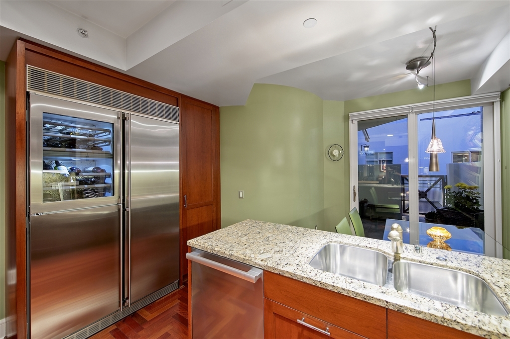 Richard Gatling designed residence in one of the premier buildings along the Coronado Waterfront with stunning Downtown Views! This dramatic modern 2 story home offers a floor plan that begs for house guests and entertaining. Coastal influence welcomes you at the grand entry with curved seaweed art and domed skylight with coral display. Art is present at every turn from the wood art display in the kitchen to the architectural sculpture painted by a local artist and emphasizing the height of space! Home has been designed with Chevron cherrywood floors, custom low voltage art and display lighting, drop down lighting and a built-in wall divider with glass display case between the formal dining room and living room. Outdoor space is abundant with 2 expansive decks off the main floor and mezzanine and beautiful quintessential Downtown San Diego skyline and bay view from the living room and living room deck. All of this situated in the heart of Coronado Village and presents an opportunity and lifestyle coveted by most; attainable by few.. Neighborhoods: Coronado Village Equipment: Dryer, Washer, Water Filtration Other Fees: 0 Sewer: Sewer Connected Topography: LL