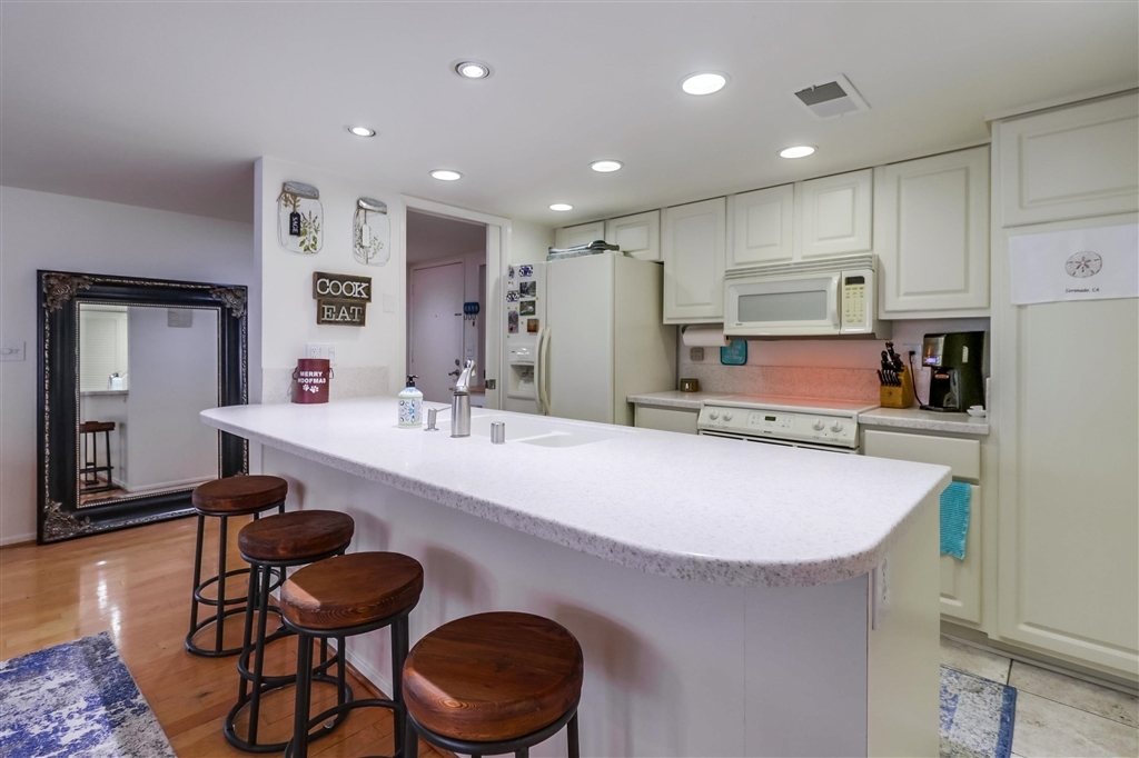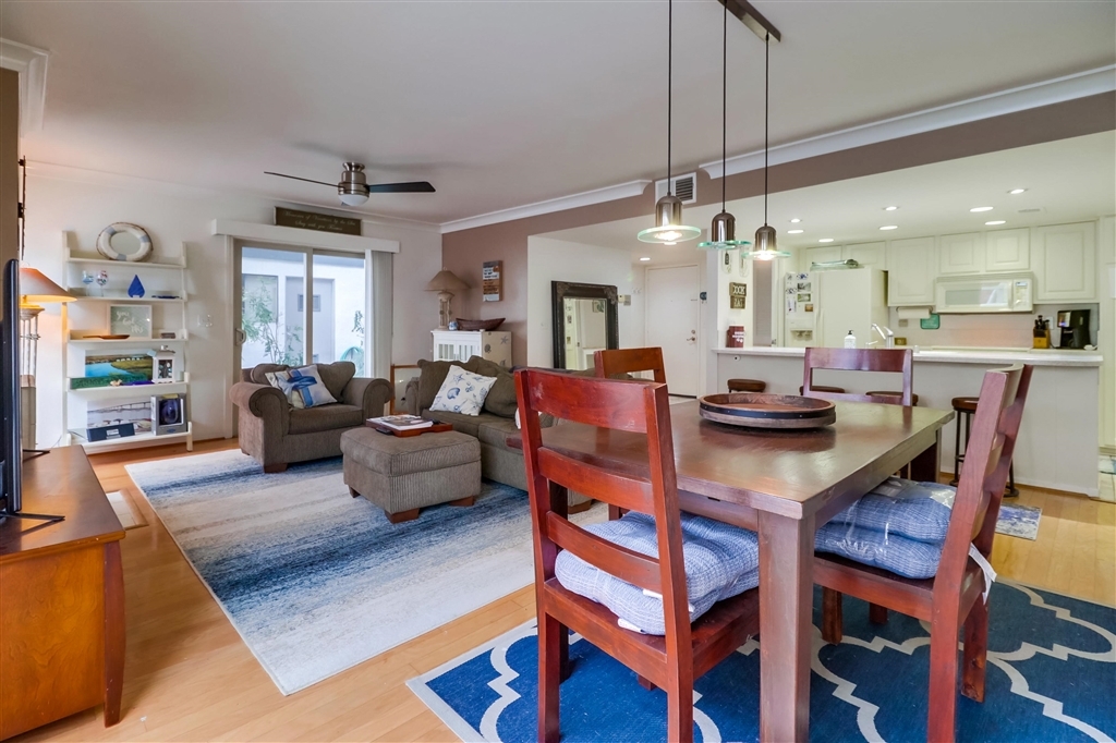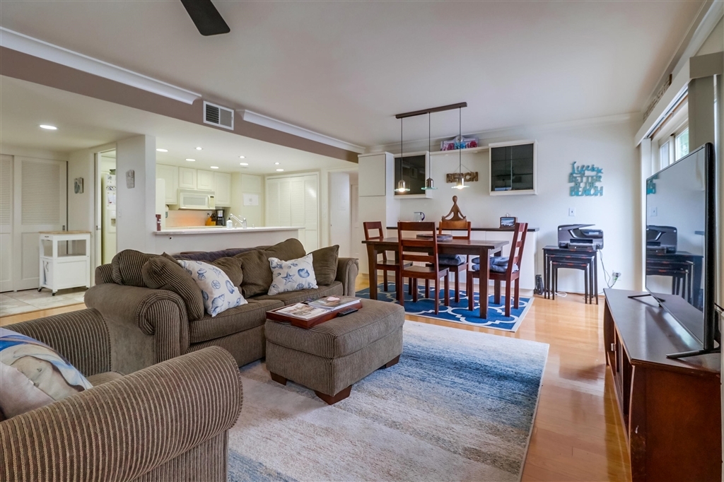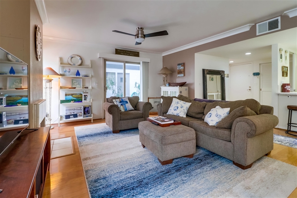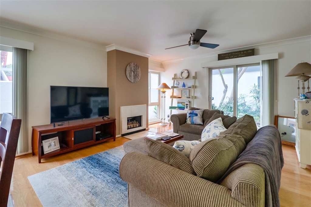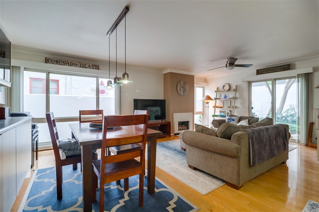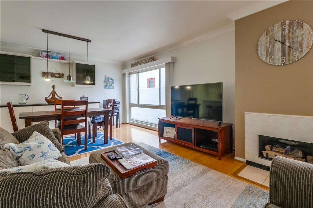 Great opportunity to own a single level condo close to the grocery store, public transit, shops and dining. Open design living room with fireplace, dining area and kitchen with center island. The master bedroom includes a patio out the sliding glass doors. Some of the attributes incl. laundry closet, air-conditioning and well maintained hardwood floors. One covered parking space and a storage space too! It's a very spacious 936 SF condo in an excellent Village location. Neighborhoods: Coronado Village Equipment: Garage Door Opener, Range/Oven Other Fees: 0 Sewer: Sewer Connected Topography: LL