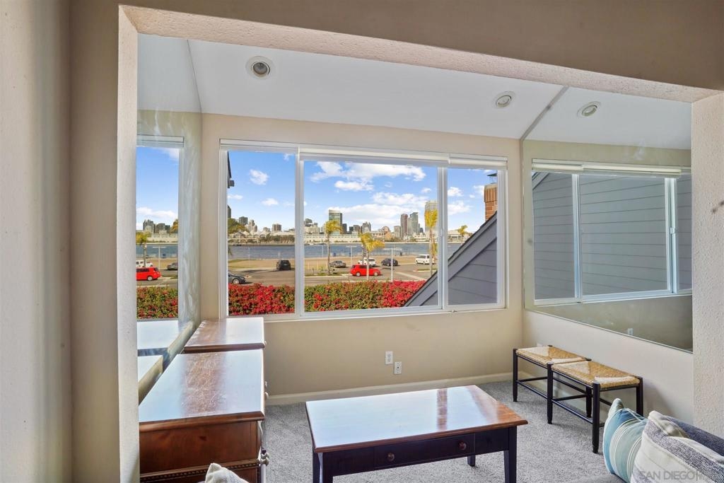 Don't miss this incredible San Diego Bay and downtown skyline view with City Lights at night from sitting area in Master bedroom of this upgraded townhome a short walk to shopping, restaurants and the ferry. 3 Bedrooms all en-suite, 2 master suites upstairs, 1 bedroom downstairs. All white kitchen cabinets with quartz counter-tops and stainless appliances. Front and rear patio for indoor outdoor enjoyment. Complex features pool, spa, clubhouse and 6 guest parking spots. All furnitures, TVs, appliances, W/D are included in the sale except for the office furnitures and equipments in two bedrooms, sterio in master bedroom and the white couch in living room. Other Fees: 0 Sewer: Sewer Connected Topography: LL