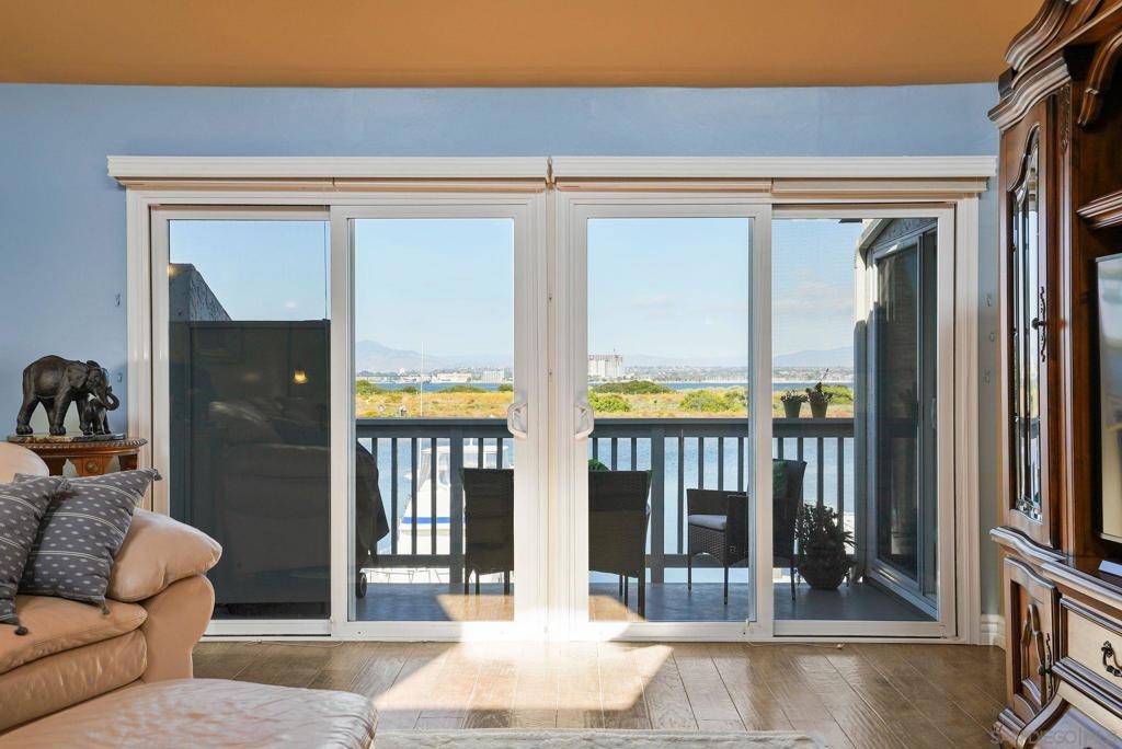 RANGE PRICE: $1,850,000 - $2,000,000 Welcome to your waterfront sanctuary! Immerse yourself in the epitome of luxury living with stunning views of San Diego Bay from every angle. This 3 bedroom, 2 bath condo in the prestigious Coronado Cays community offers a rare east-facing orientation, flooding the space with natural light & panoramic vistas. Discover the unique charm of your own private dock, complete with a 44 ft. boat slip and a one-of-a-kind floating "Pontoon Patio", offering an enchanting setting for al fresco dining or simply basking in the serenity of waterfront living while watching the kayaks and paddle boards cruse by. And you wouldn’t be the first to leap off the pontoon for a swim in the San Diego Bay! Step into the expansive great room with vaulted ceilings, skylights & a cozy fireplace, as you are mesmerized by unobstructed views of the bay, city skyline, & mountains. Picture yourself savoring your morning coffee on the balcony as the sun illuminates the bay, & unwinding in the evening with the shimmering moonlight dancing on the water. Each of the three generously proportioned bedrooms offers a haven of comfort and relaxation, perfect for unwinding amidst the soothing sounds of the bay. Boasting its own breath-taking views, the primary bedroom is split from the other two, offering privacy and features a walk-in closet adjacent to the roomy ensuite bath, providing both luxury & convenience. The kitchen, updated in 2022 with near new stainless steel appliances, is a culinary haven, providing the perfect backdrop for creating gourmet meals. SEE SUPPLEMENT LOWEST PRICE PER SQUARE FOOT IN THE COMPLEX! Welcome to your waterfront sanctuary! Immerse yourself in the epitome of luxury living with stunning views of San Diego Bay from every angle. This 3-bedroom, 2-bathroom condo in the prestigious Coronado Cays community offers a rare east-facing orientation, flooding the space with natural light and panoramic vistas. Discover the unique charm of your own private dock, complete with a 44 ft. boat slip and a one-of-a-kind floating "Pontoon Patio", offering an enchanting setting for al fresco dining or simply basking in the serenity of waterfront living while watching the kayaks and paddle boards cruse by. And you wouldn’t be the first to leap off the pontoon for a swim in the San Diego Bay! Step into the expansive great room with vaulted ceilings, skylights and a cozy fireplace, as you are mesmerized by unobstructed views of the bay, city skyline, and mountains. Picture yourself savoring your morning coffee on the balcony as the sun illuminates the bay, and unwinding in the evening with the shimmering moonlight dancing on the water. Each of the three generously proportioned bedrooms offers a haven of comfort and relaxation, perfect for unwinding amidst the soothing sounds of the bay. Boasting its own breath-taking views, the primary bedroom is split from the other two, offering privacy and features a walk-in closet adjacent to the roomy ensuite bath, providing both luxury and convenience. The kitchen, updated in 2022 with near new stainless steel appliances, is a culinary haven, providing the perfect backdrop for creating gourmet meals while enjoying the bay breeze. Seamless functionality merges with refined elegance in this home, offering a detached 1-car garage, an assigned carport parking space and internal laundry facilities. Experience resort-style living with access to an array of community amenities including a clubhouse, swimming pool, hot tub, tennis courts, and a dog park. Embrace the coastal lifestyle with leisurely strolls to the beach, bike trails, and parks, creating endless opportunities for outdoor enjoyment. Seize the opportunity to experience the ultimate in waterfront living and elevate your lifestyle to new heights. Your dream home awaits!